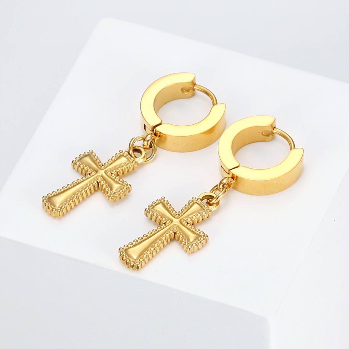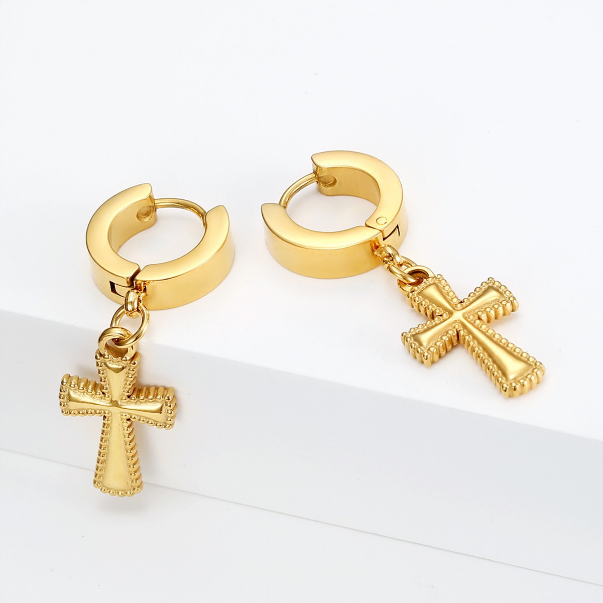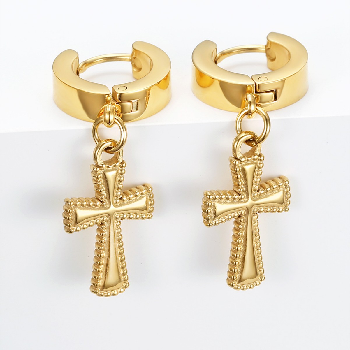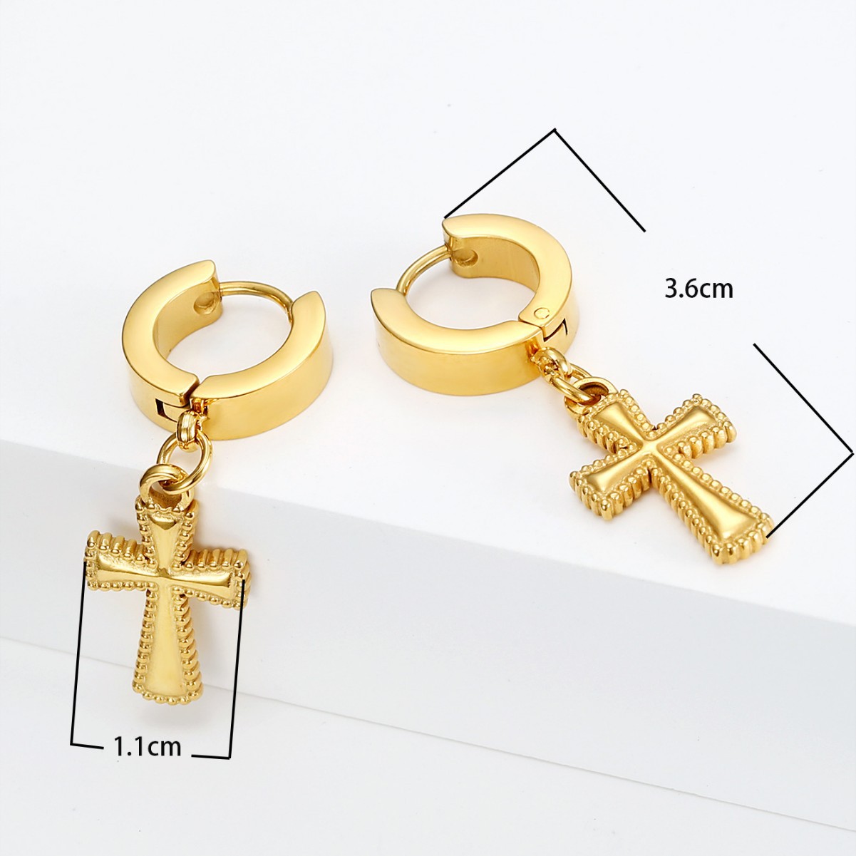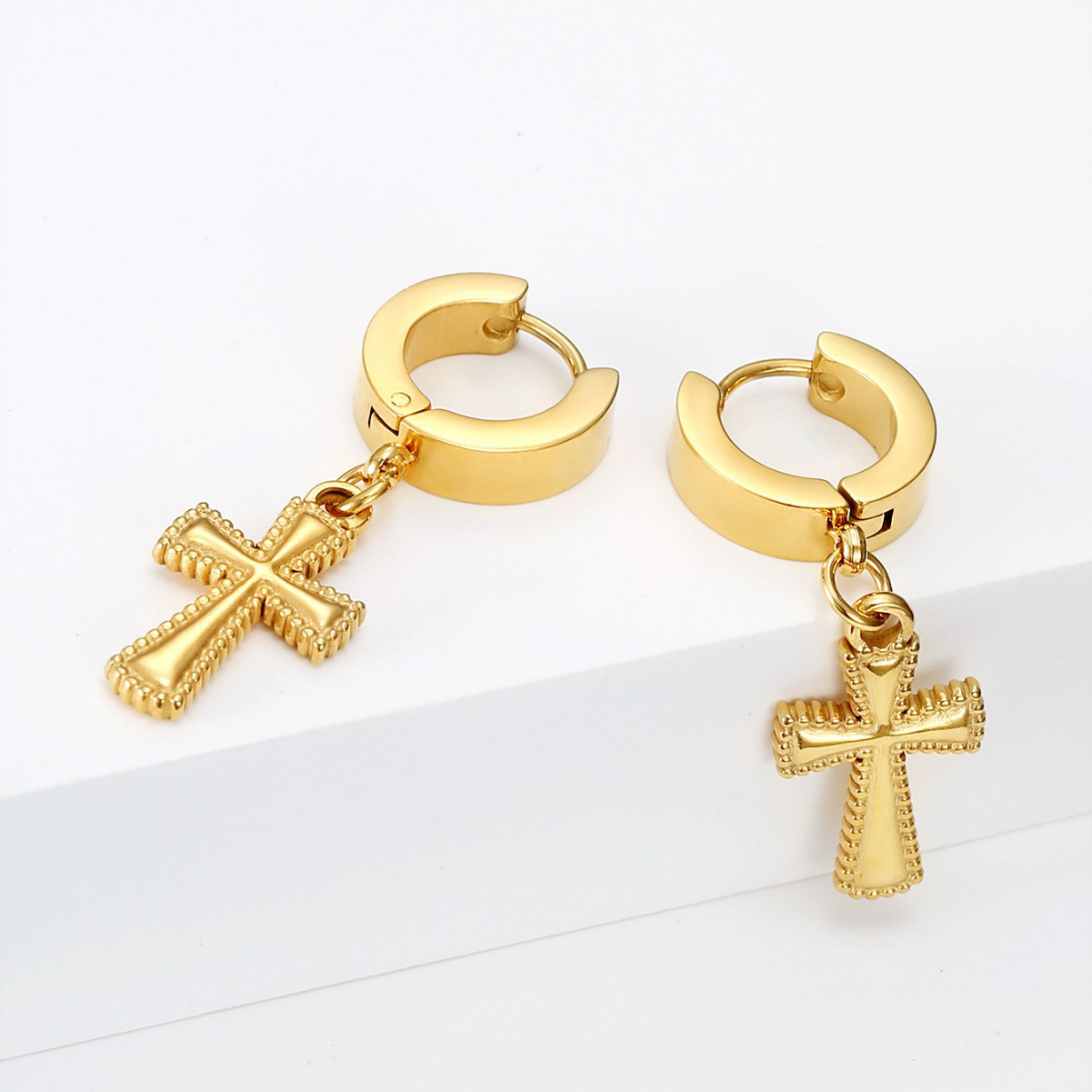 Huggie Hoop Drop ørering, 304 rustfrit stål, Kryds, 18K forgyldt, mode smykker & for kvinde, Solgt af par