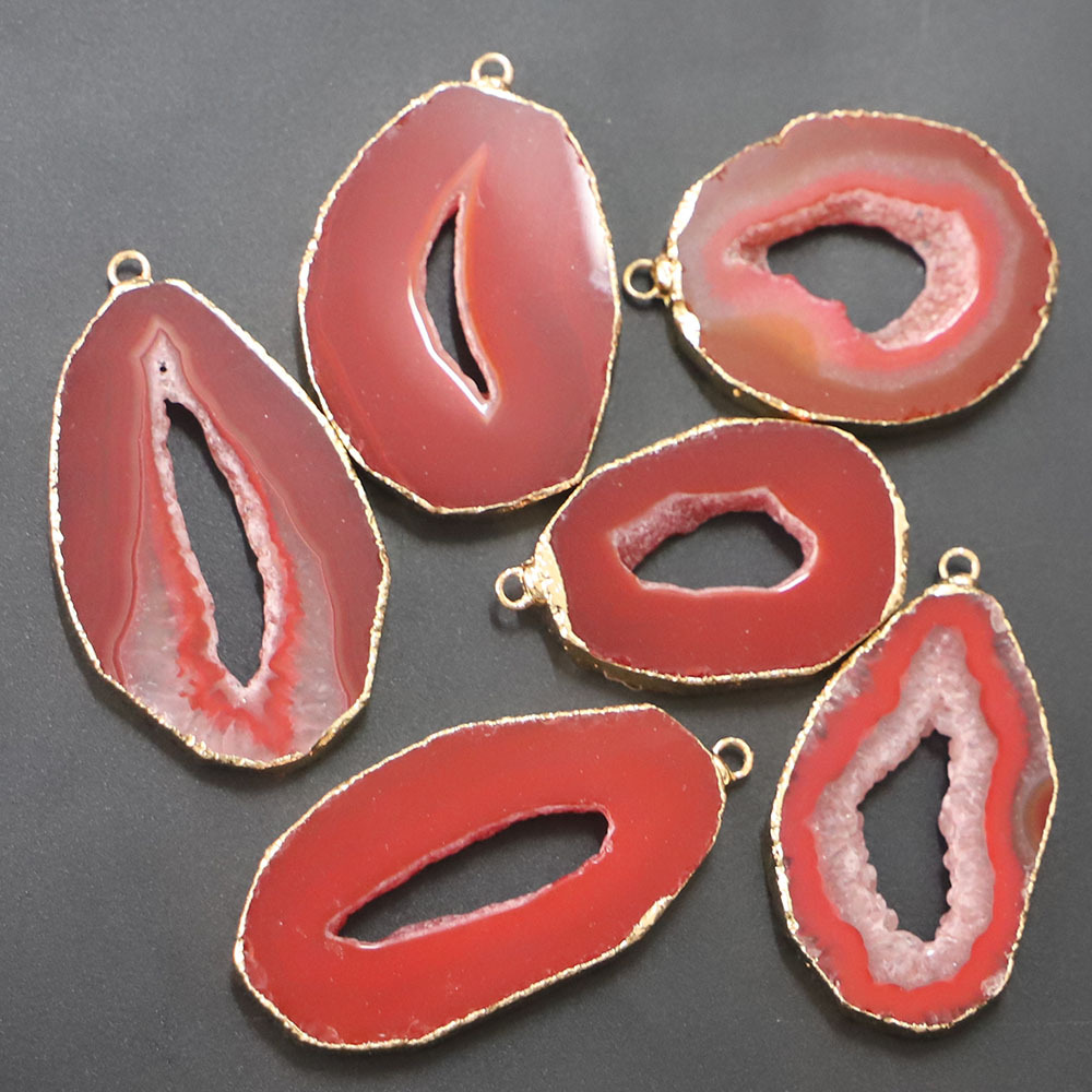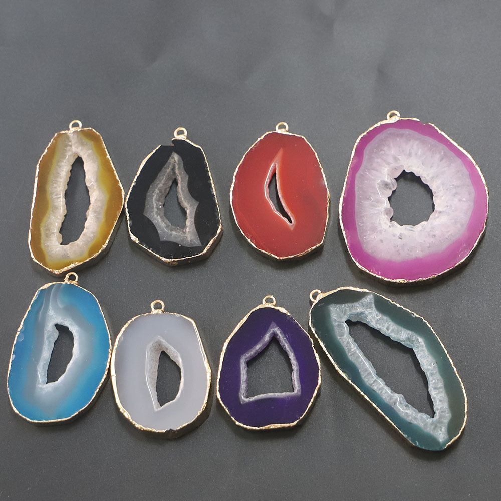 Is kvarts agat vedhæng, Agate, Uregelmæssig, guldfarve belagt, du kan DIY, flere farver til valg, pendant size 65-35x50-25u00d75.5mm, Solgt af PC