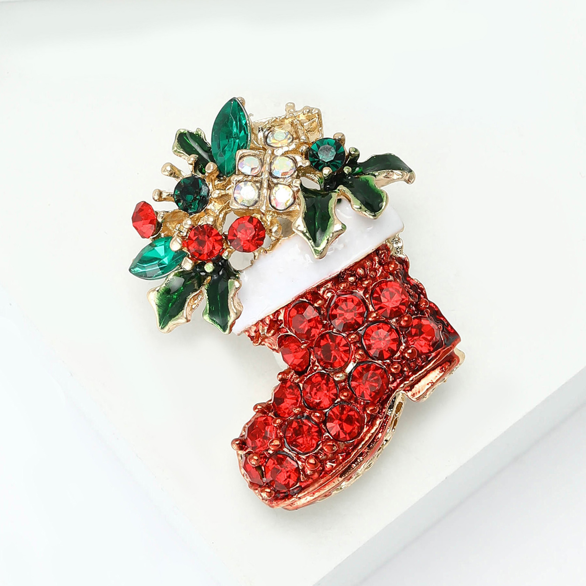 Jul brocher, Zinc Alloy, Julen Sock, forgyldt, mode smykker & med rhinestone, blandede farver, Solgt af PC