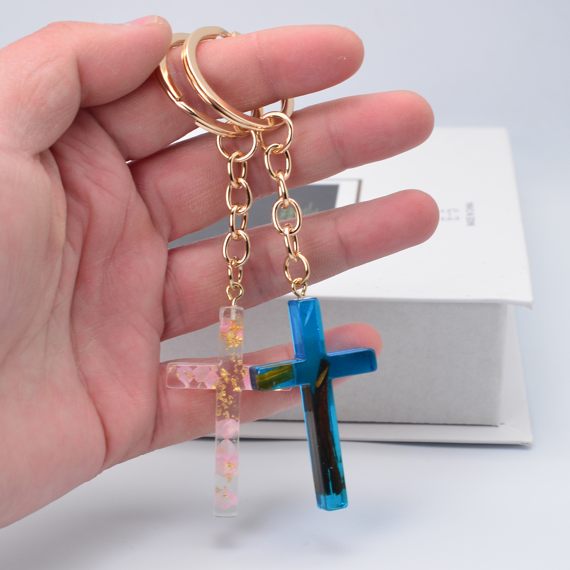 Key Chain, Resin, med Zinc Alloy, Kryds, epoxy sticker, Unisex, flere farver til valg, 110mm, Solgt af PC