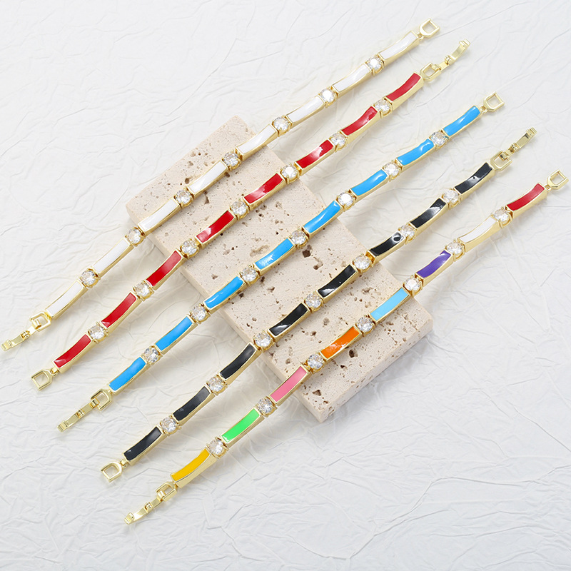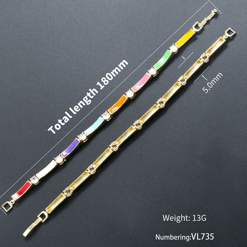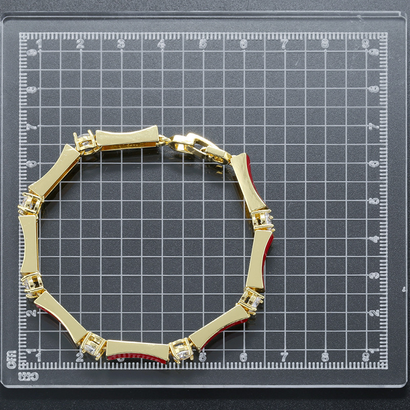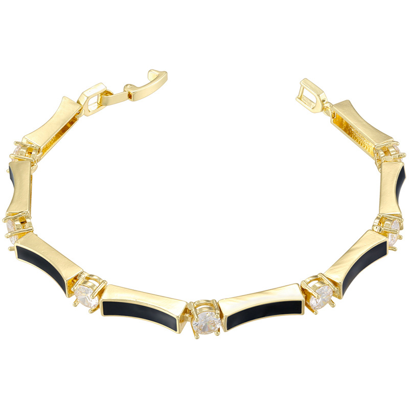 Messing Armbånd, Bambus, guldfarve belagt, Micro Pave cubic zirconia & for kvinde & emalje, flere farver til valg, Længde Ca. 180 mm, Solgt af PC
