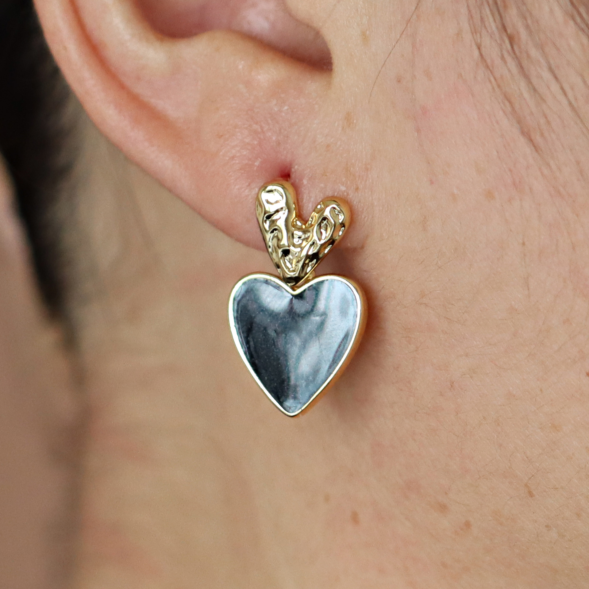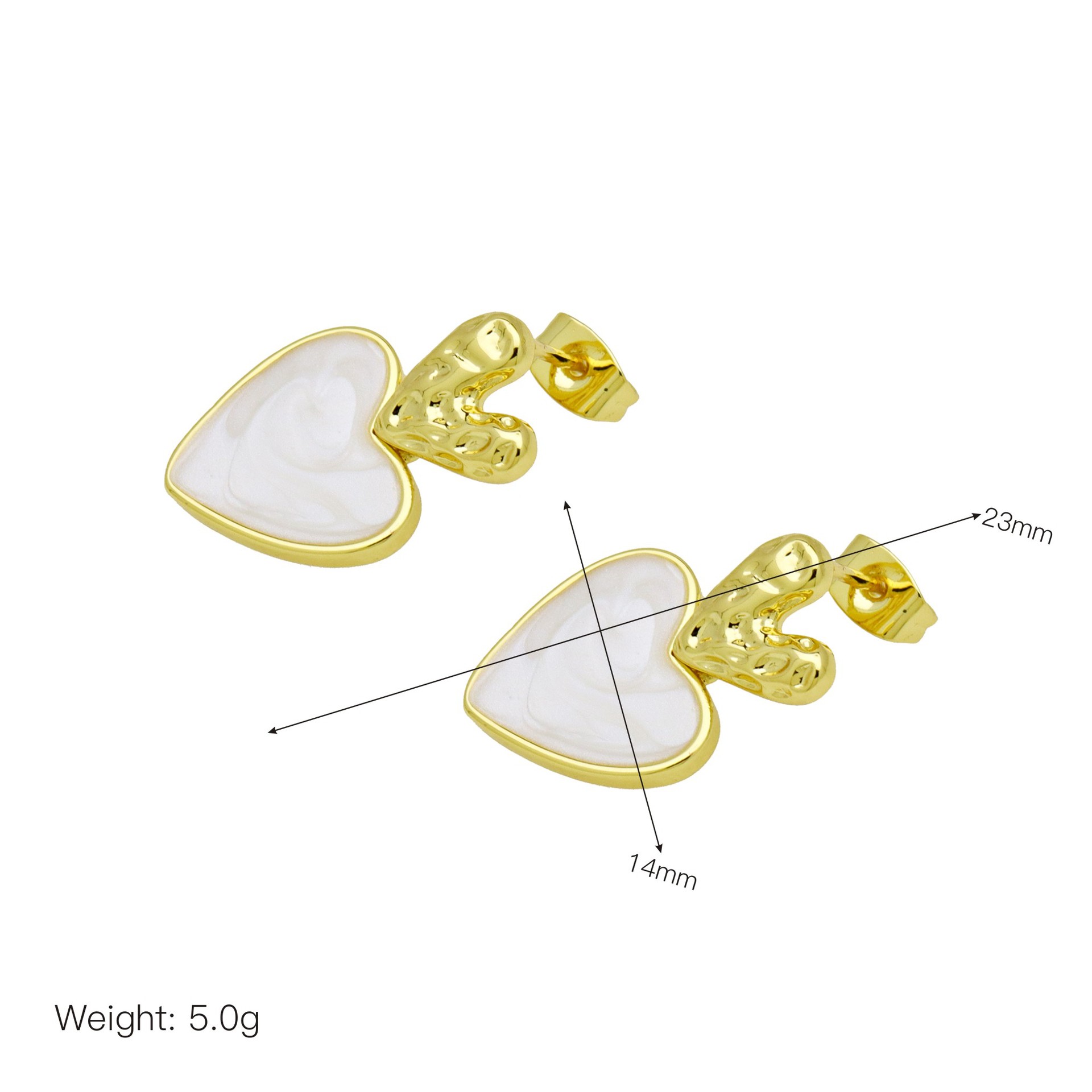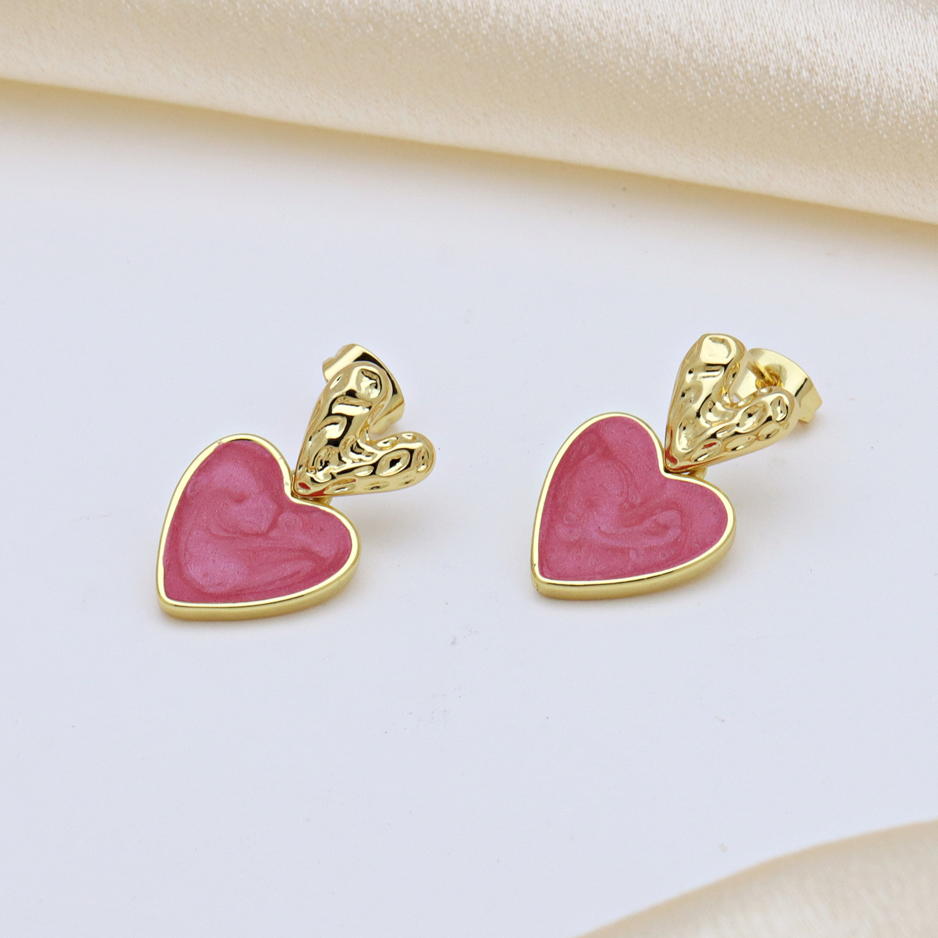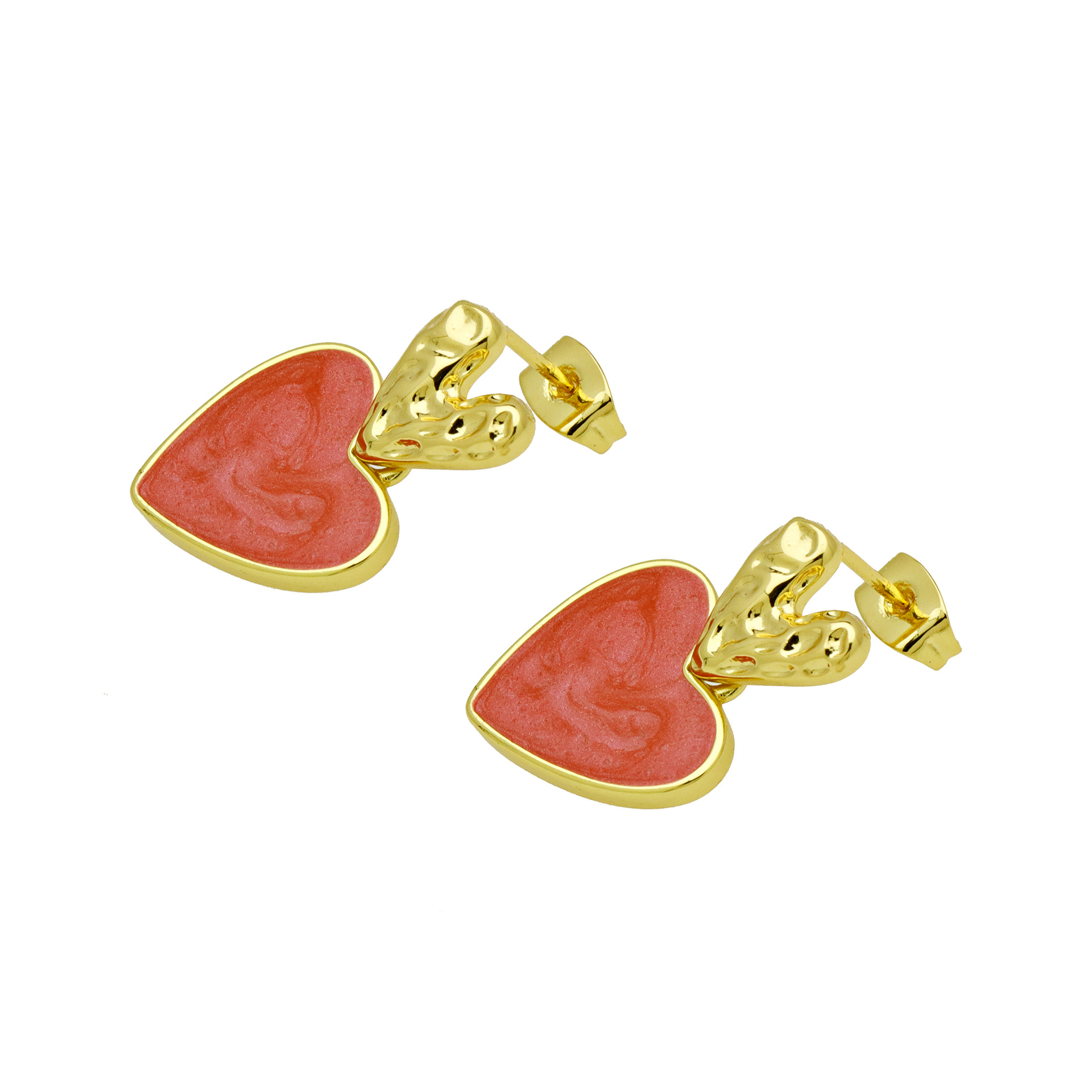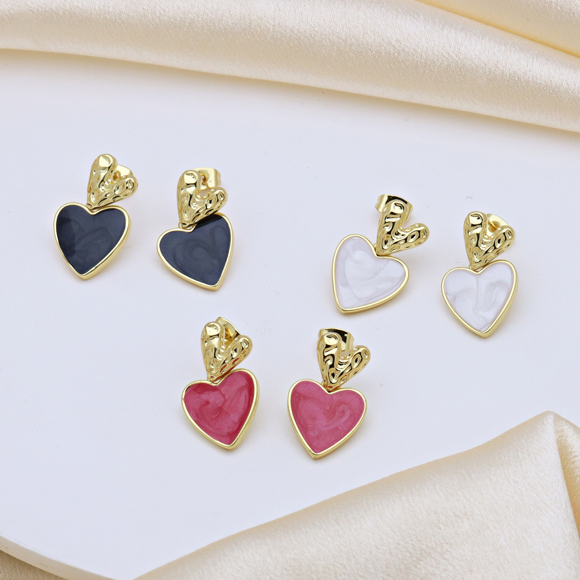 Messing Drop ørering, Heart, guldfarve belagt, for kvinde & emalje, flere farver til valg, 14x23mm, Solgt af par