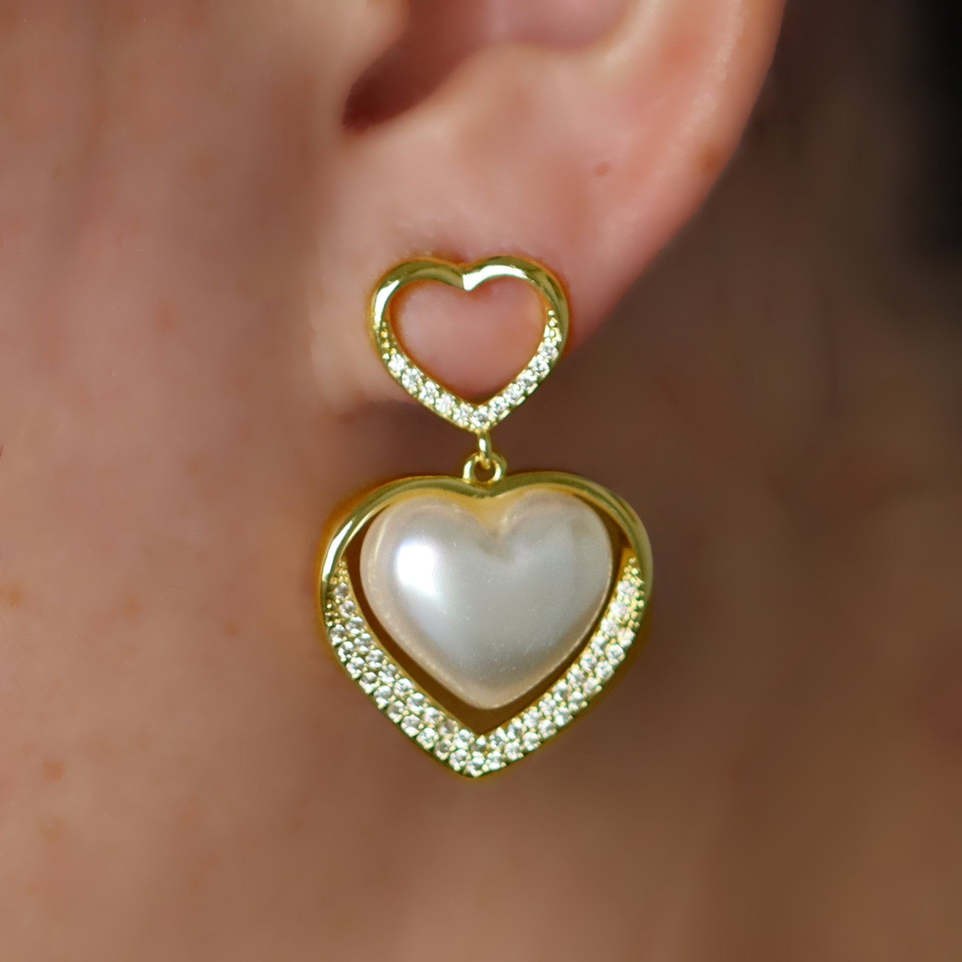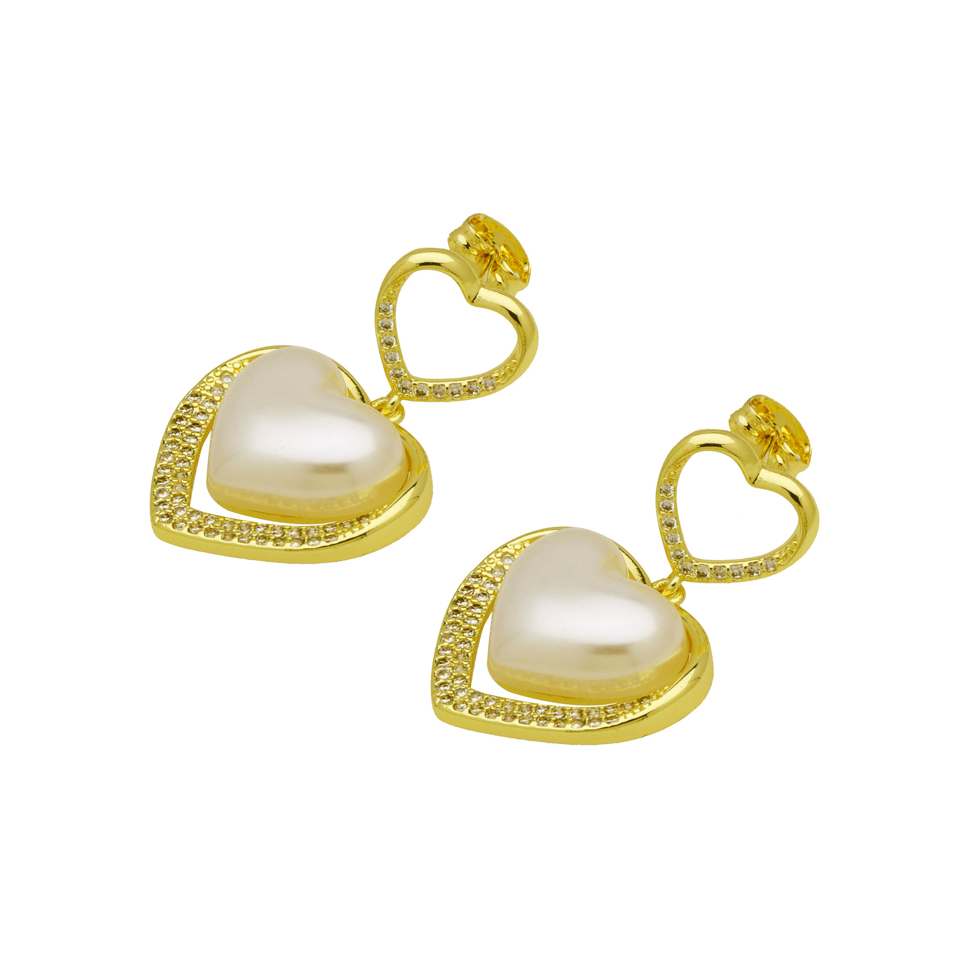 Messing Drop ørering, med Plastic Pearl, guldfarve belagt, forskellige stilarter for valg & Micro Pave cubic zirconia & for kvinde, flere farver til valg, Solgt af par