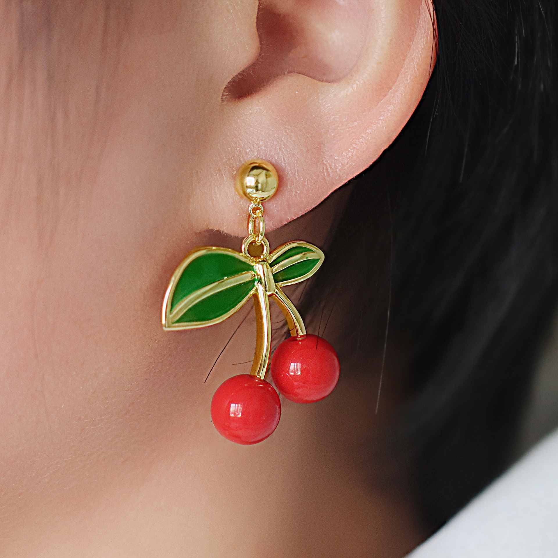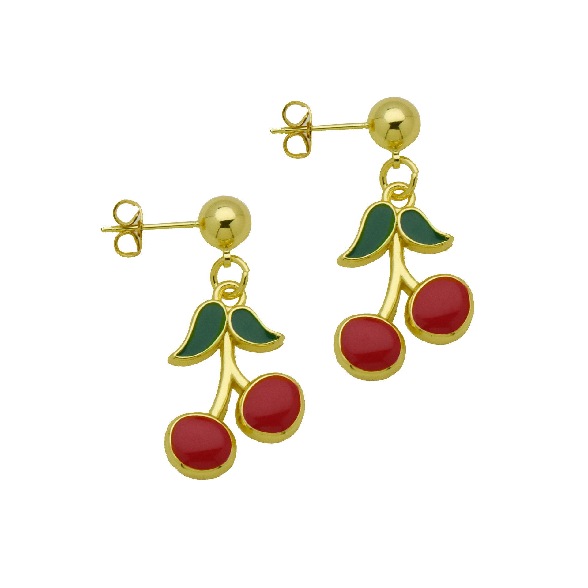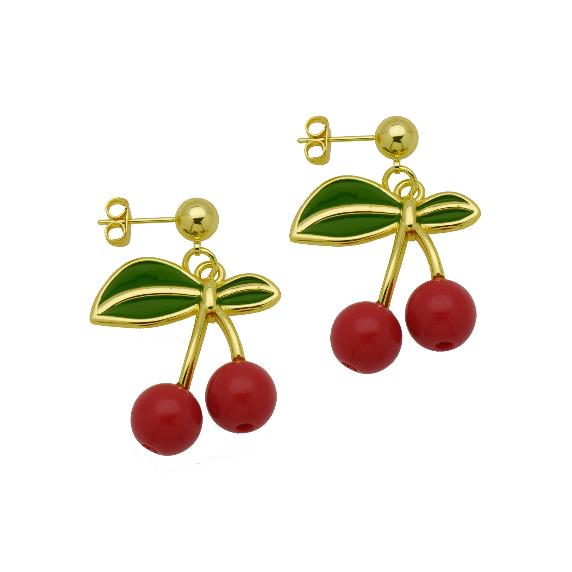 Messing Drop ørering, Cherry, guldfarve belagt, forskellige stilarter for valg & for kvinde & emalje, flere farver til valg, Solgt af par
