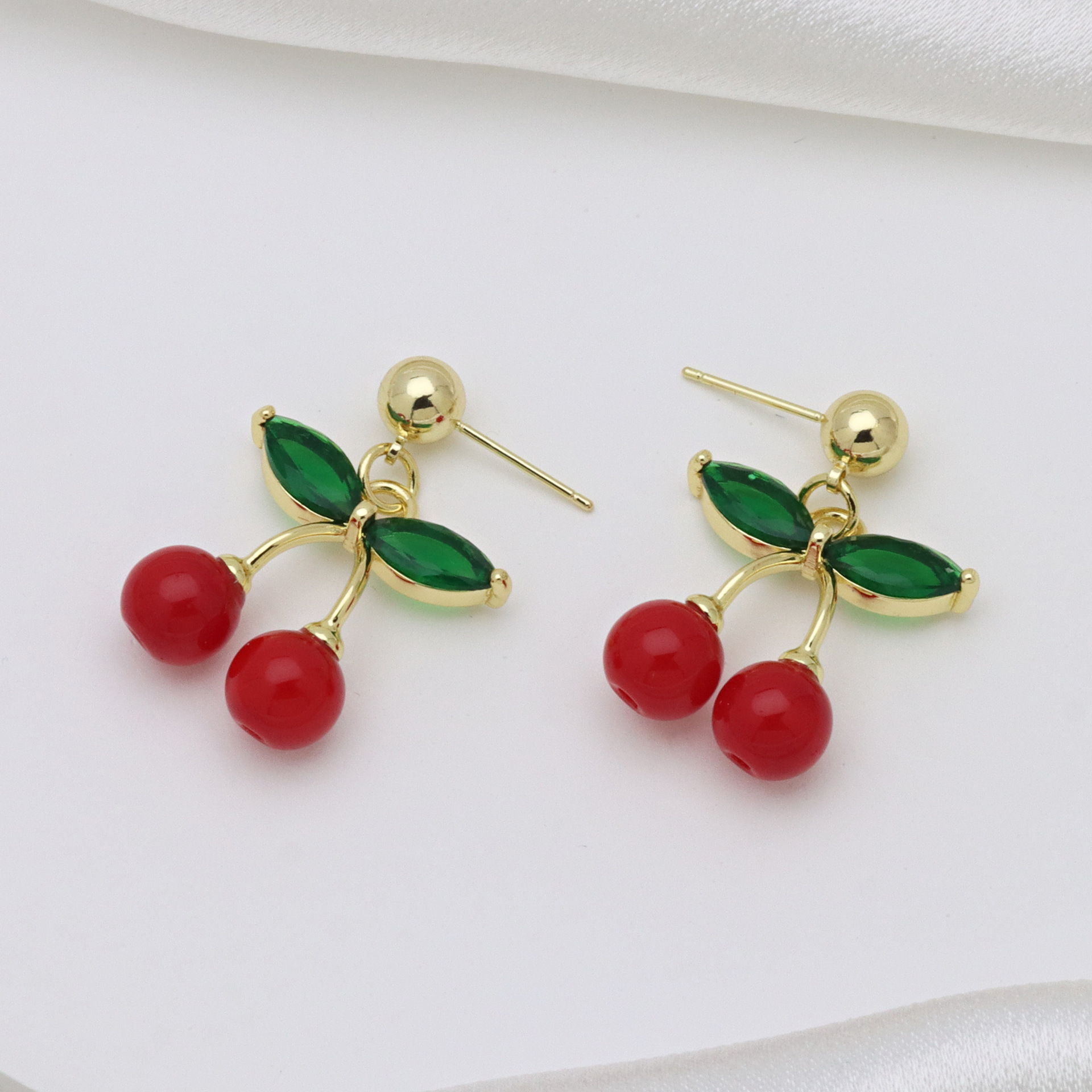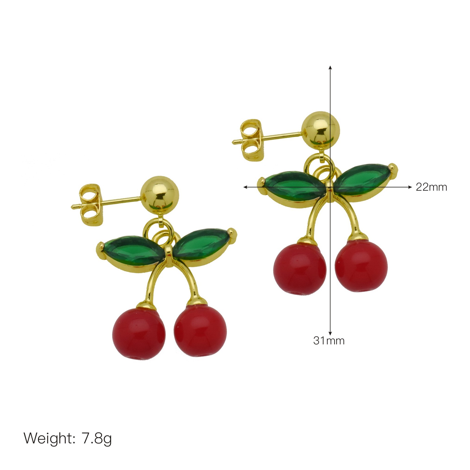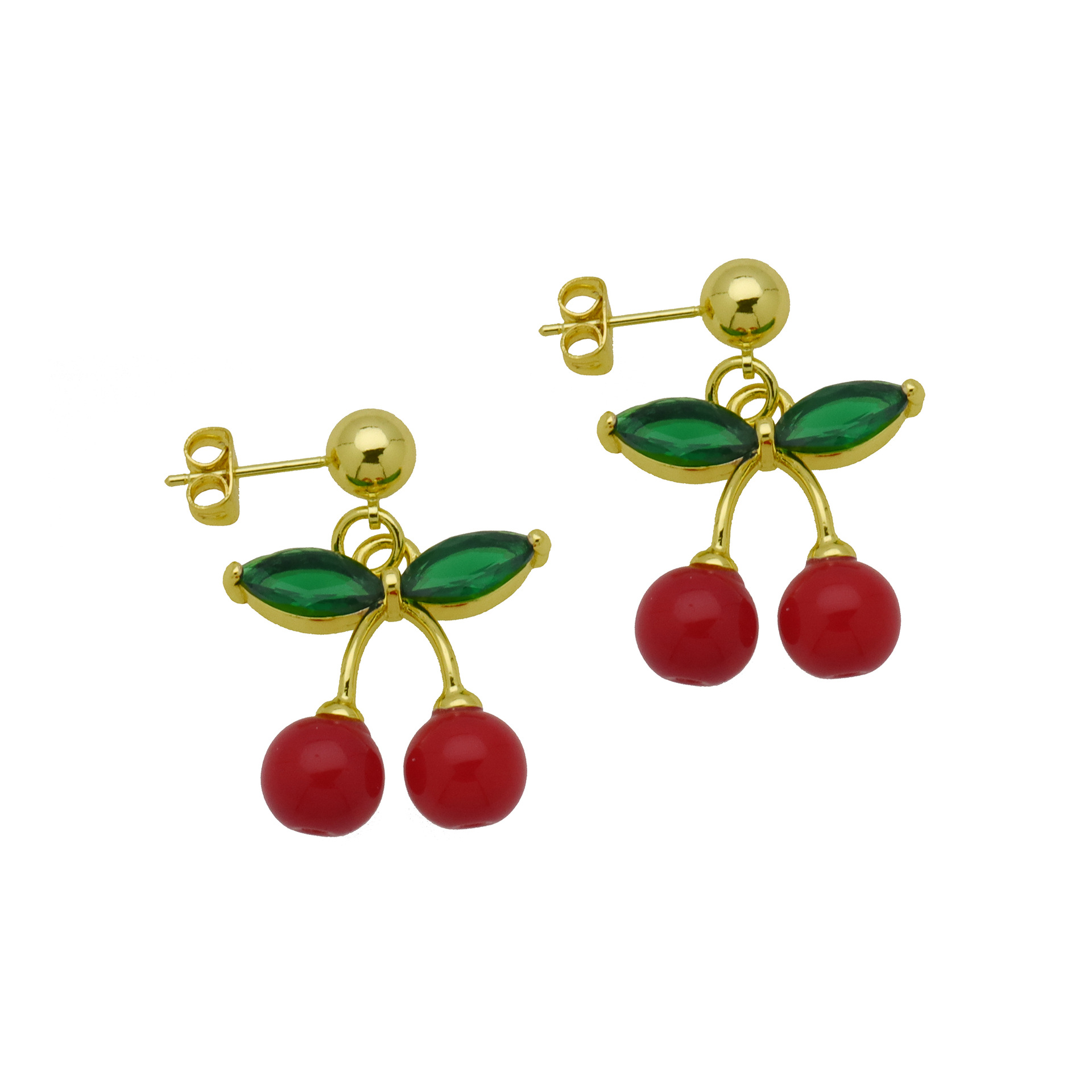 Messing Drop ørering, Cherry, guldfarve belagt, forskellige stilarter for valg & for kvinde & emalje, flere farver til valg, Solgt af par
