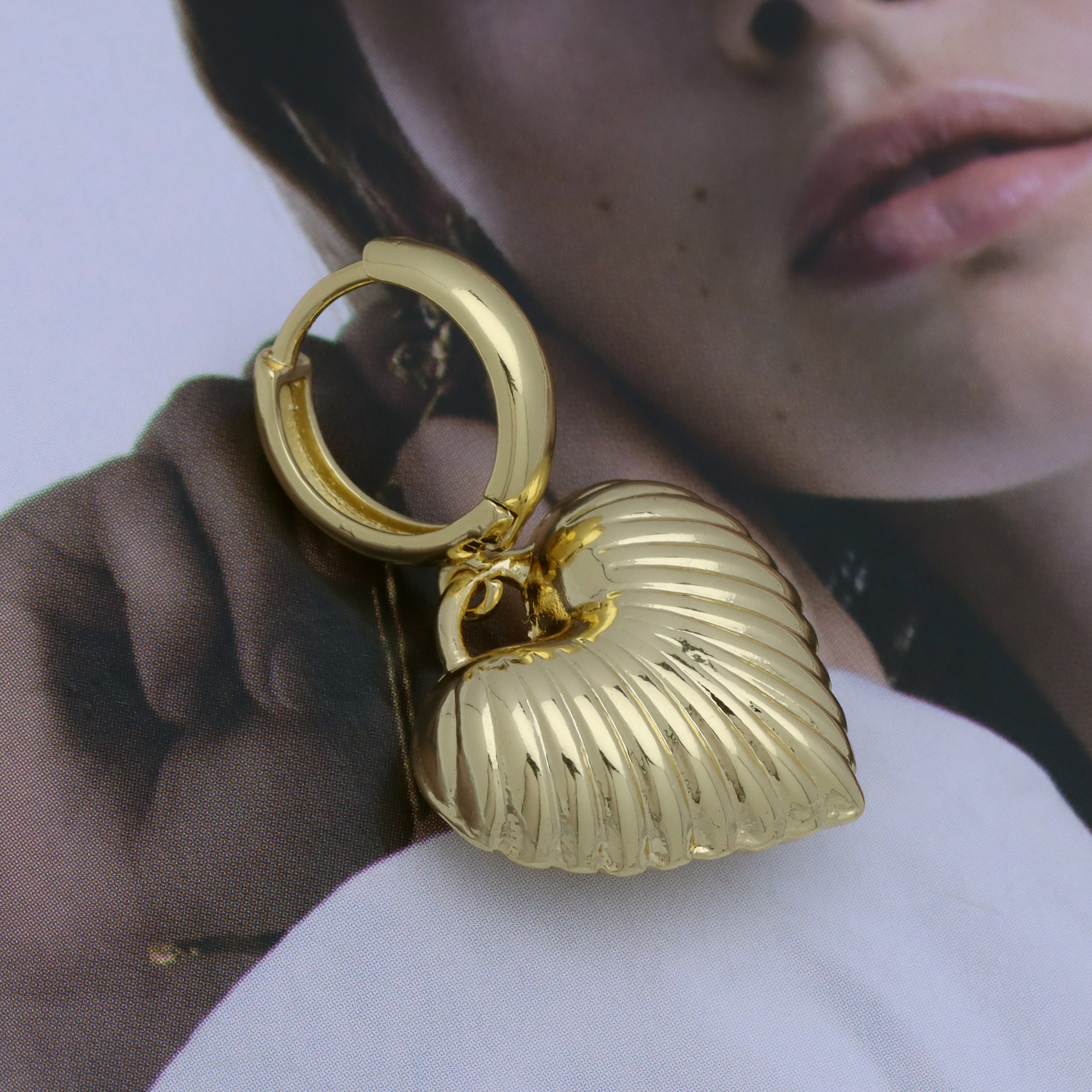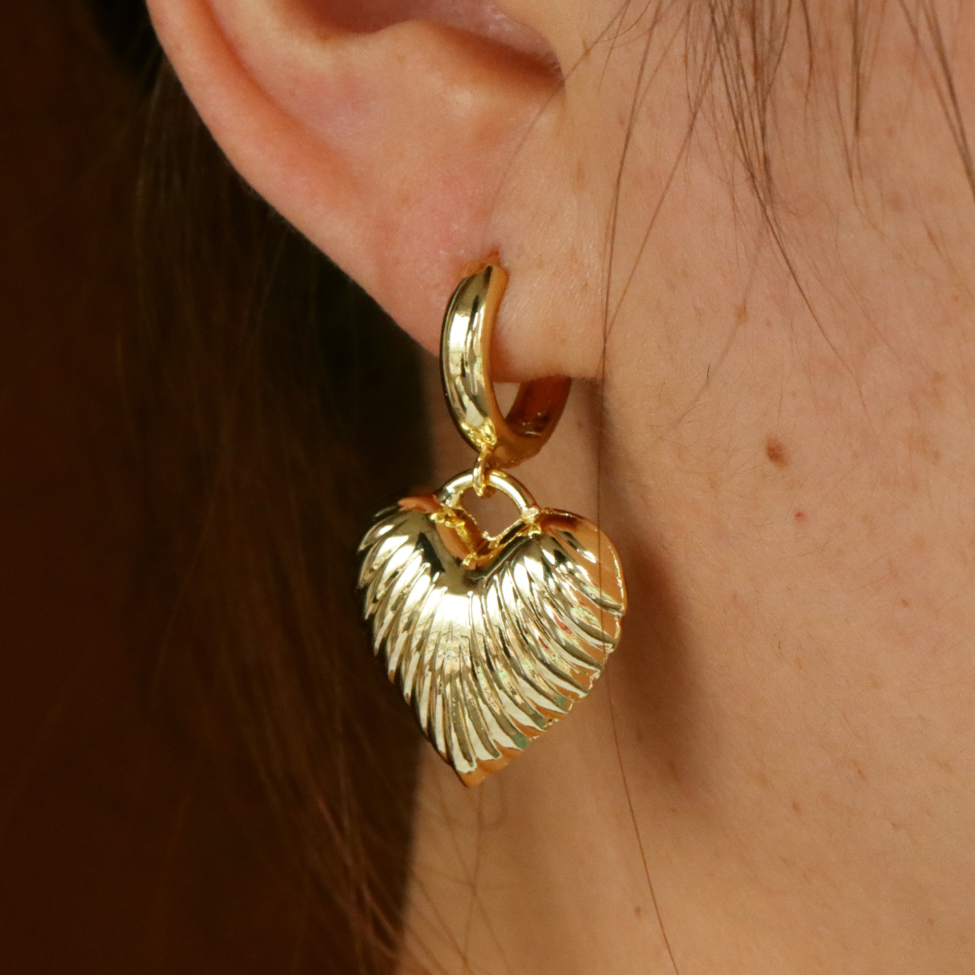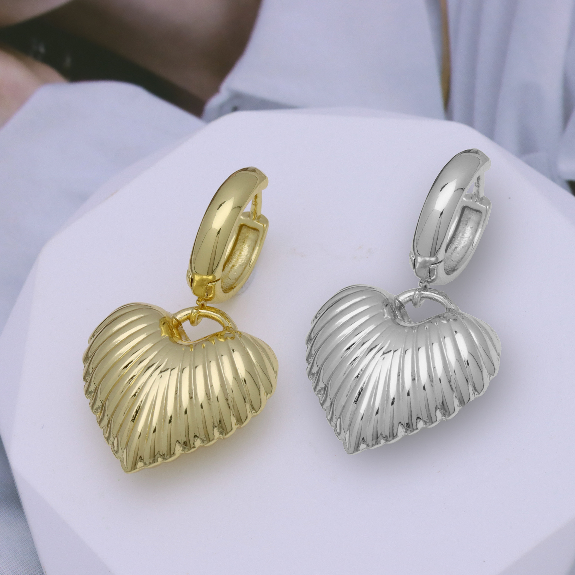 Messing Drop ørering, Heart, forgyldt, for kvinde, Solgt af par