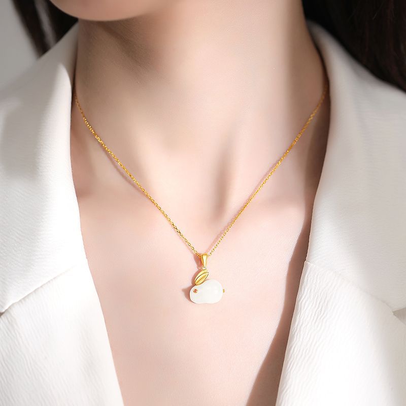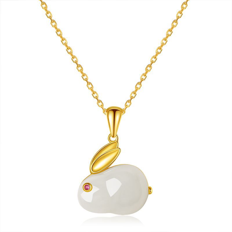 Messing Halskæde, med Tian, Kanin, forgyldt, mode smykker & med rhinestone, blandede farver, nikkel, bly & cadmium fri, 16+3cm, Længde Ca. 40 cm, Solgt af PC
