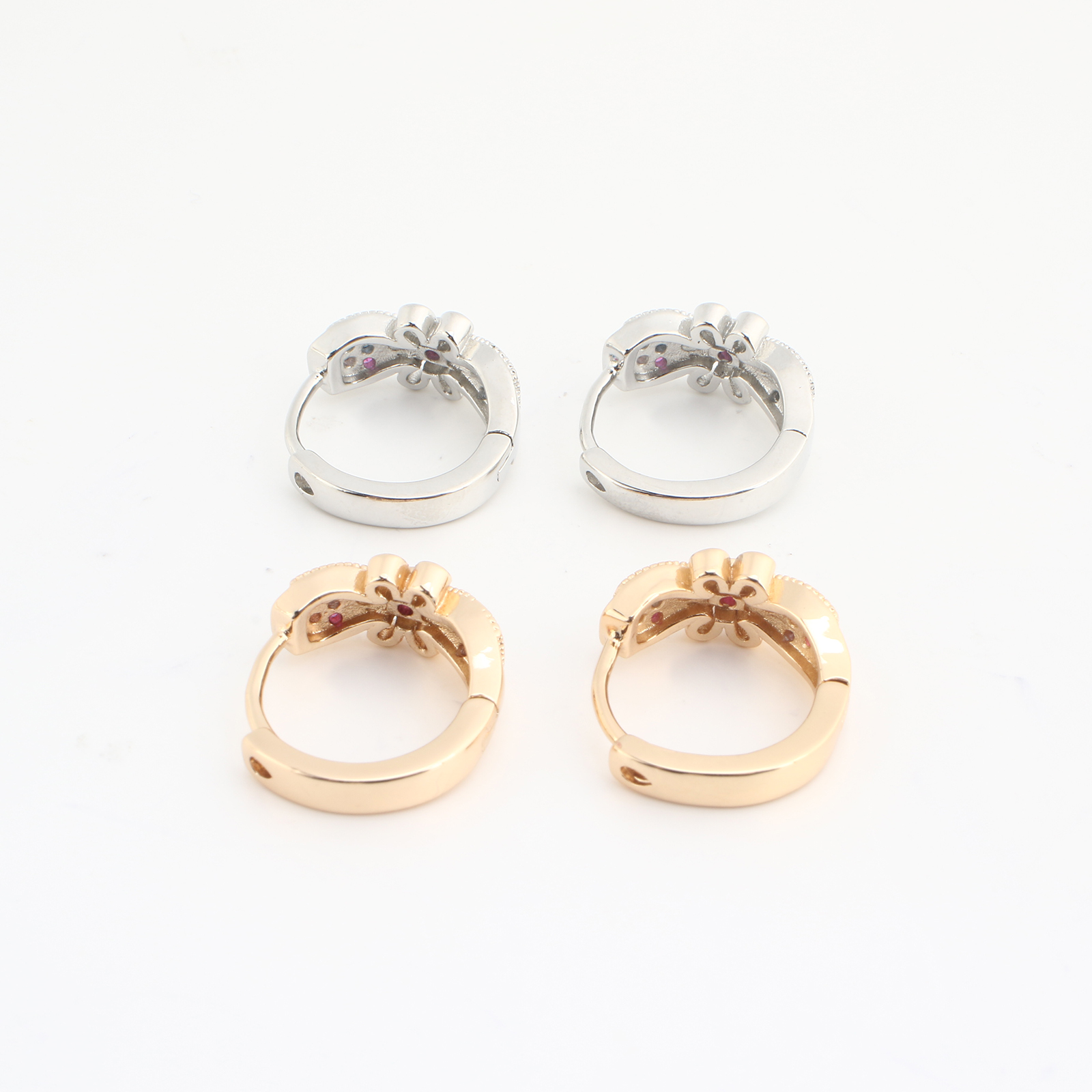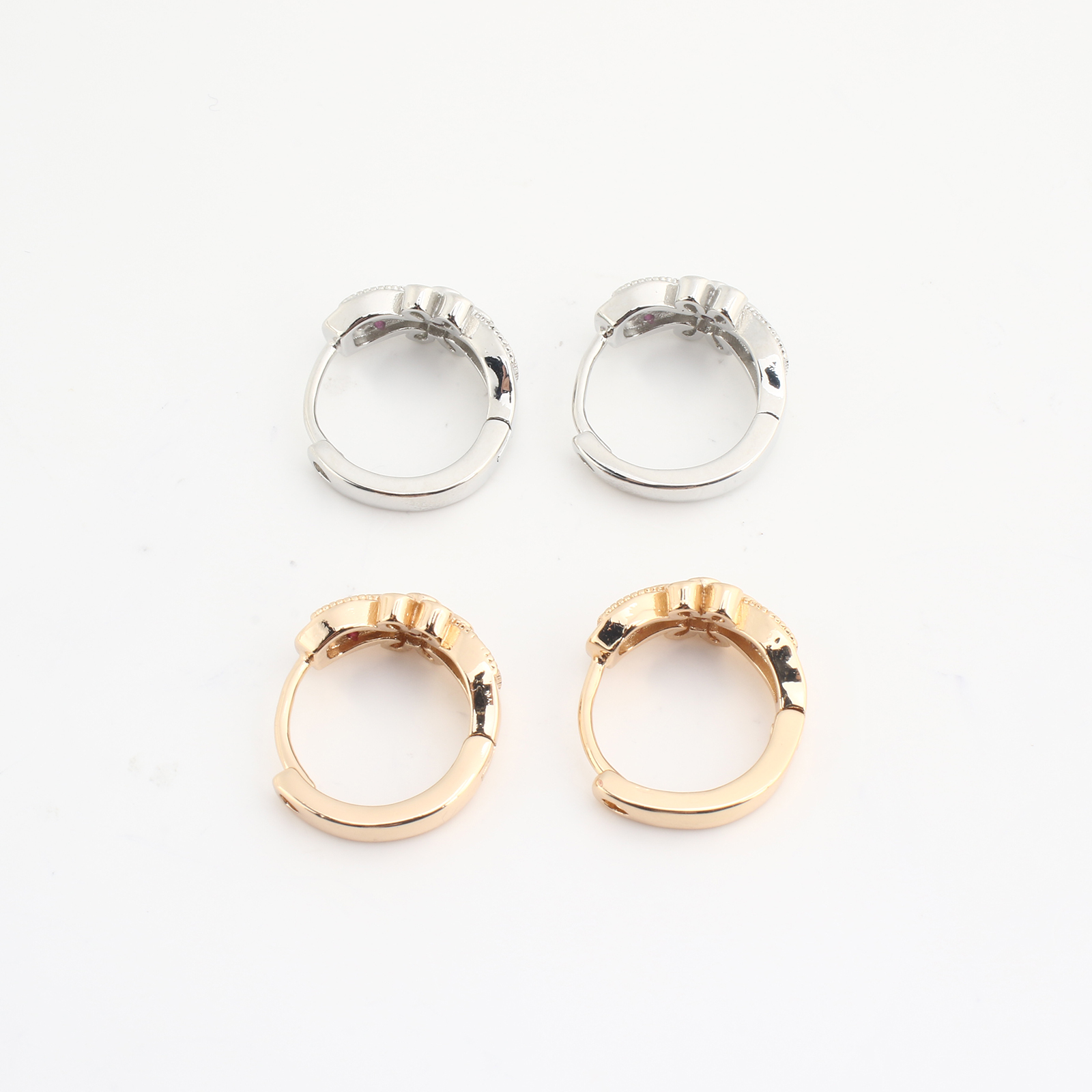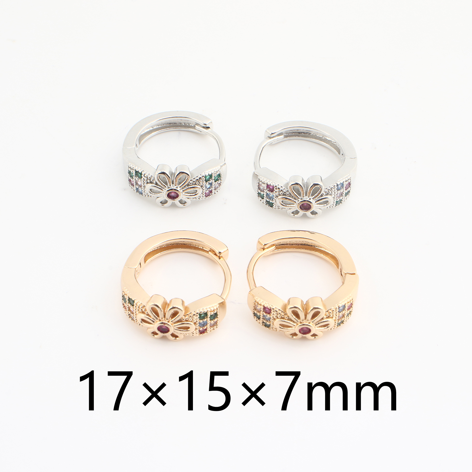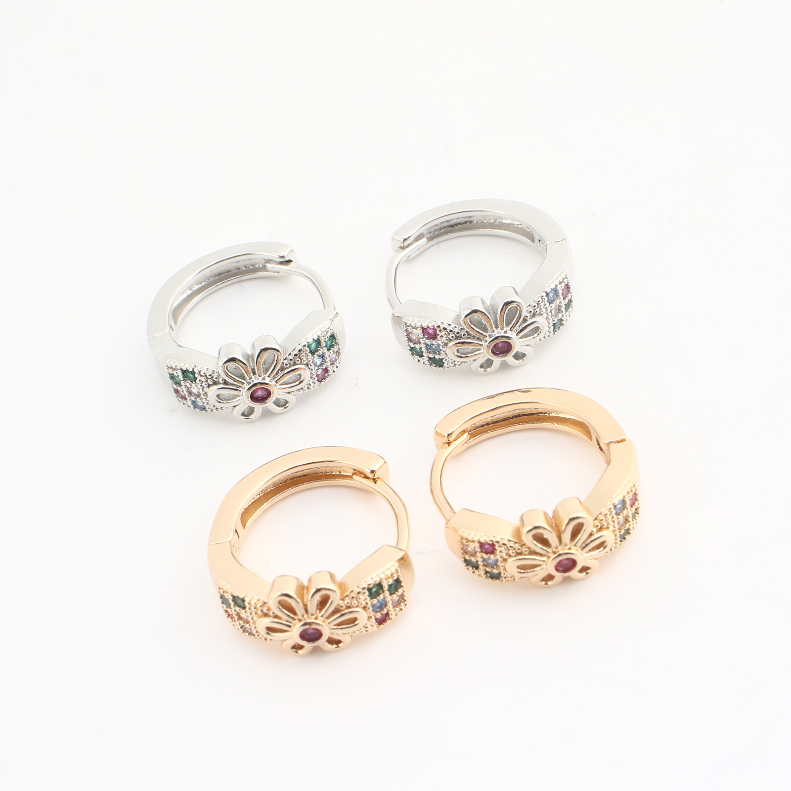 Messing Huggie Hoop Øreringe, Flower, forgyldt, for kvinde & med rhinestone, flere farver til valg, 20pc'er/Bag, Solgt af Bag