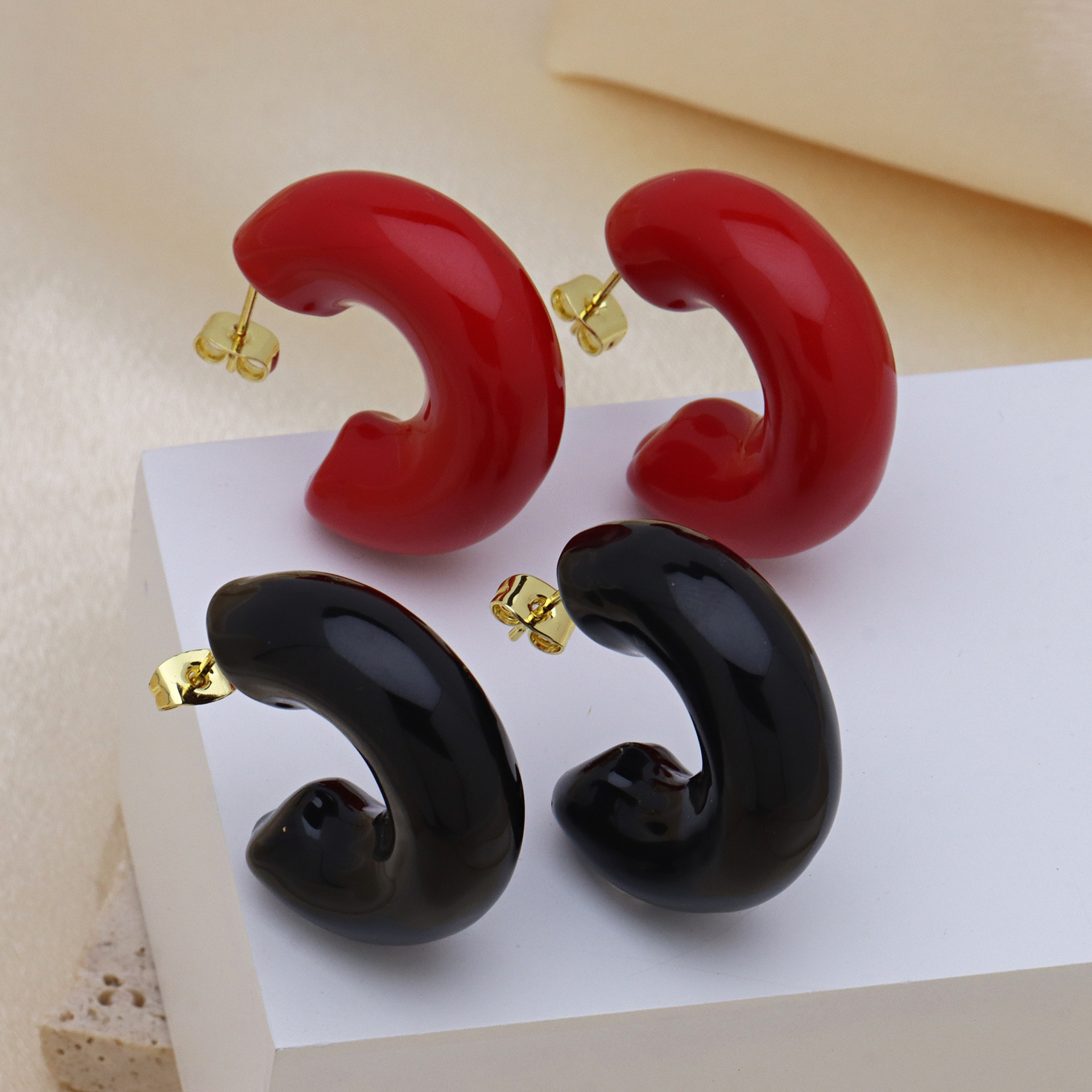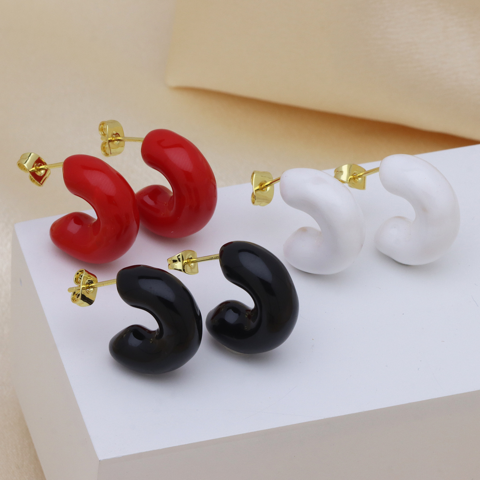 Messing Stud ørering, guldfarve belagt, forskellig størrelse for valg & for kvinde & emalje, flere farver til valg, Solgt af par