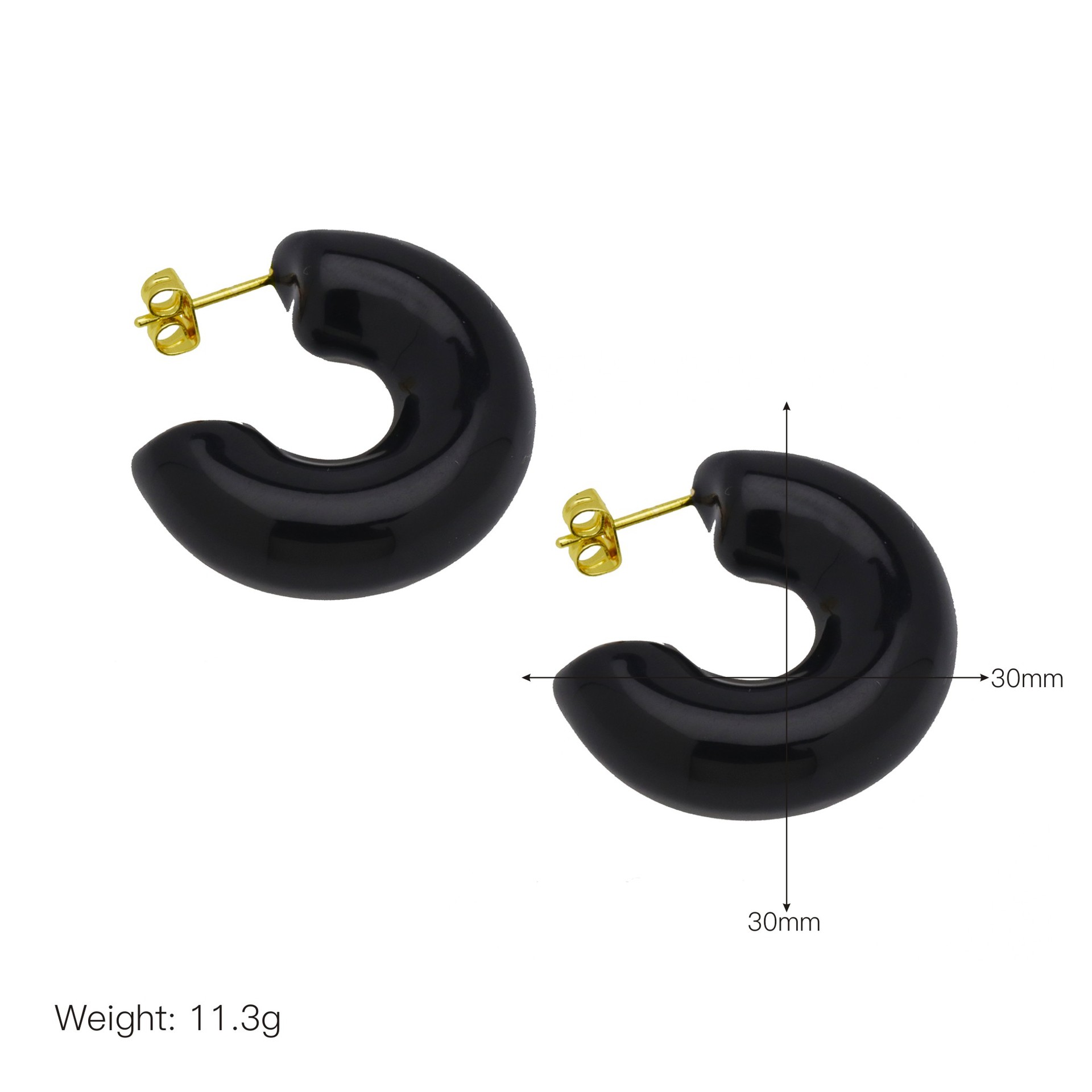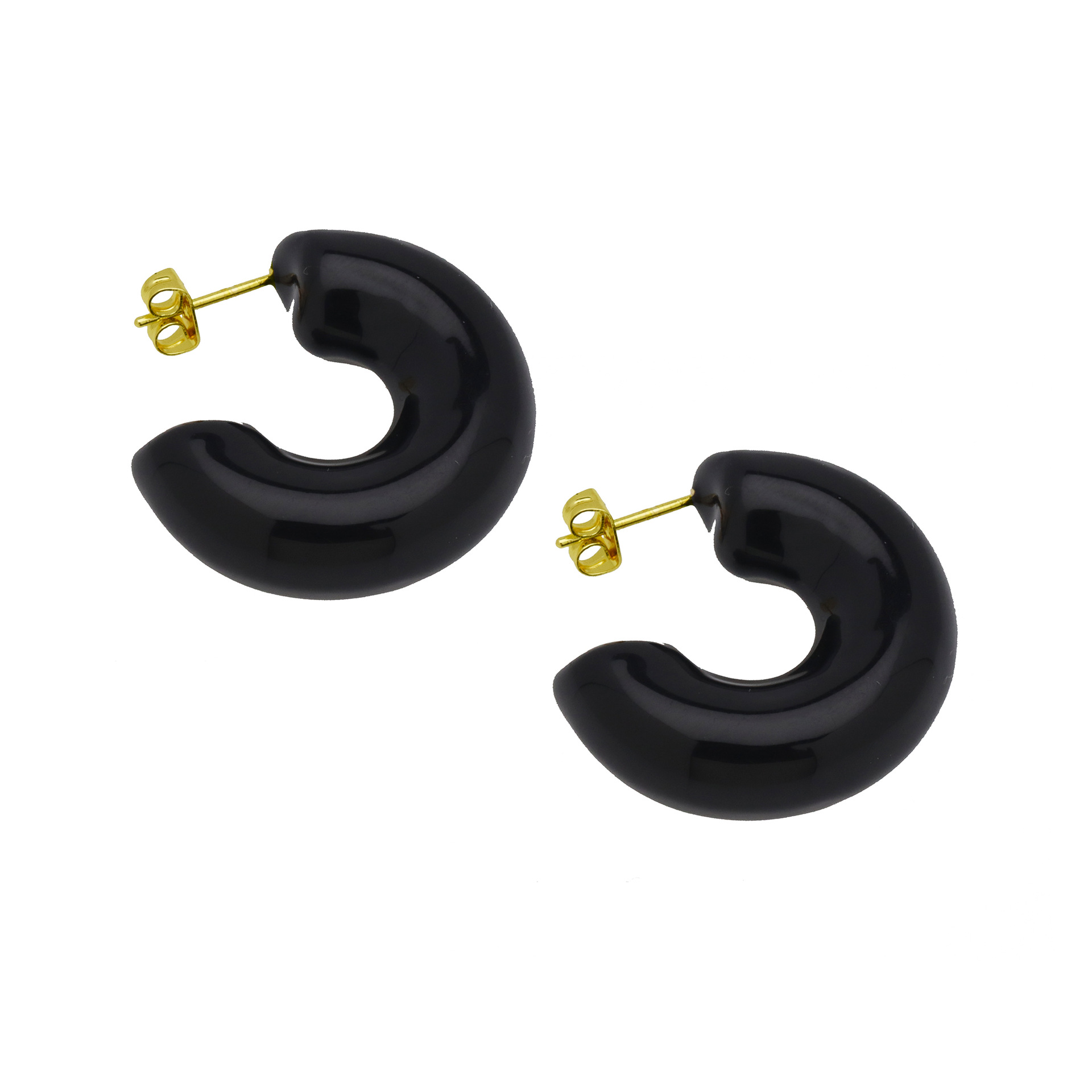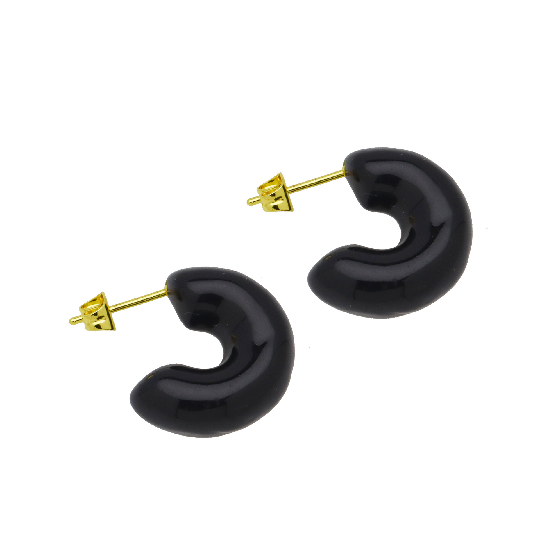 Messing Stud ørering, sølvfarvet forgyldt, for kvinde & emalje, sort, 11.80x11.80mm, Solgt af par