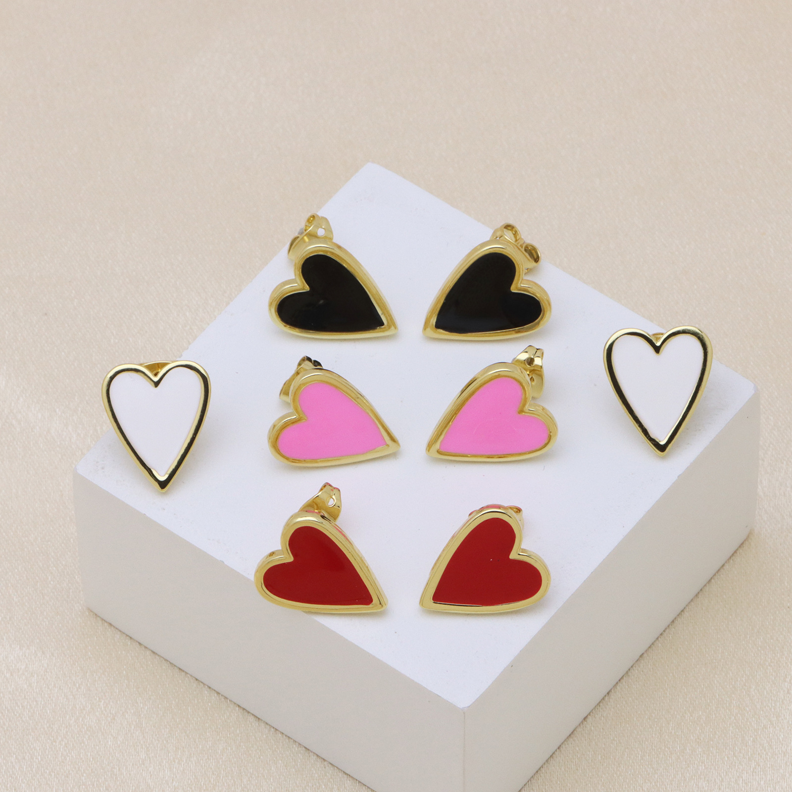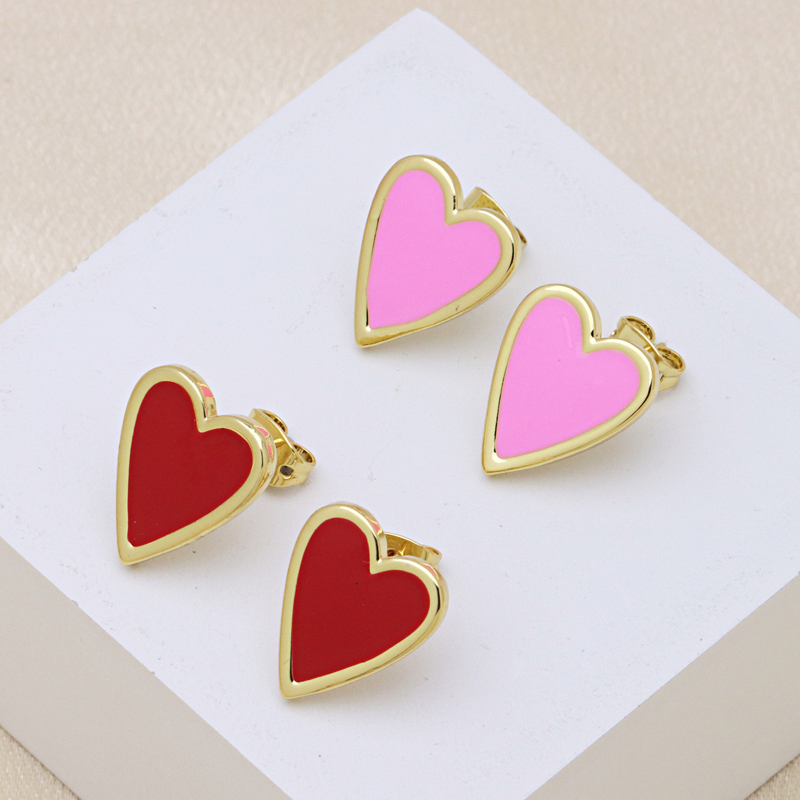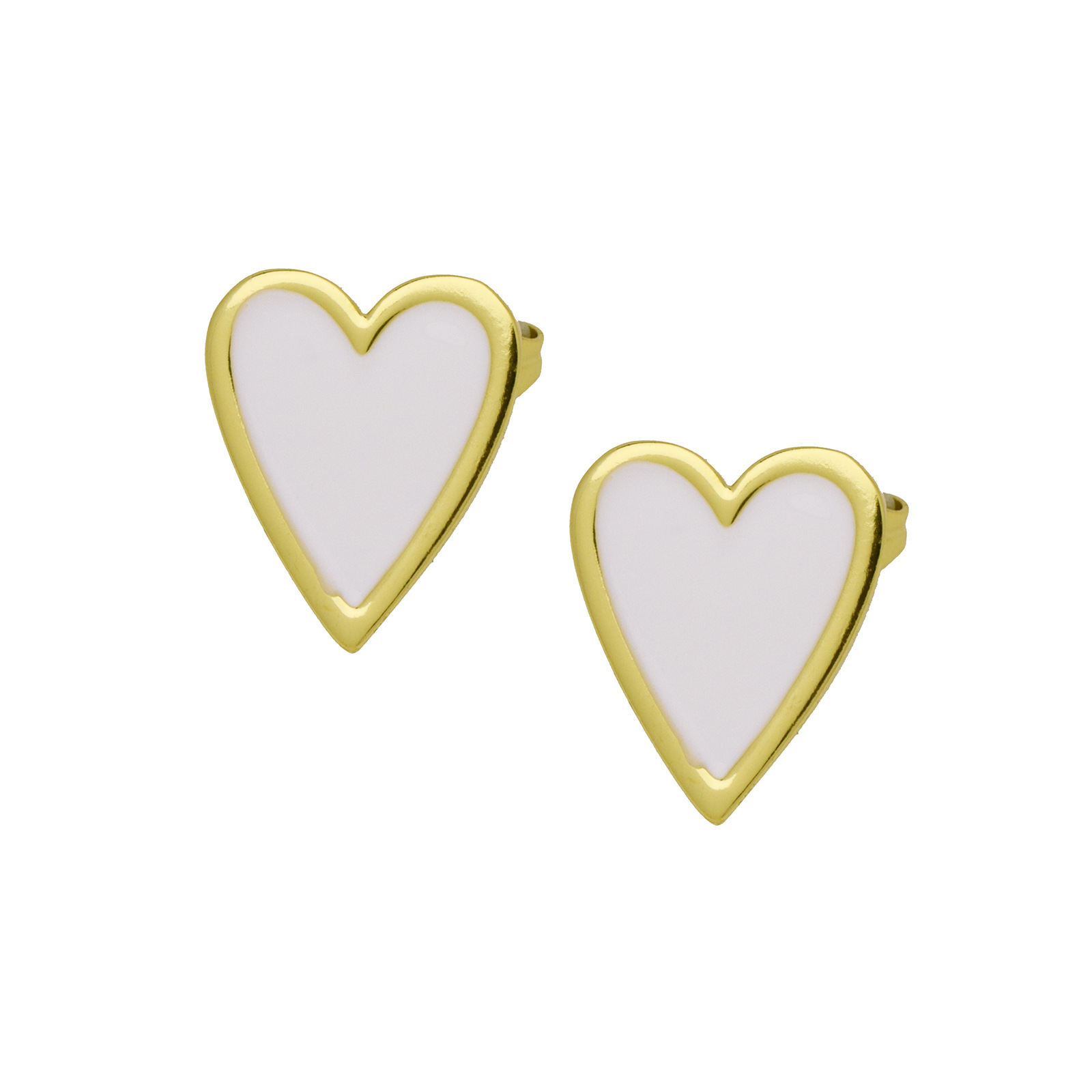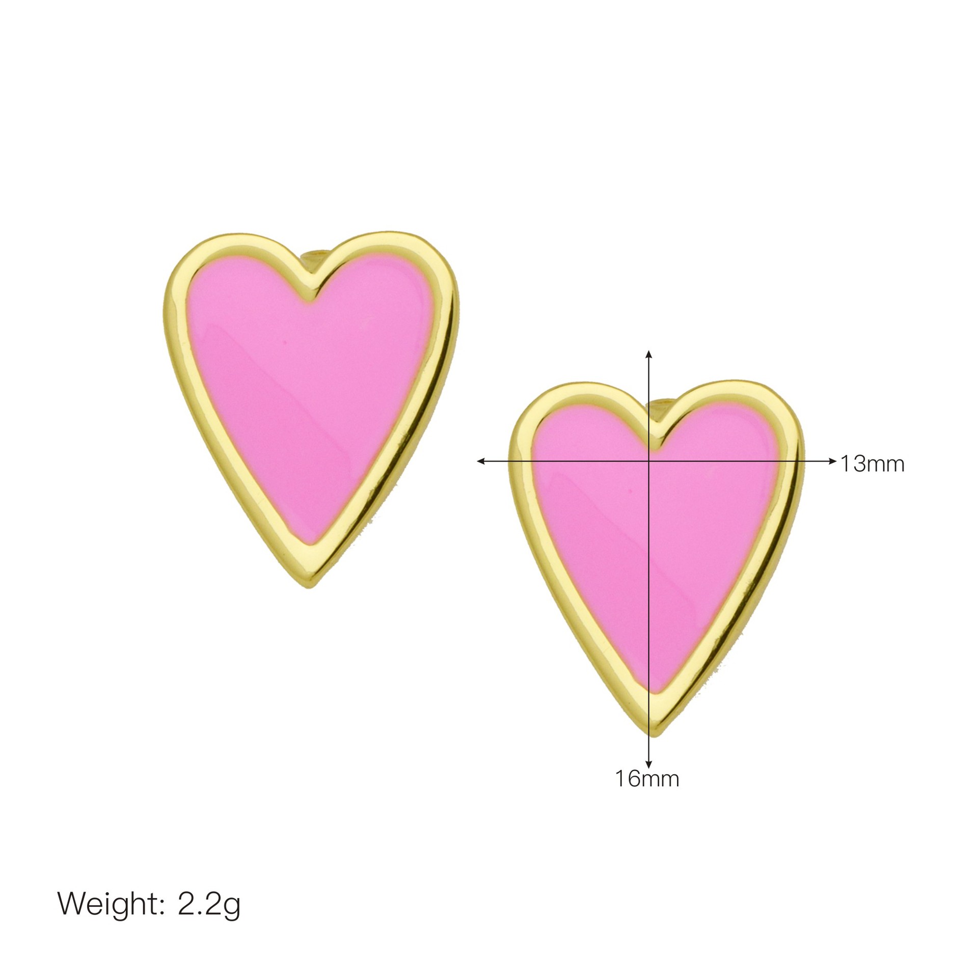 Messing Stud ørering, Heart, guldfarve belagt, for kvinde & emalje, flere farver til valg, 13x16mm, Solgt af par
