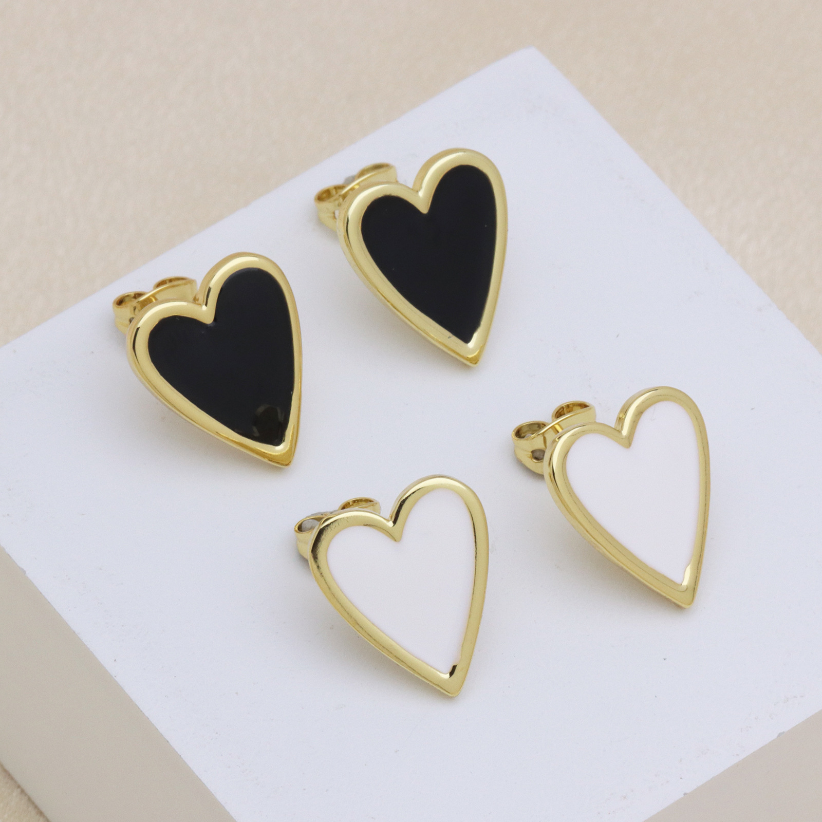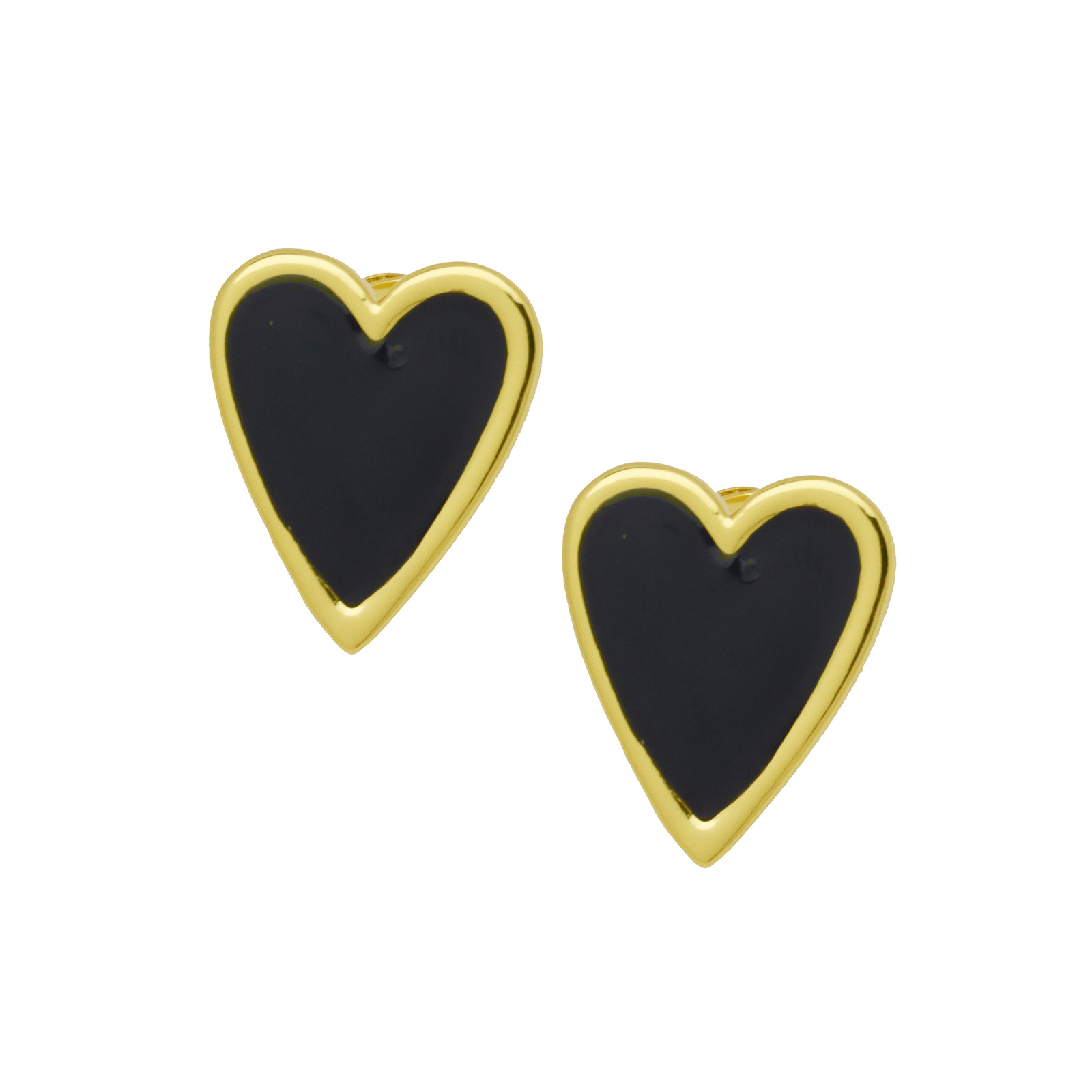 Messing Stud ørering, sølvfarvet forgyldt, for kvinde & emalje, sort, 11.80x11.80mm, Solgt af par