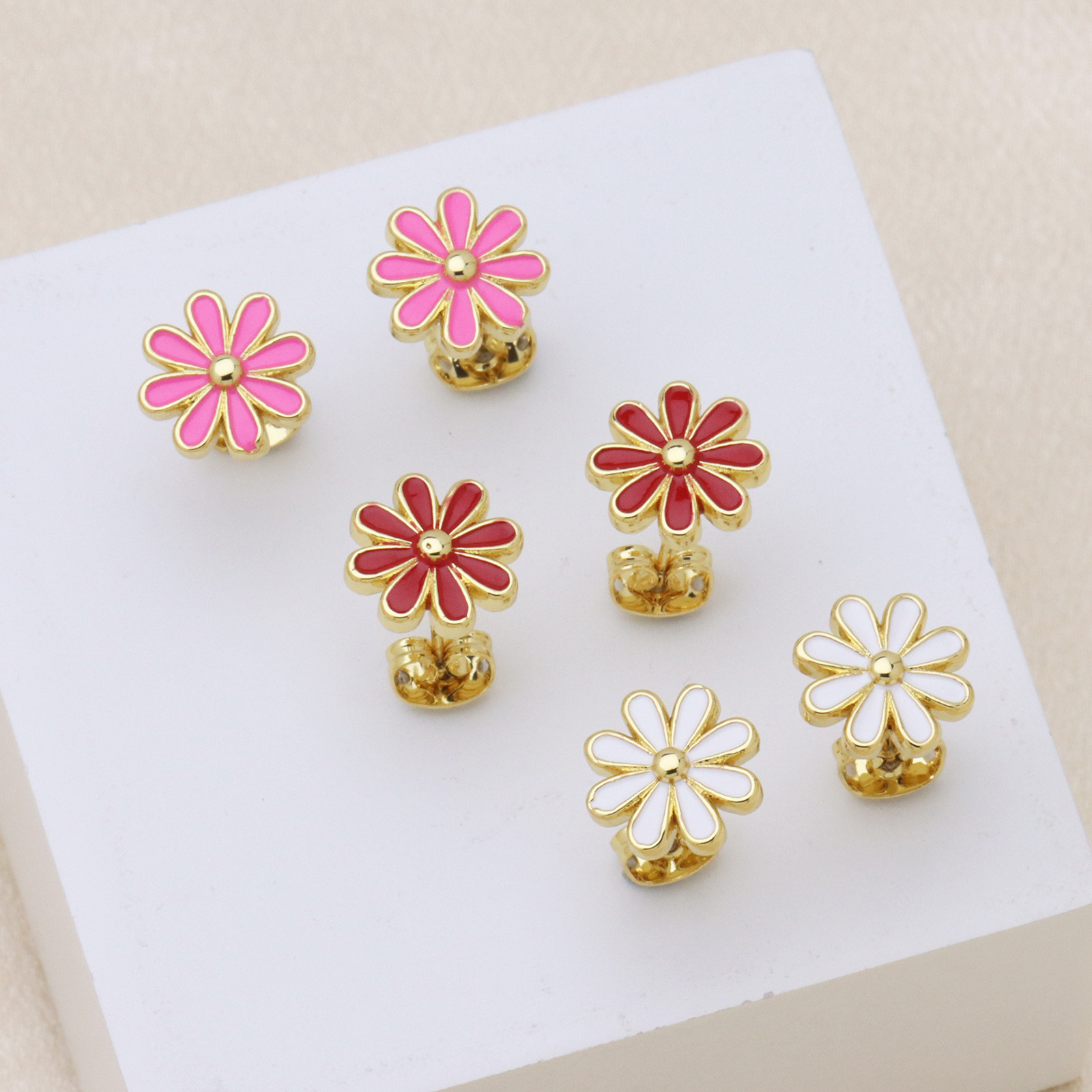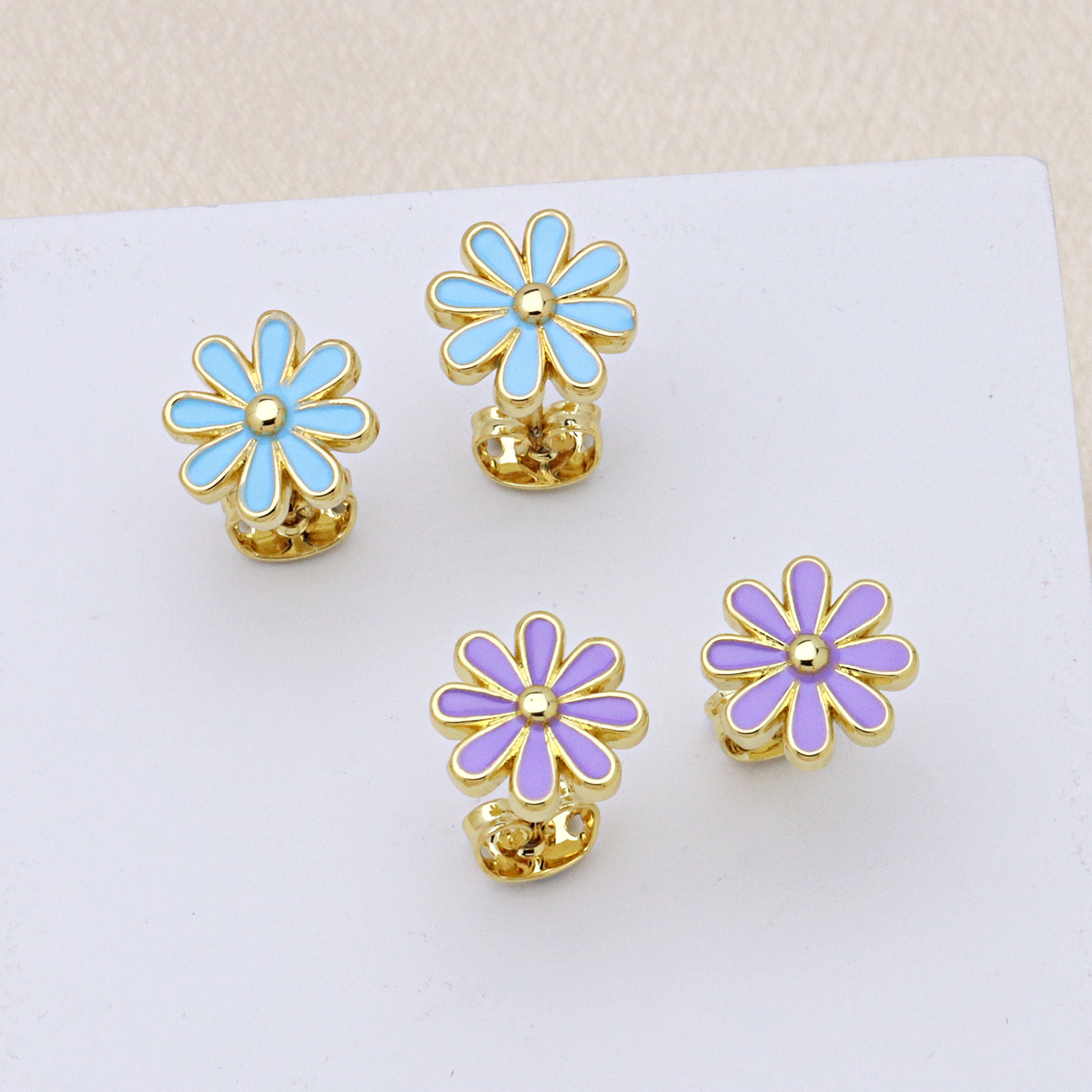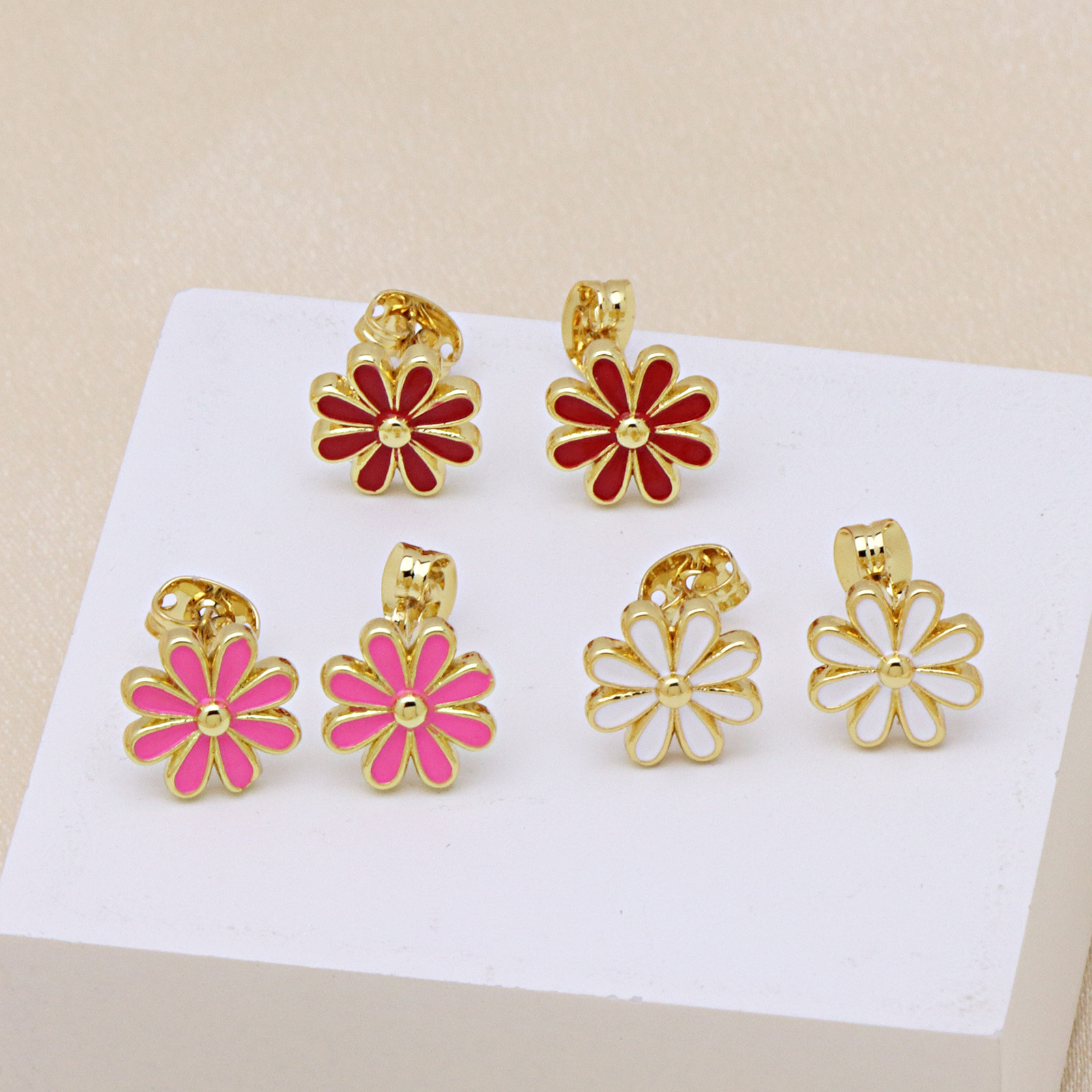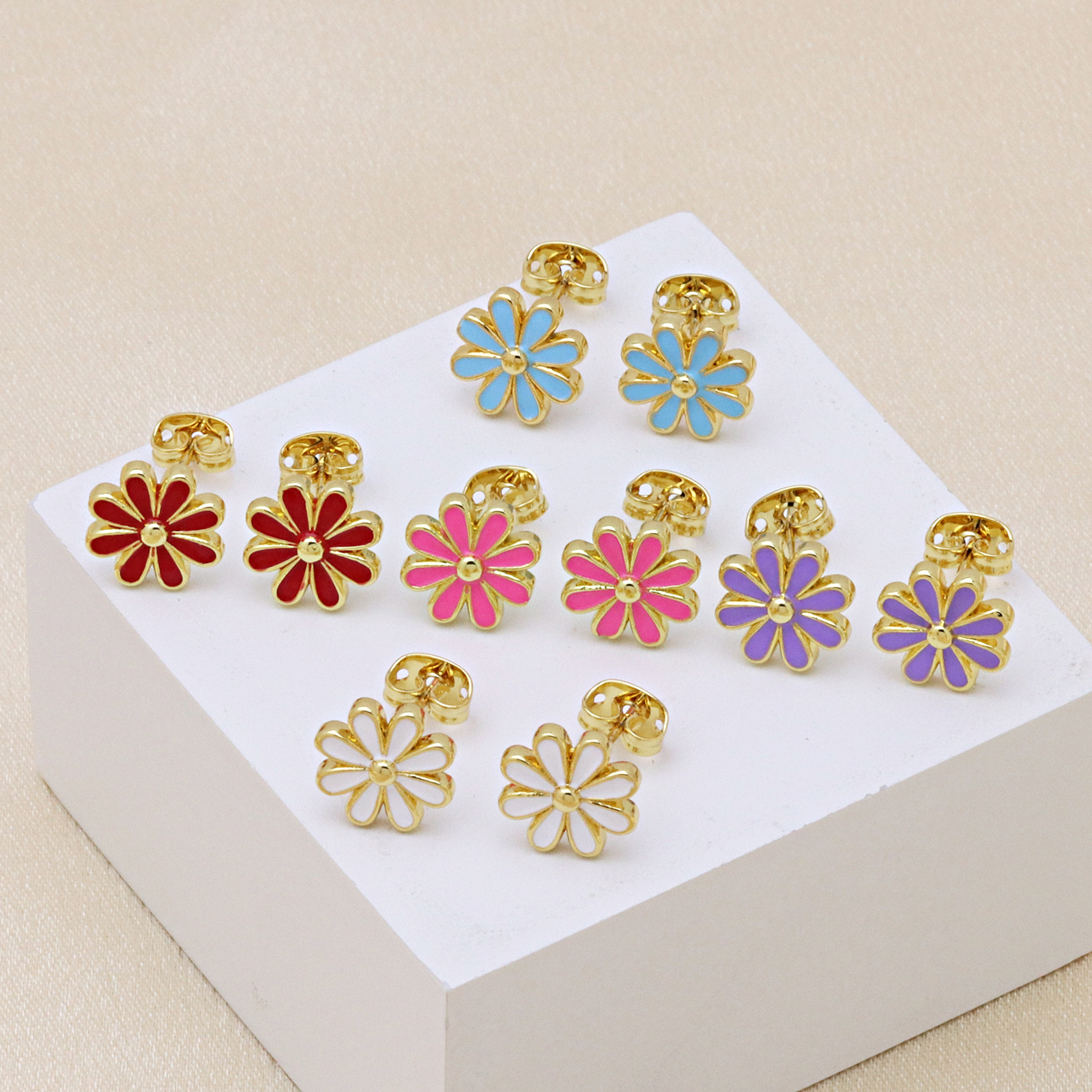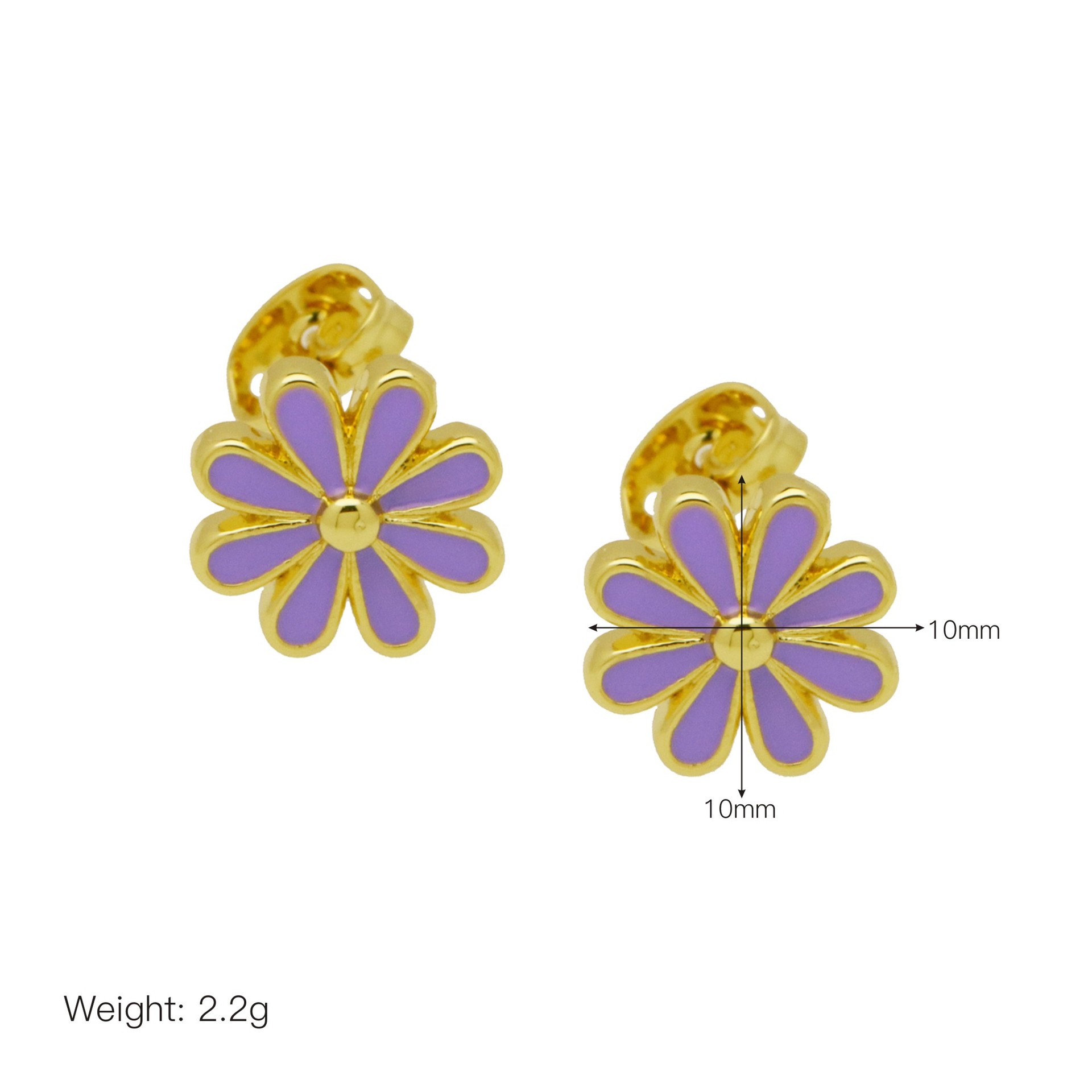 Messing Stud ørering, Flower, guldfarve belagt, for kvinde & emalje, flere farver til valg, 10x10mm, Solgt af par