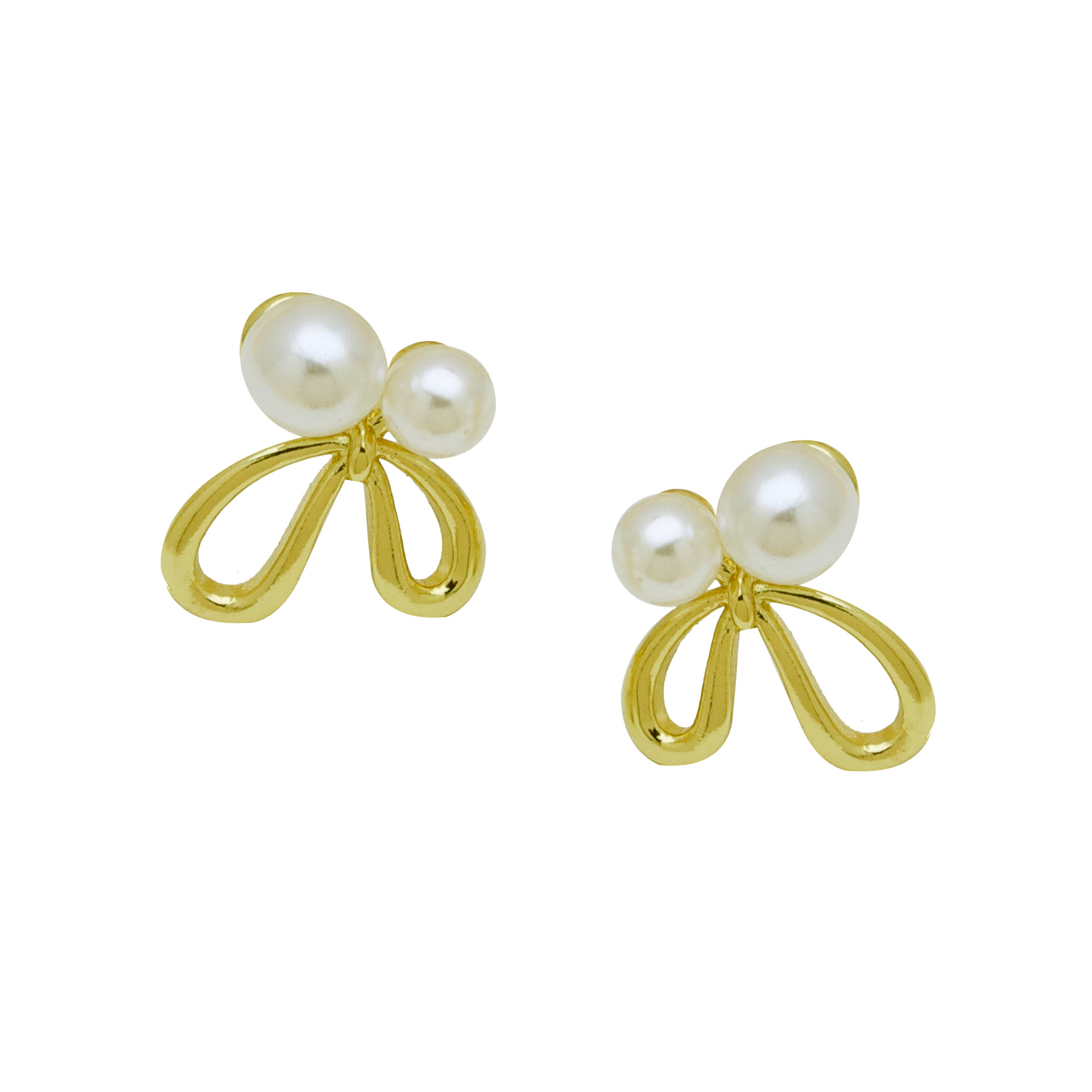 Messing Stud ørering, med White Shell & Plastic Pearl, guldfarve belagt, forskellige stilarter for valg & for kvinde & emalje, flere farver til valg, Solgt af par