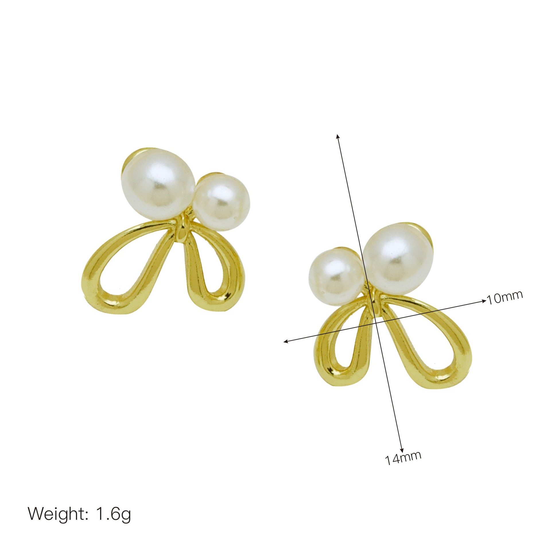 Messing Stud ørering, sølvfarvet forgyldt, for kvinde, 13x13mm, Solgt af par