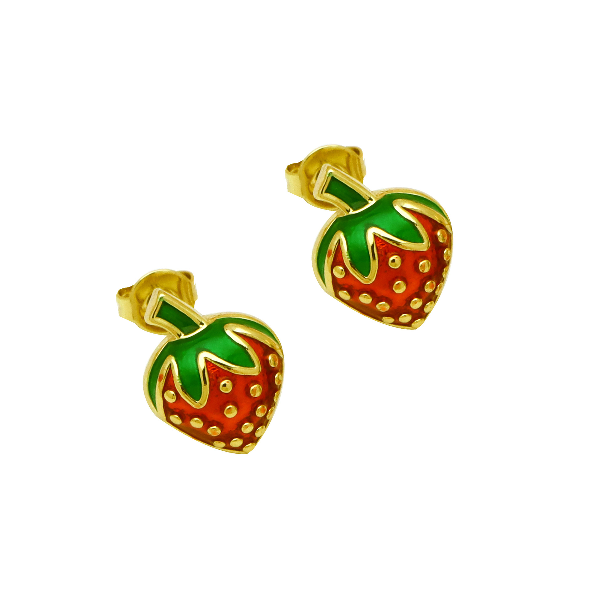 Messing Stud ørering, sølvfarvet forgyldt, for kvinde & emalje, sort, 11.80x11.80mm, Solgt af par