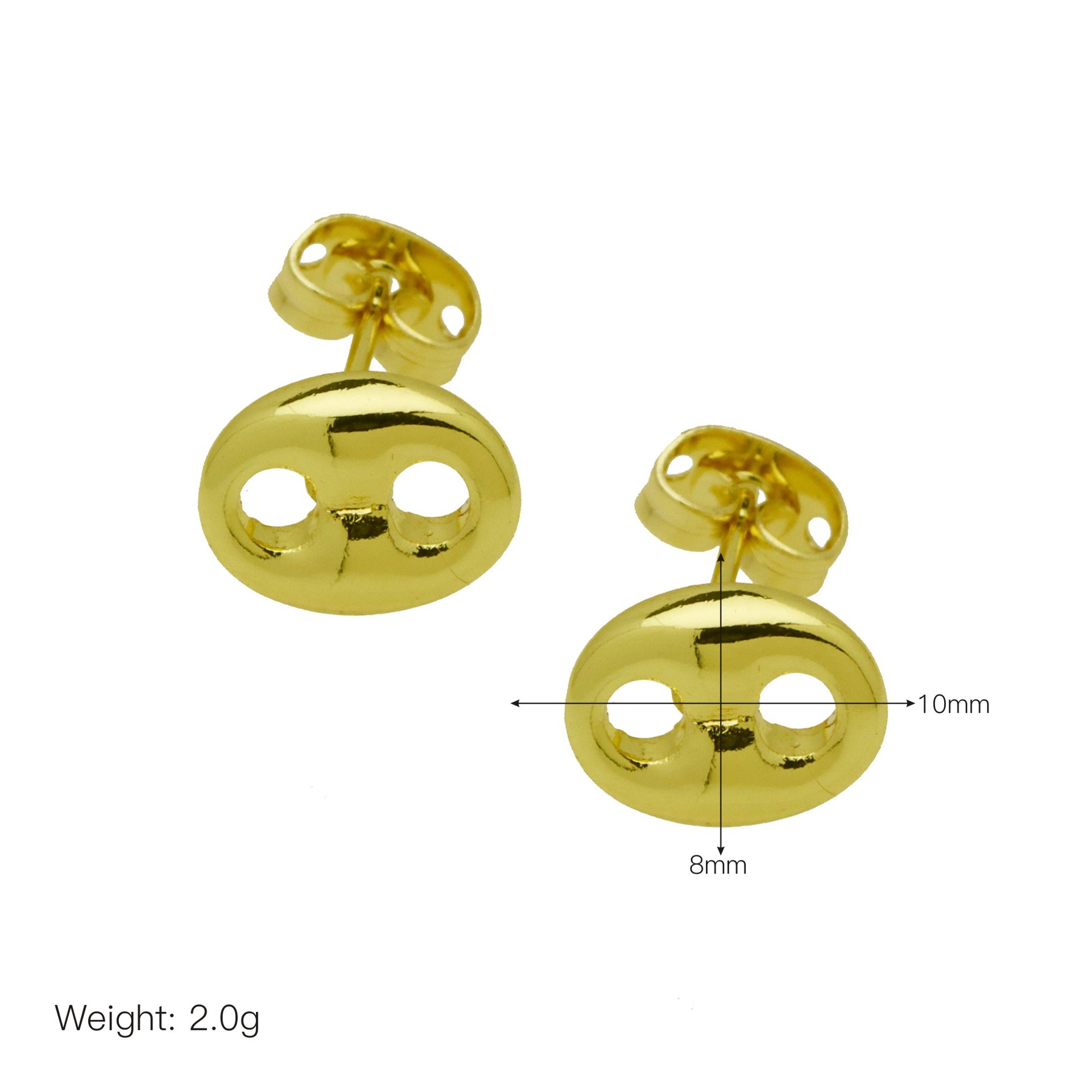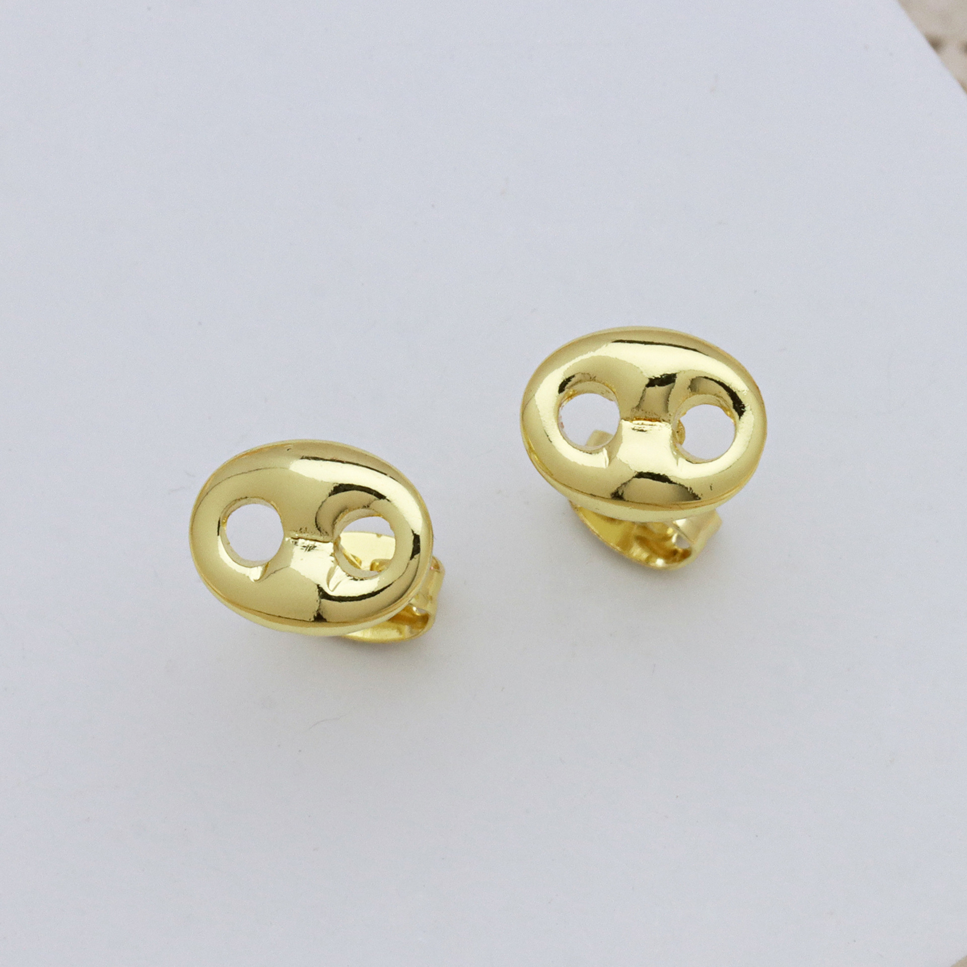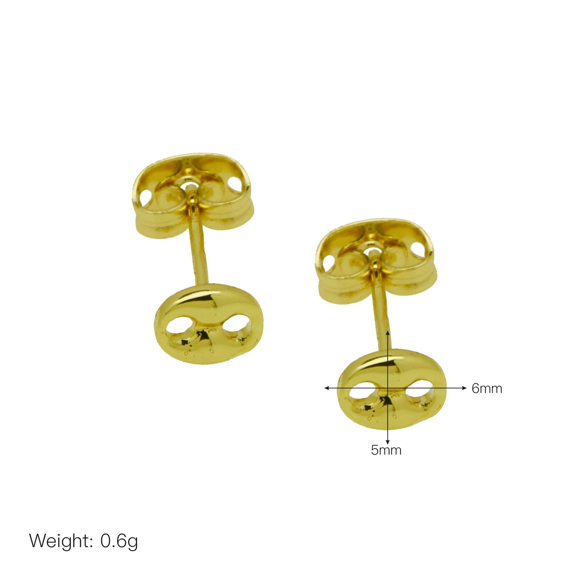 Messing Stud ørering, sølvfarvet forgyldt, for kvinde, 13x13mm, Solgt af par