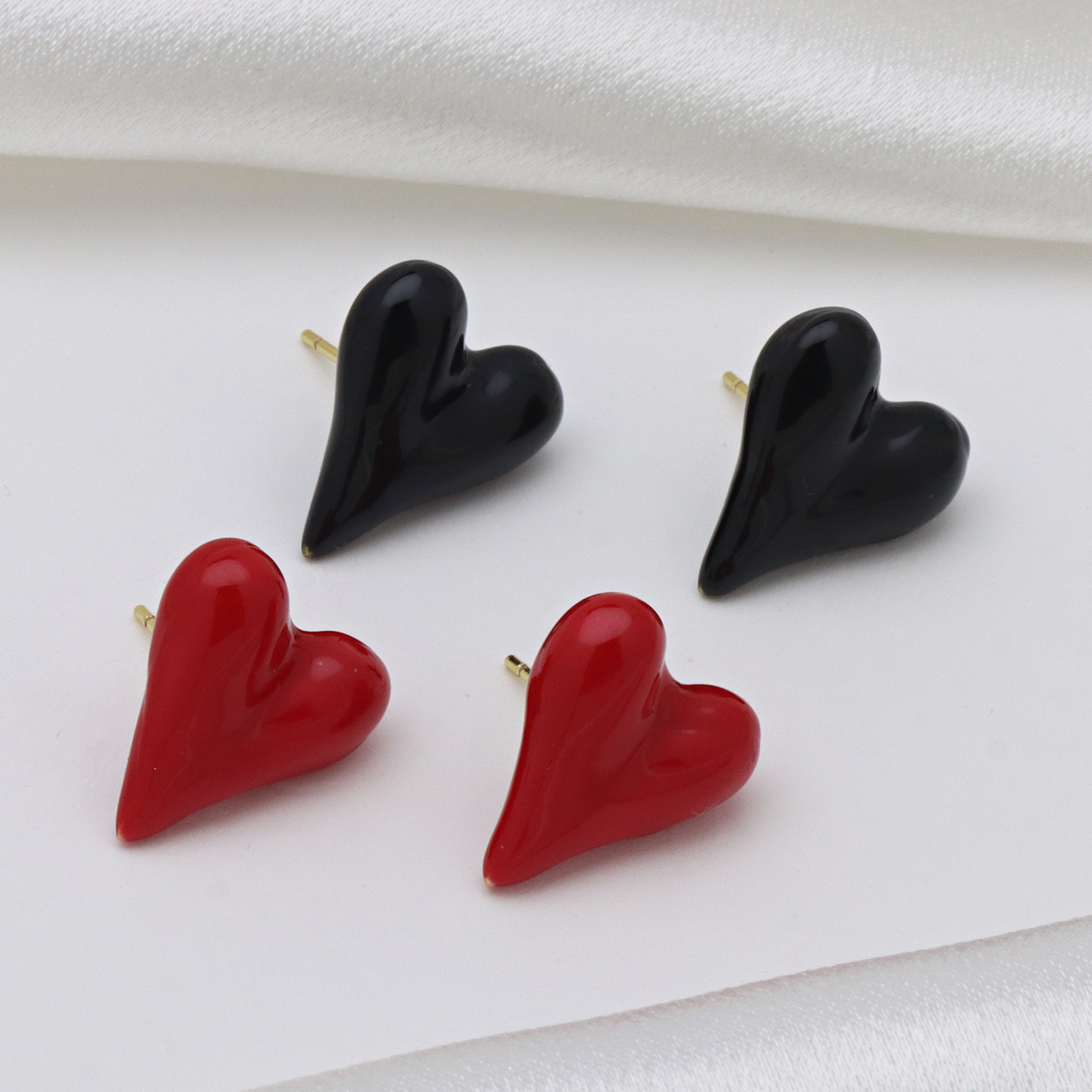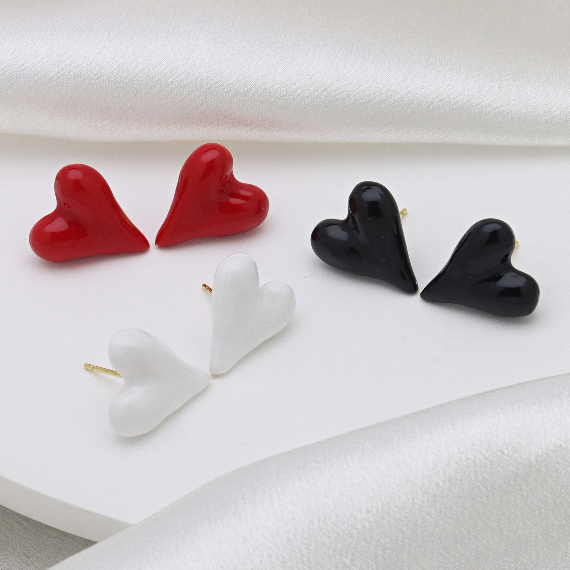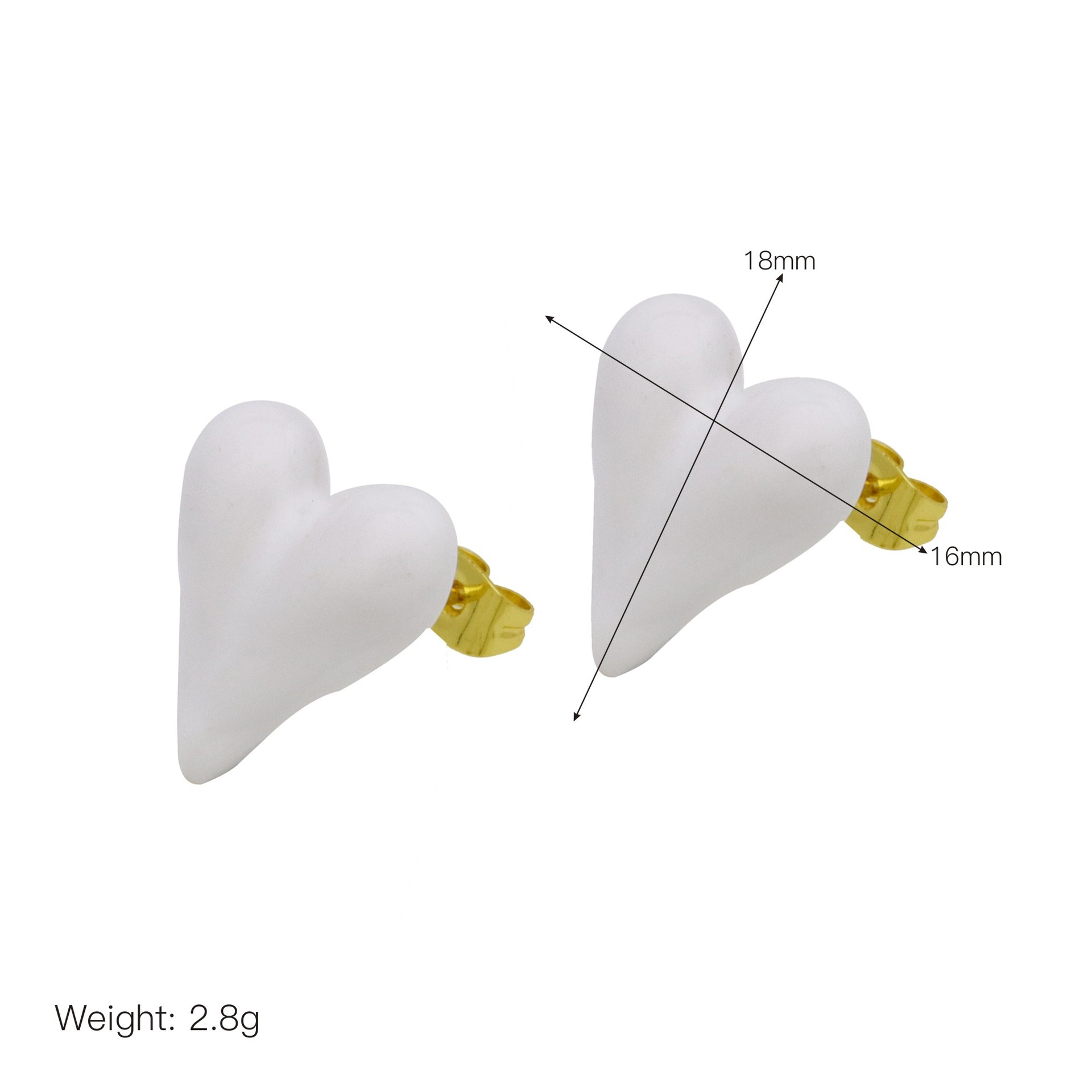 Messing Stud ørering, Heart, forgyldt, for kvinde & emalje, flere farver til valg, 16x18mm, Solgt af par