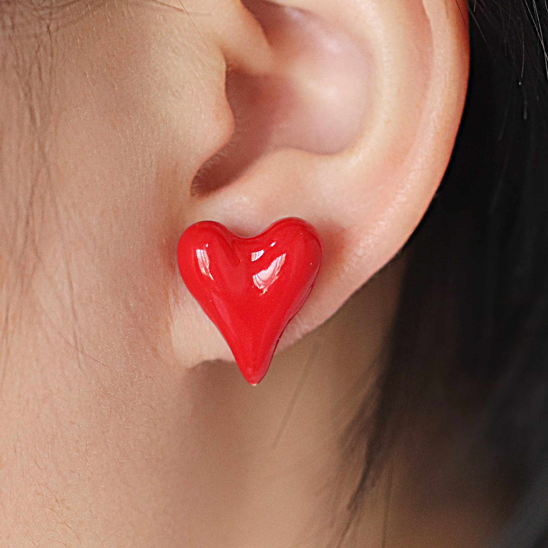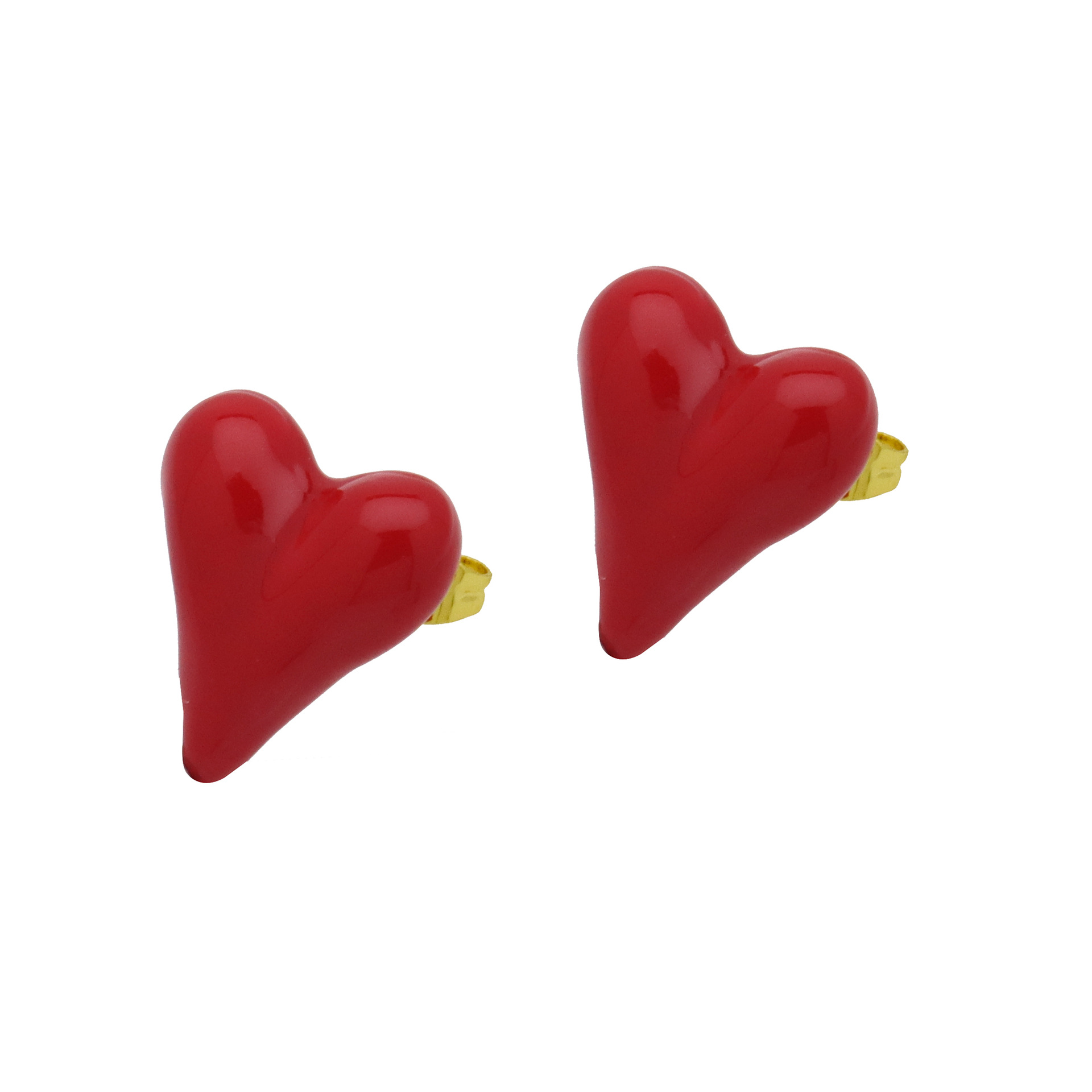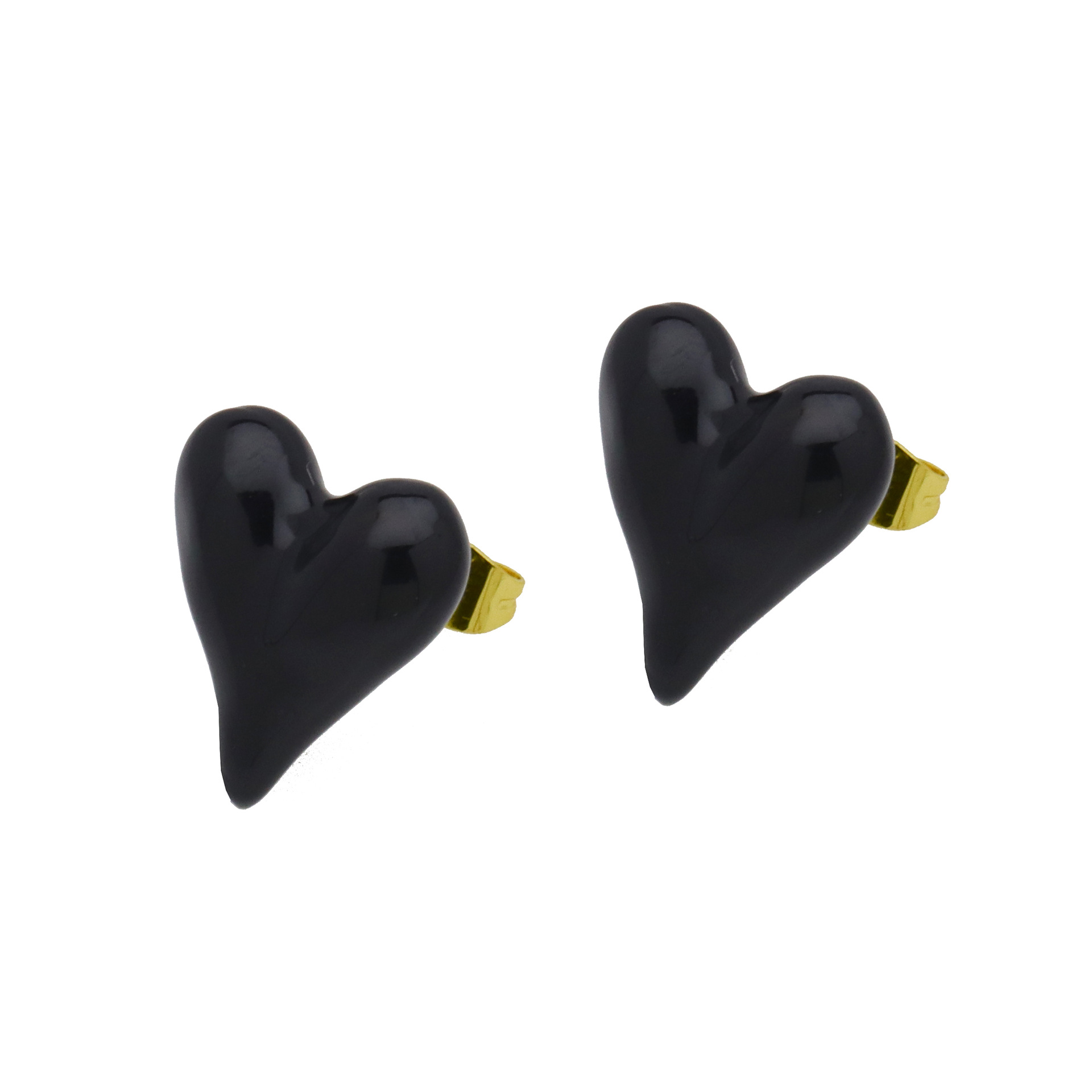 Messing Stud ørering, Heart, forgyldt, for kvinde & emalje, flere farver til valg, 16x18mm, Solgt af par