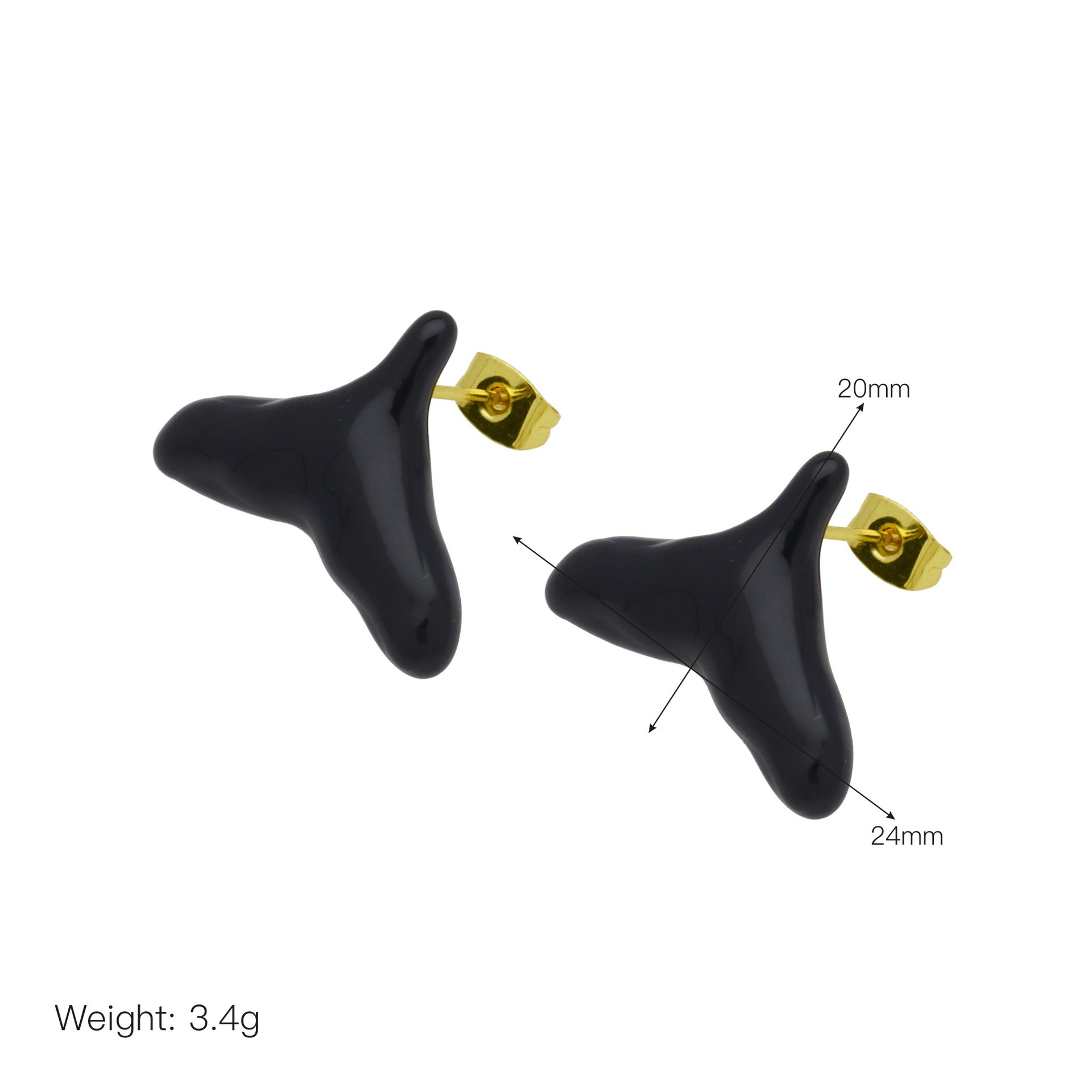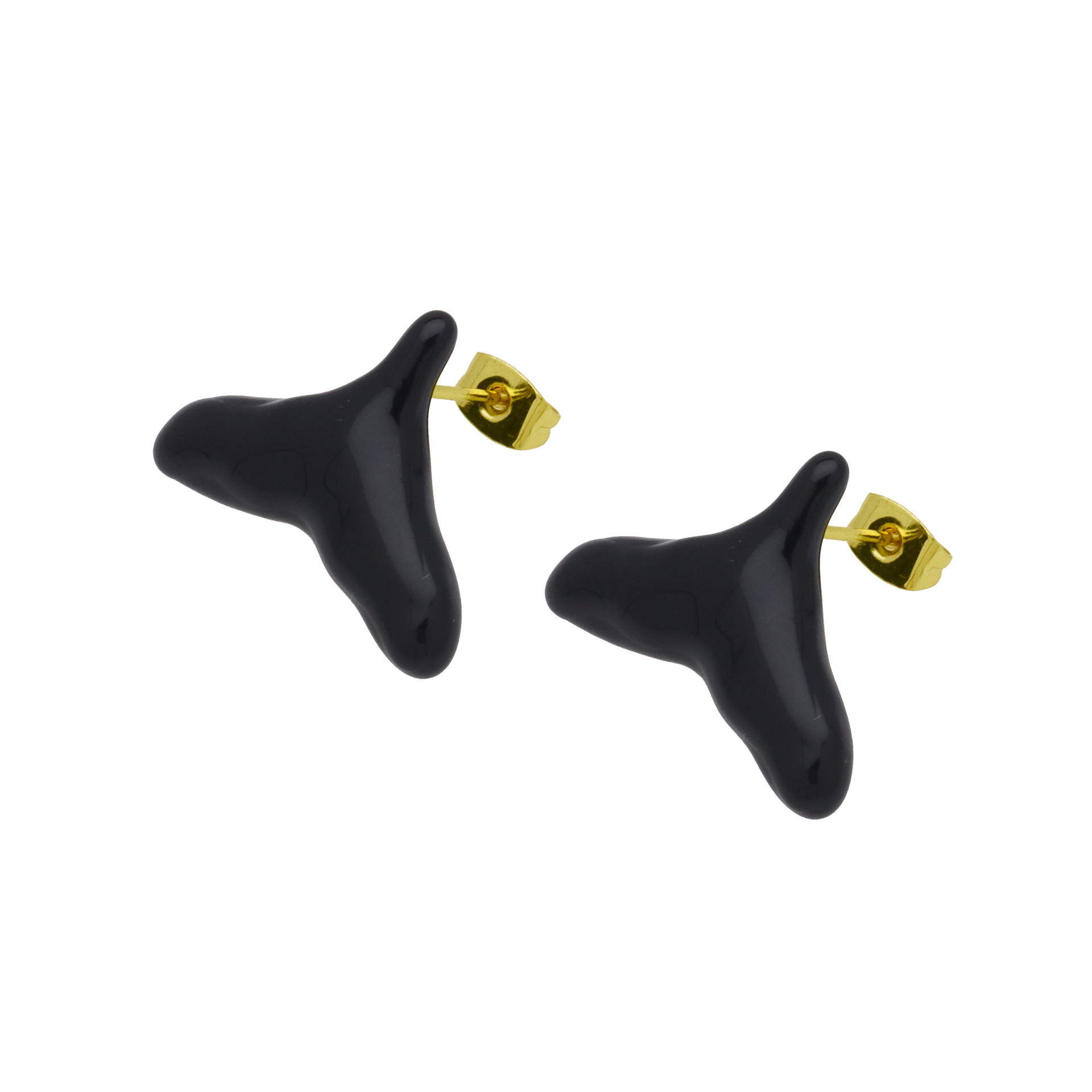Messing Stud ørering, sølvfarvet forgyldt, for kvinde & emalje, sort, 11.80x11.80mm, Solgt af par