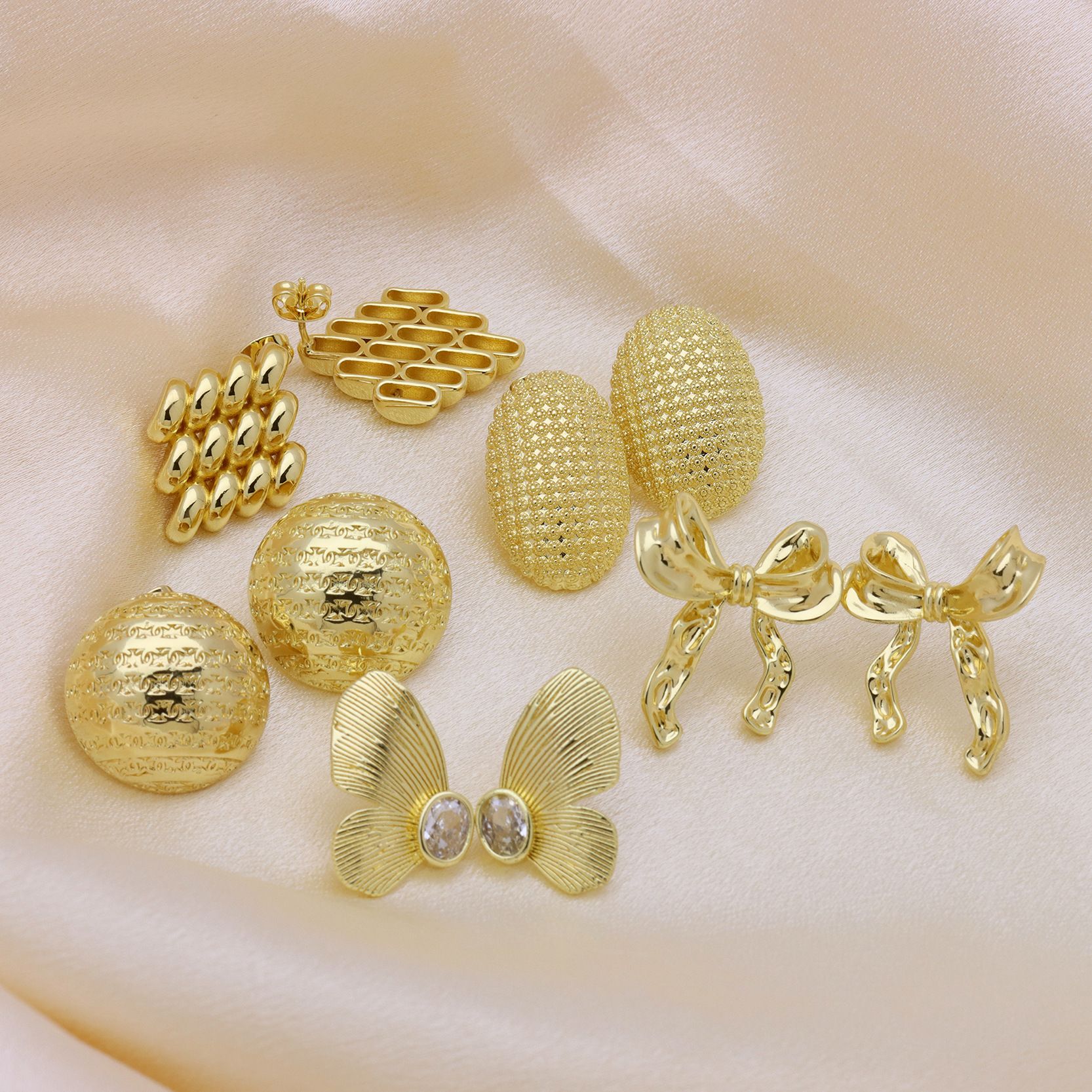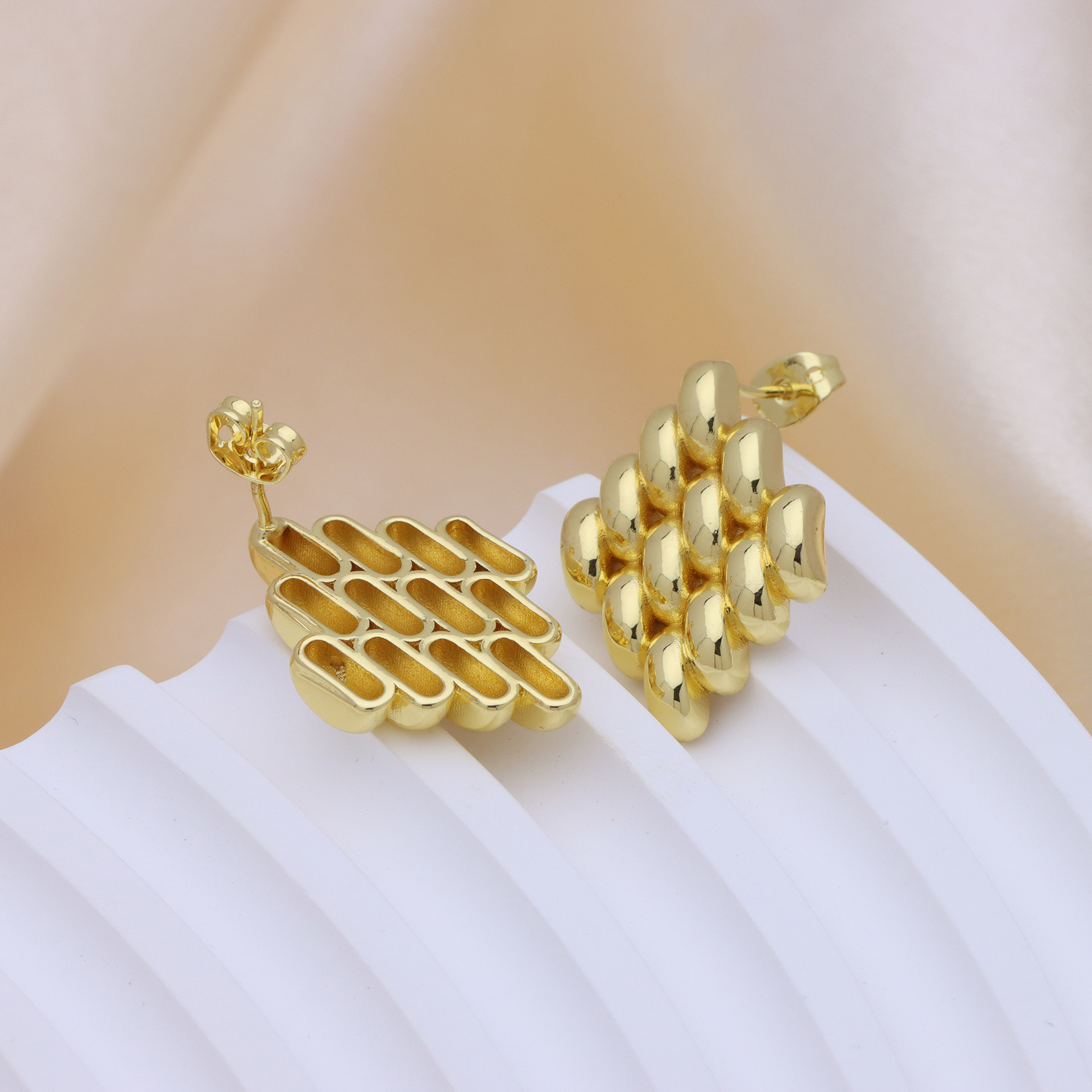 Messing Stud ørering, sølvfarvet forgyldt, for kvinde, 13x13mm, Solgt af par