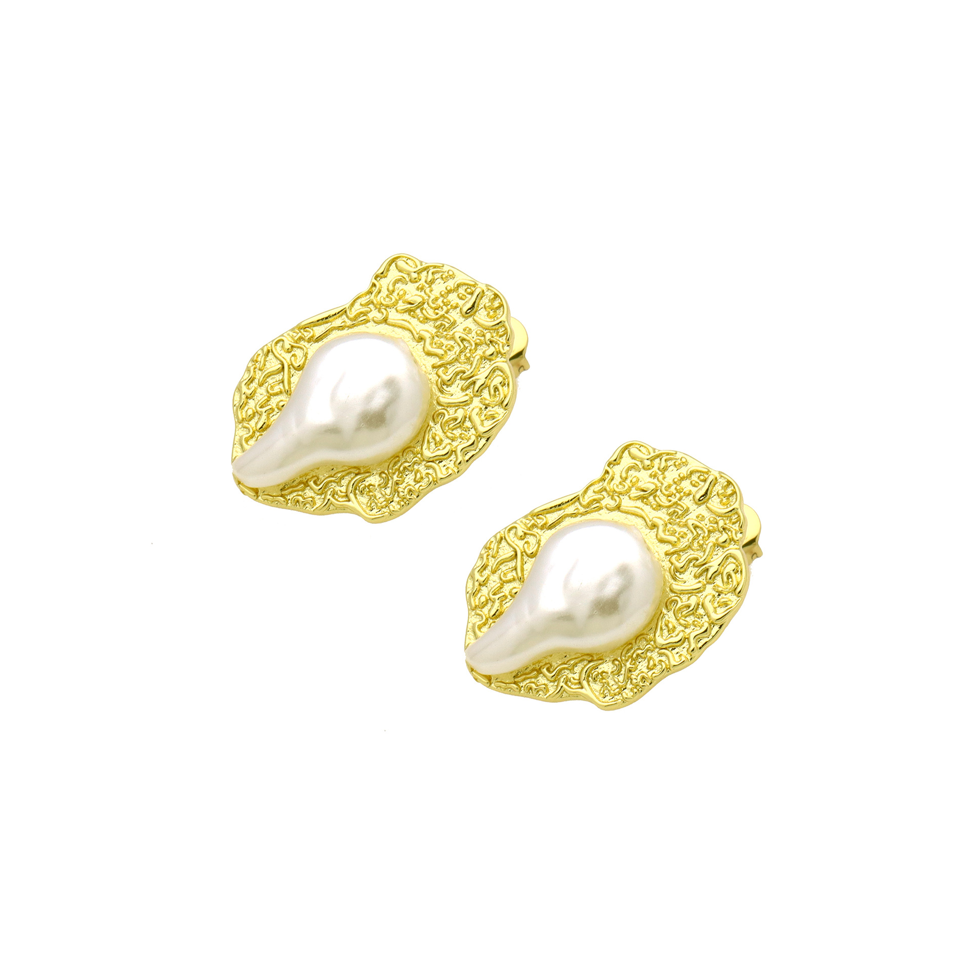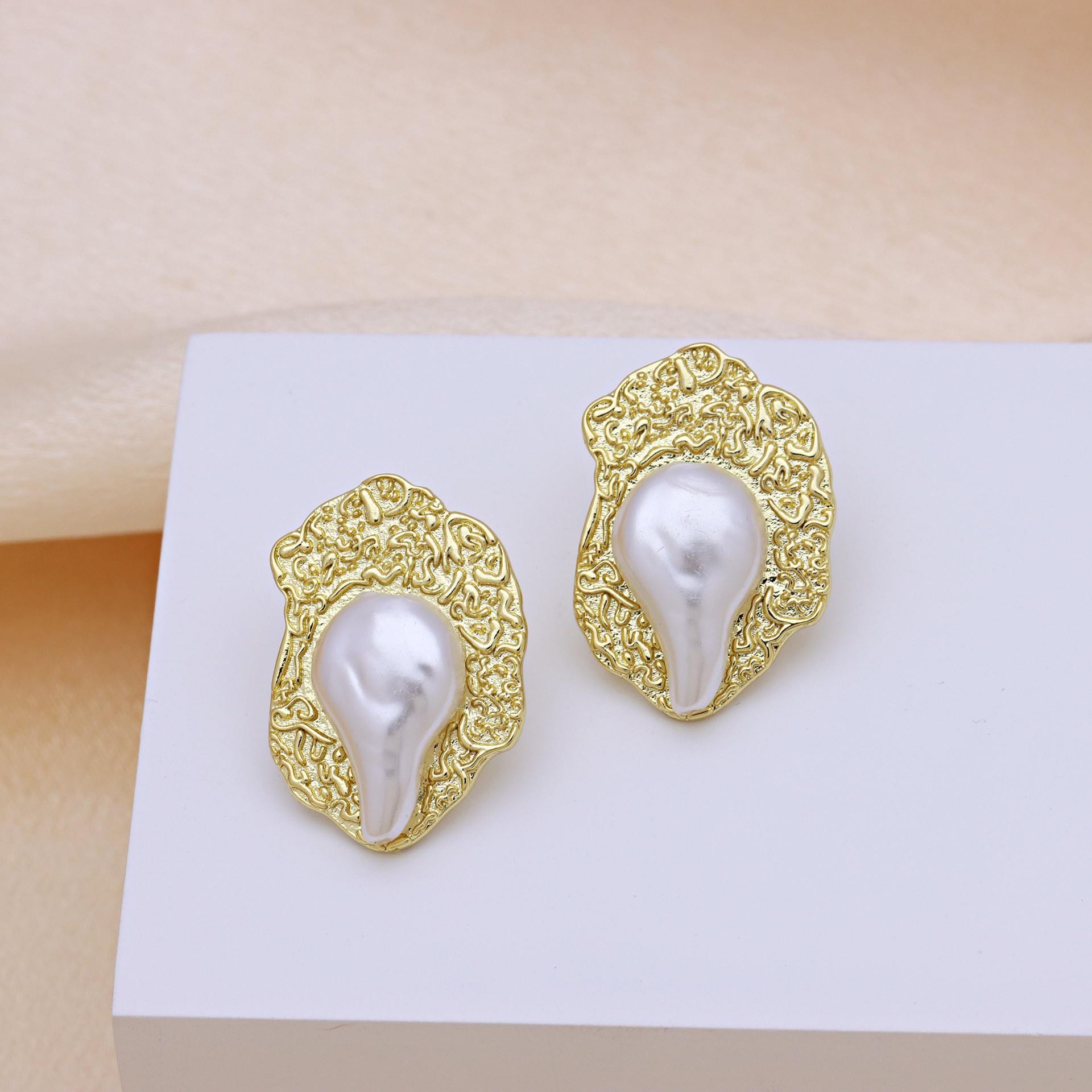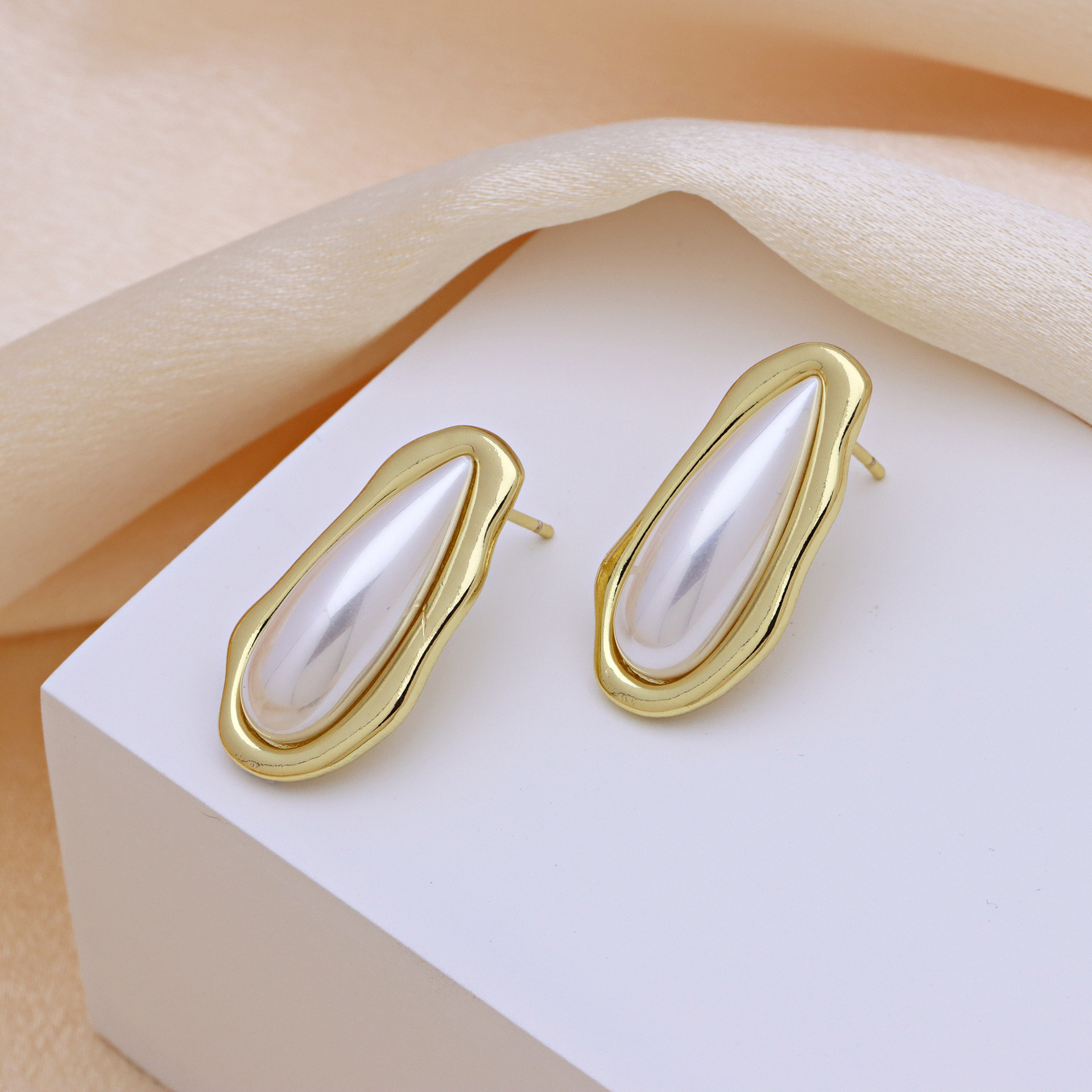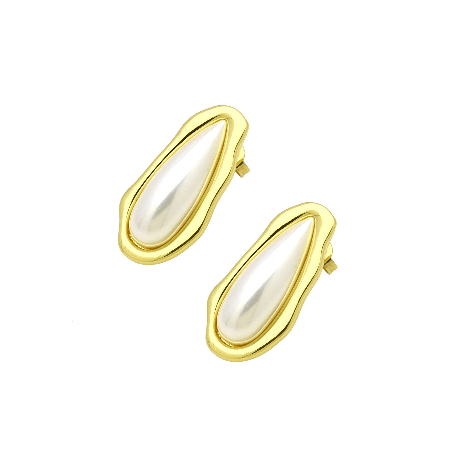 Messing Stud ørering, med Plastic Pearl, guldfarve belagt, forskellige stilarter for valg & for kvinde, flere farver til valg, Solgt af par