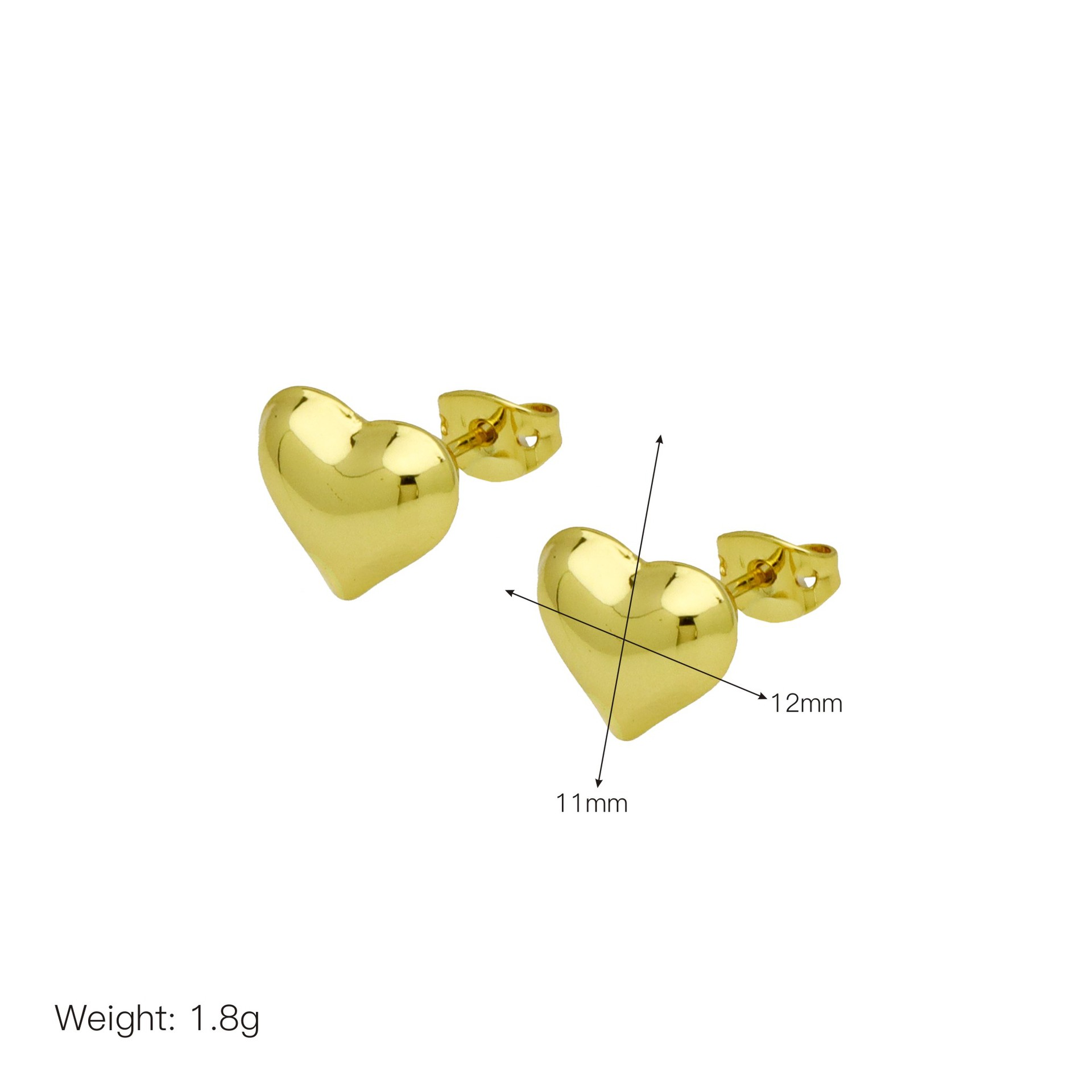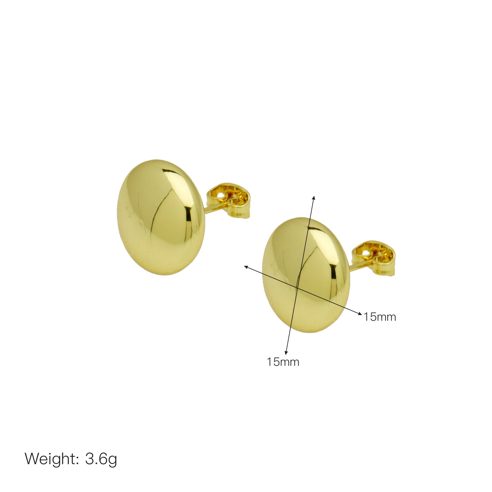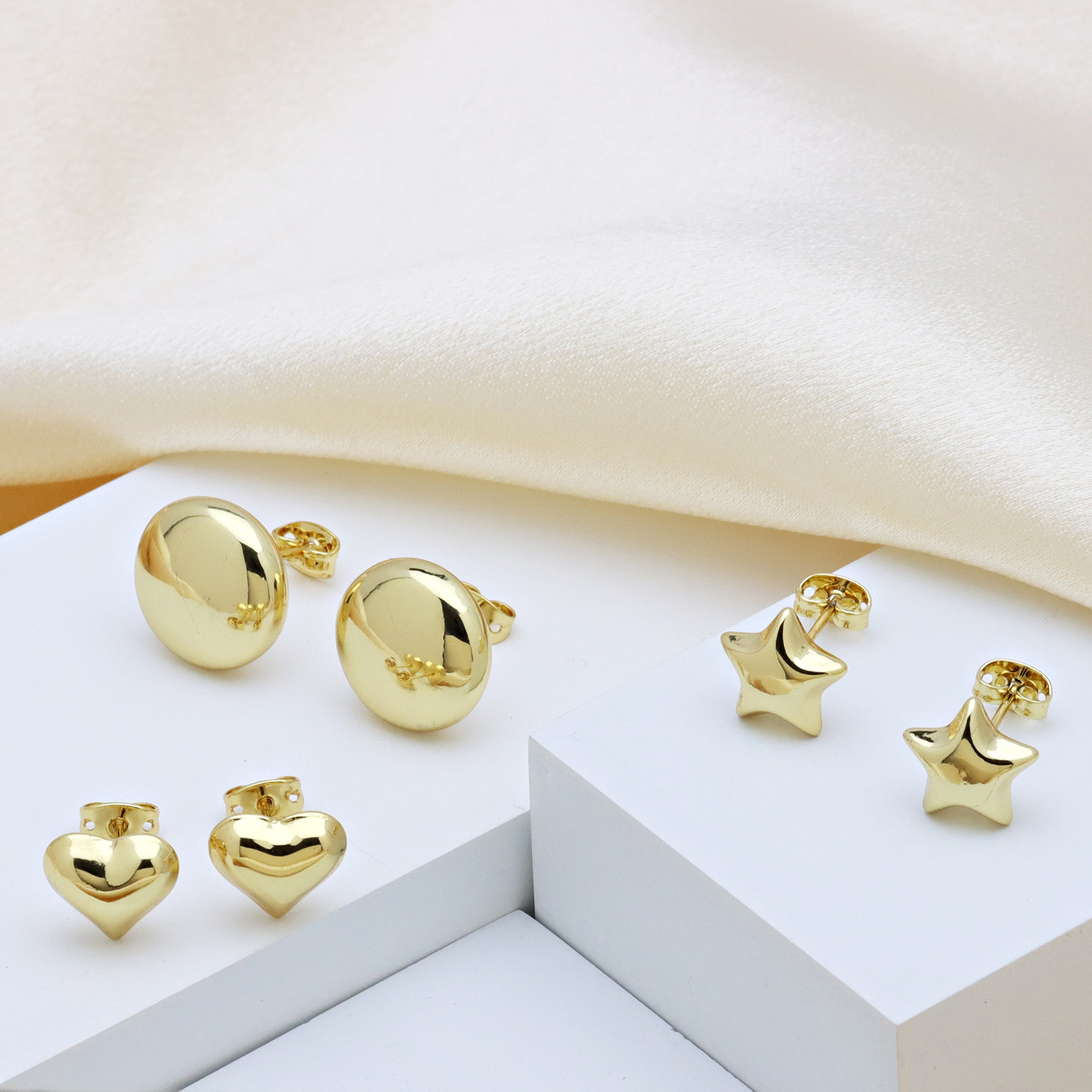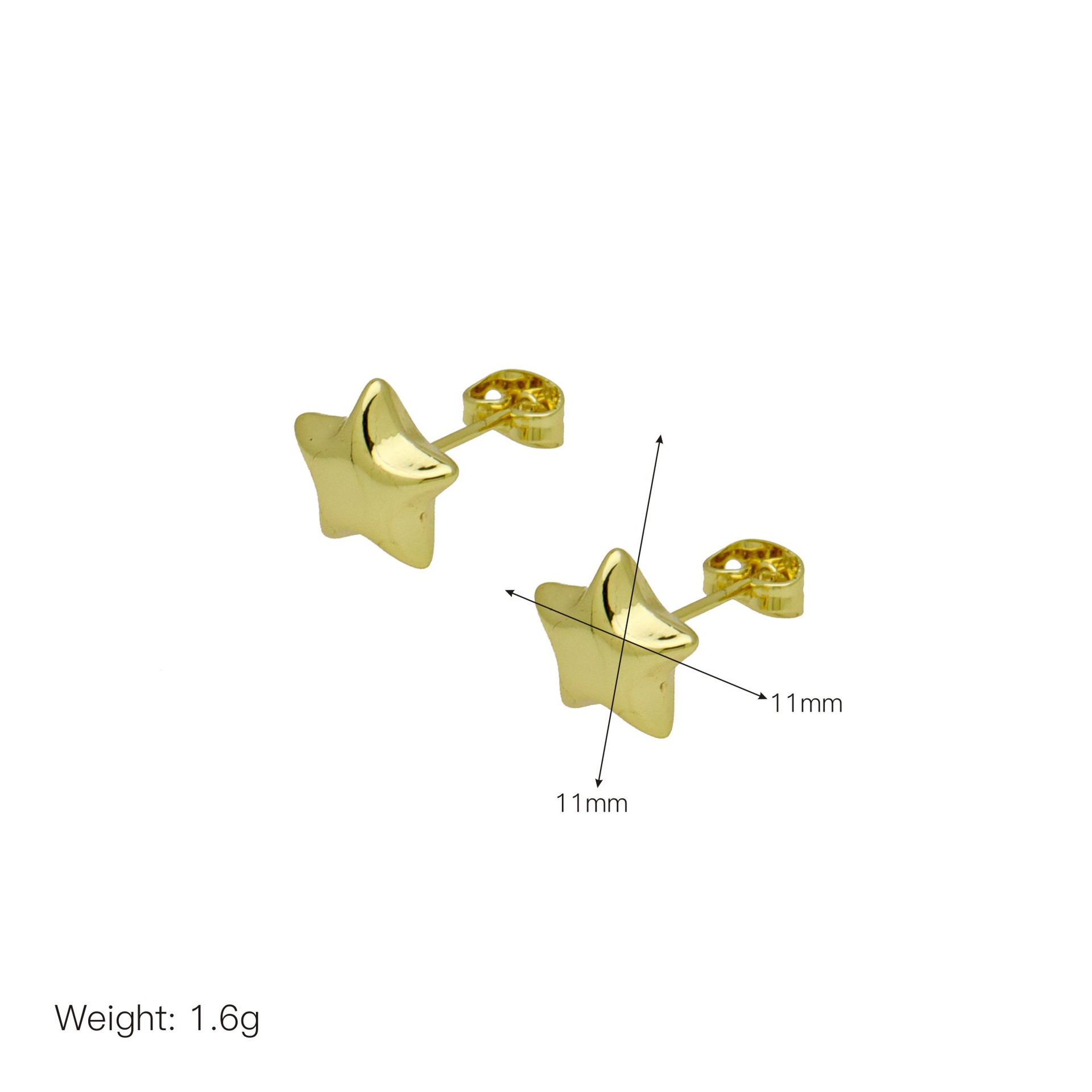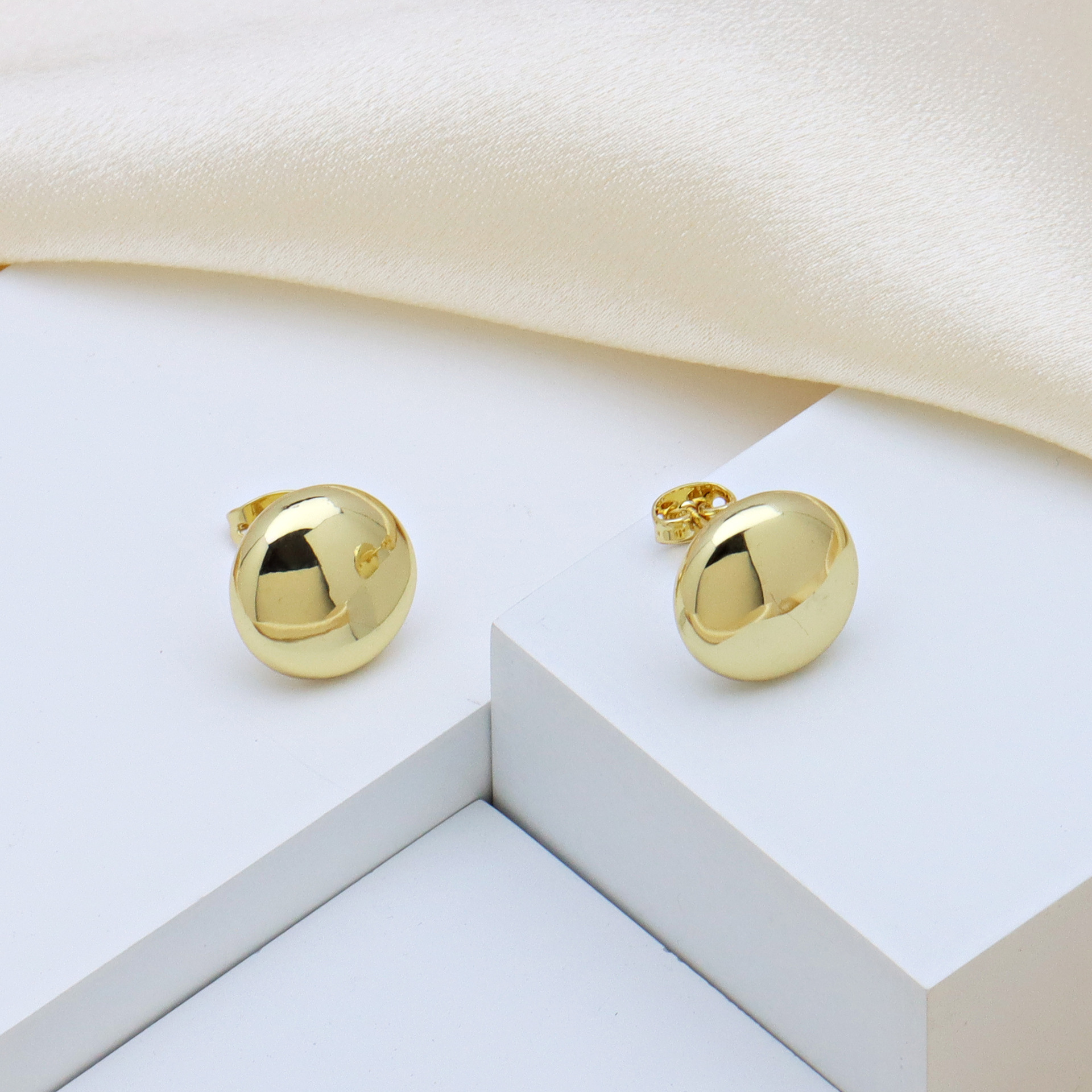 Messing Stud ørering, sølvfarvet forgyldt, for kvinde, 13x13mm, Solgt af par
