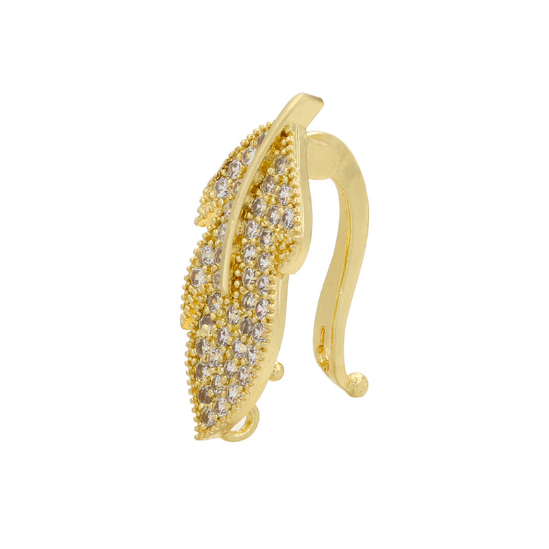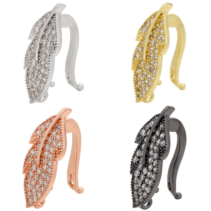 Messing smykker Spænder, Leaf, forgyldt, du kan DIY & Micro Pave cubic zirconia, flere farver til valg, 10x23.50mm, Solgt af PC