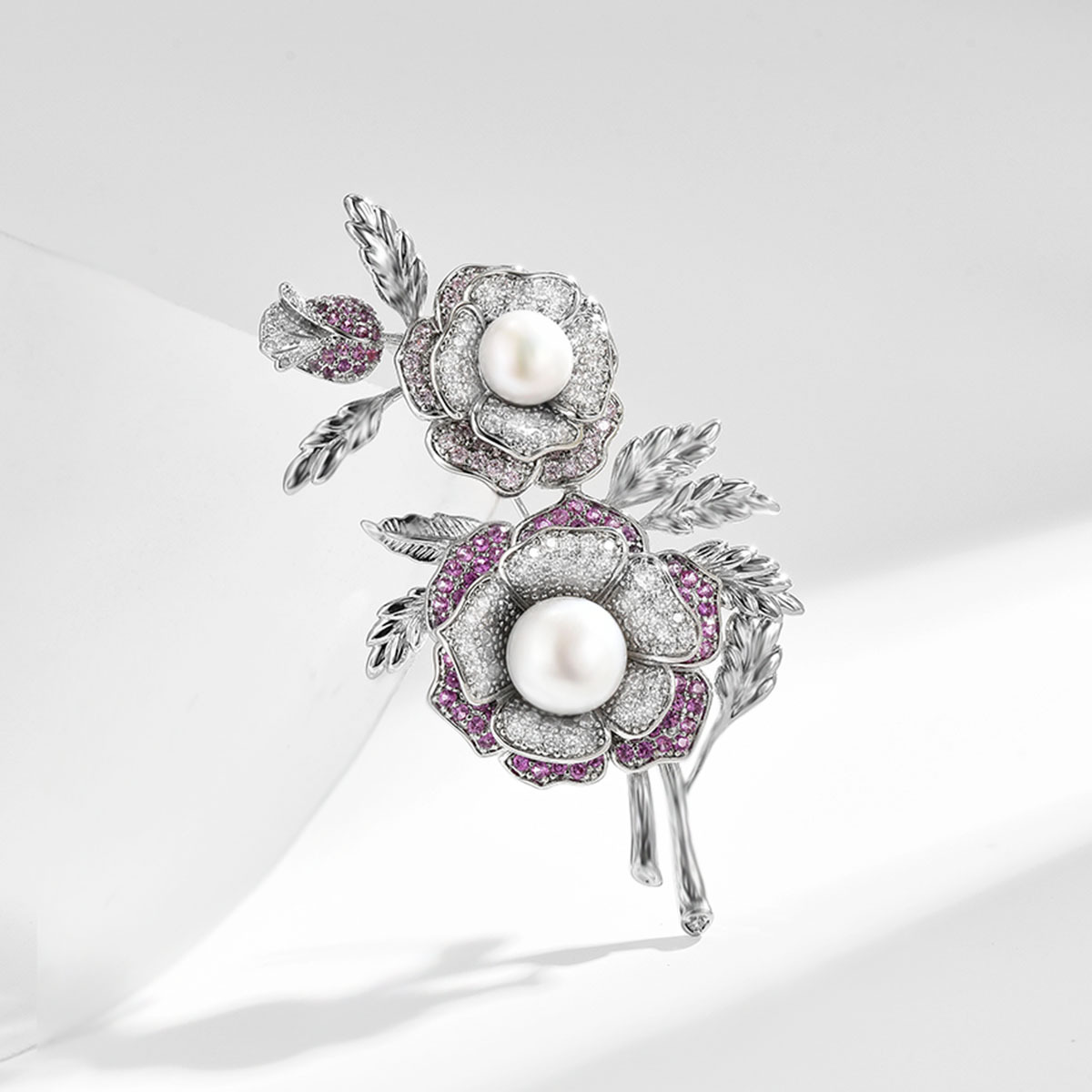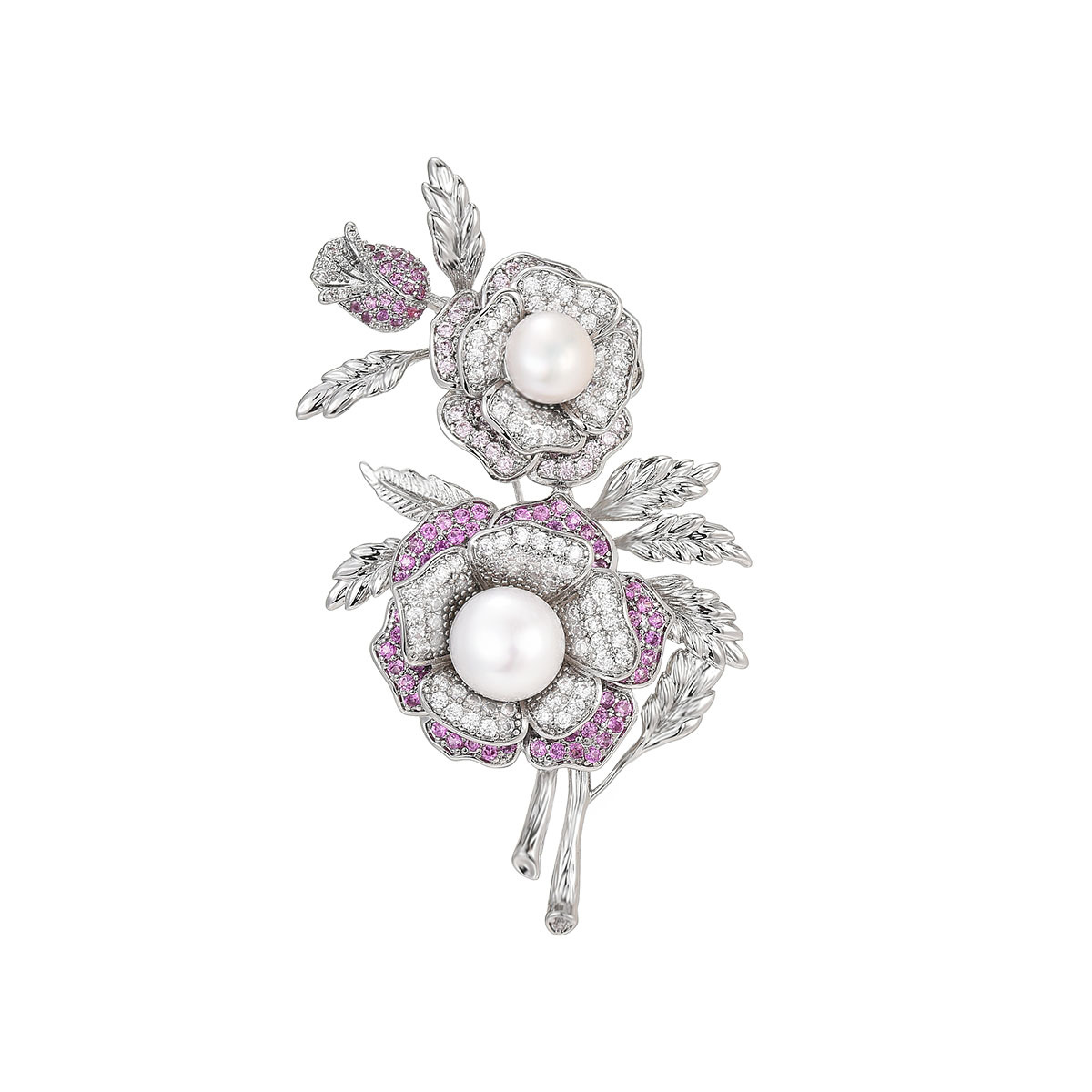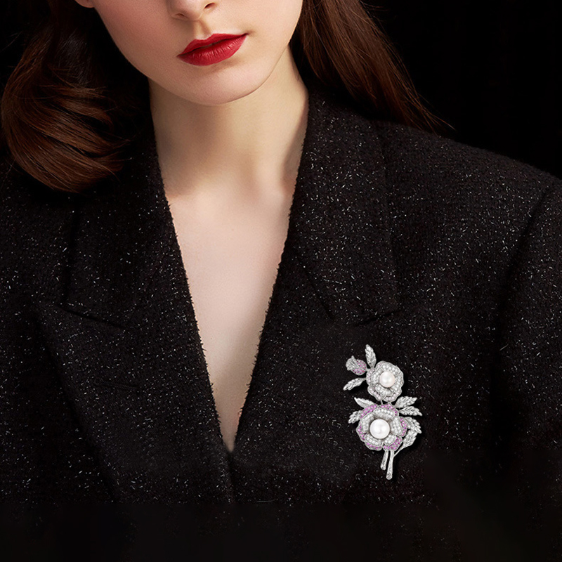 Mode broche smykker, Messing, med Ferskvandsperle, Micro Pave cubic zirconia & for kvinde, sølv, 67x37mm, Solgt af PC