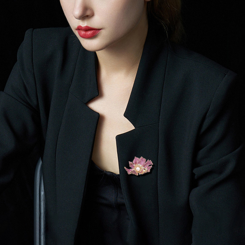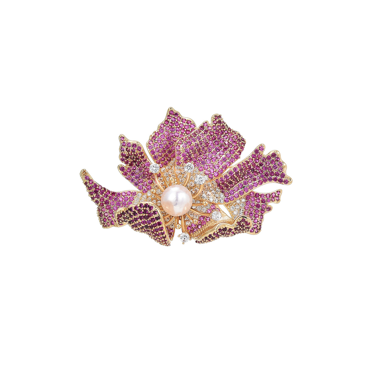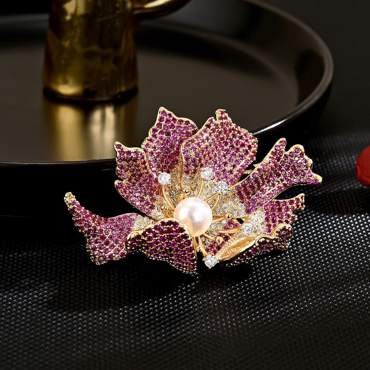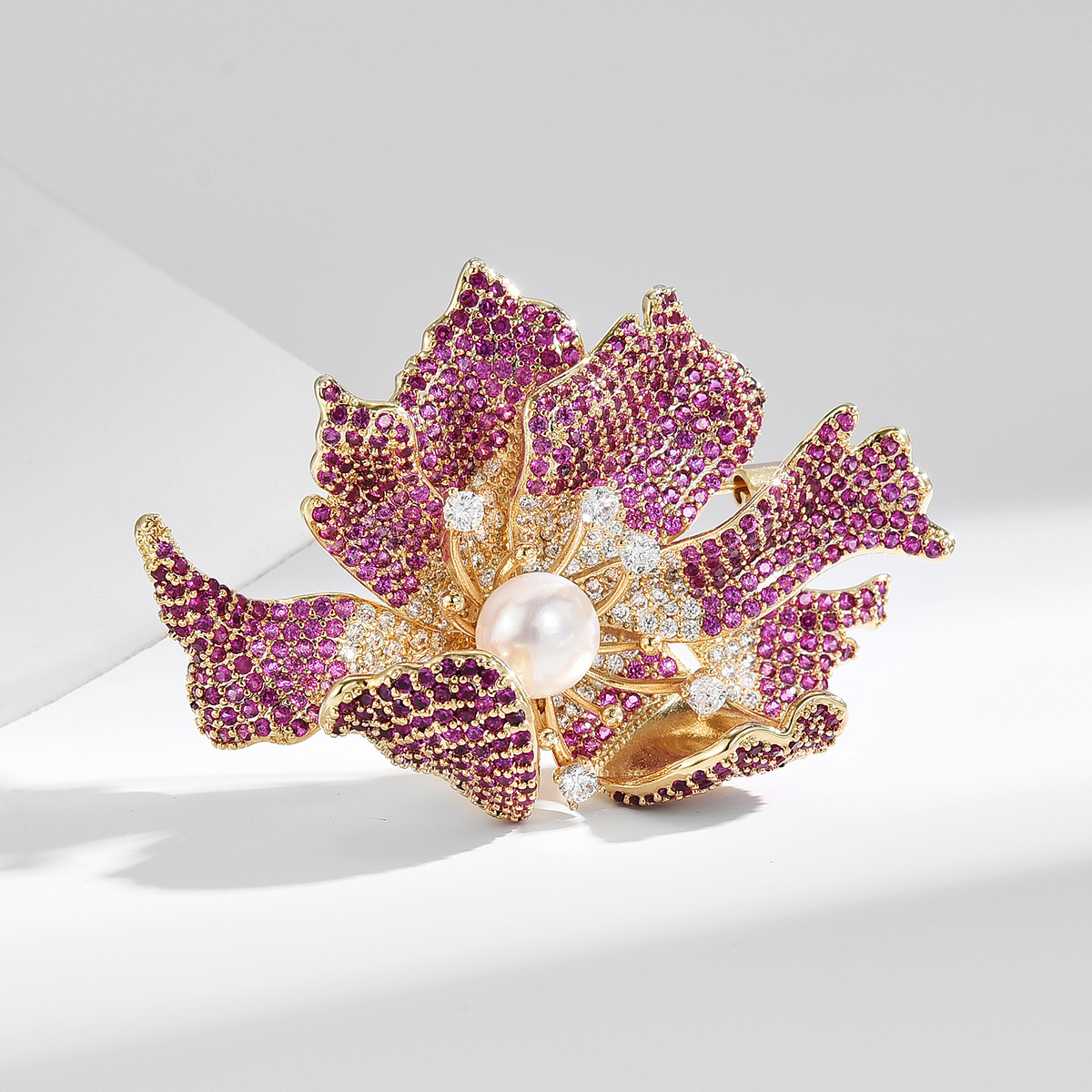 Mode broche smykker, Messing, med Ferskvandsperle, forgyldt, Micro Pave cubic zirconia & for kvinde, gylden, 36x54mm, Solgt af PC