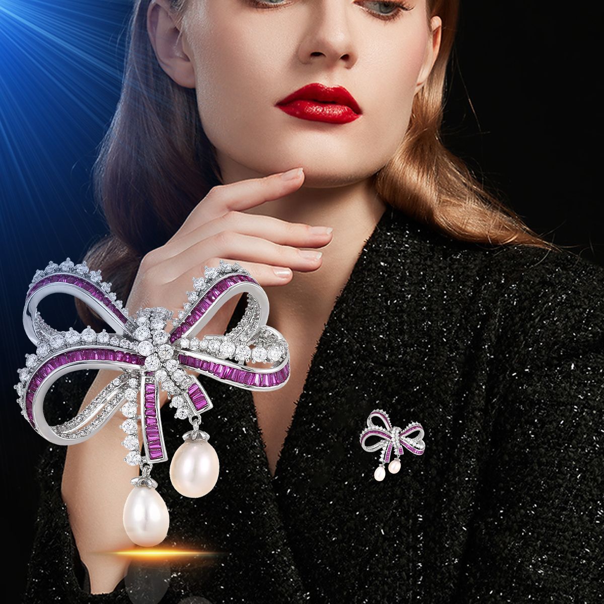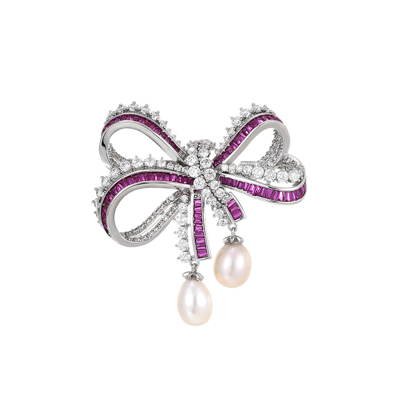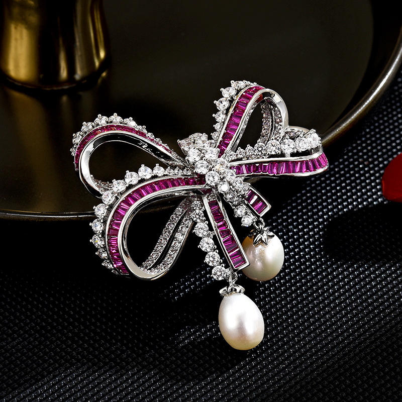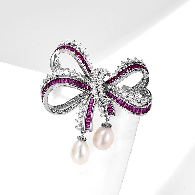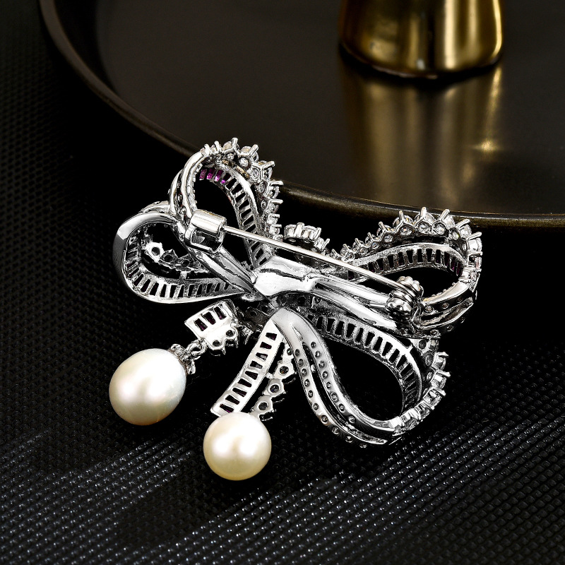 Mode broche smykker, Messing, med Ferskvandsperle, forgyldt, Micro Pave cubic zirconia & for kvinde, sølv, 47x45mm, Solgt af PC