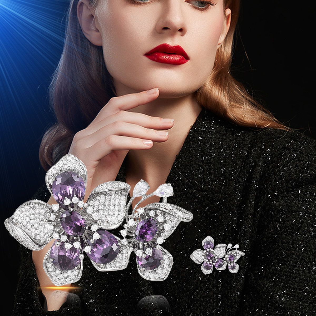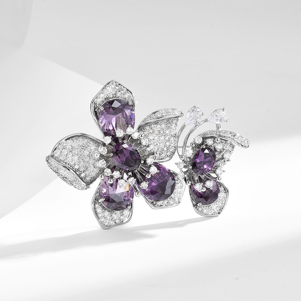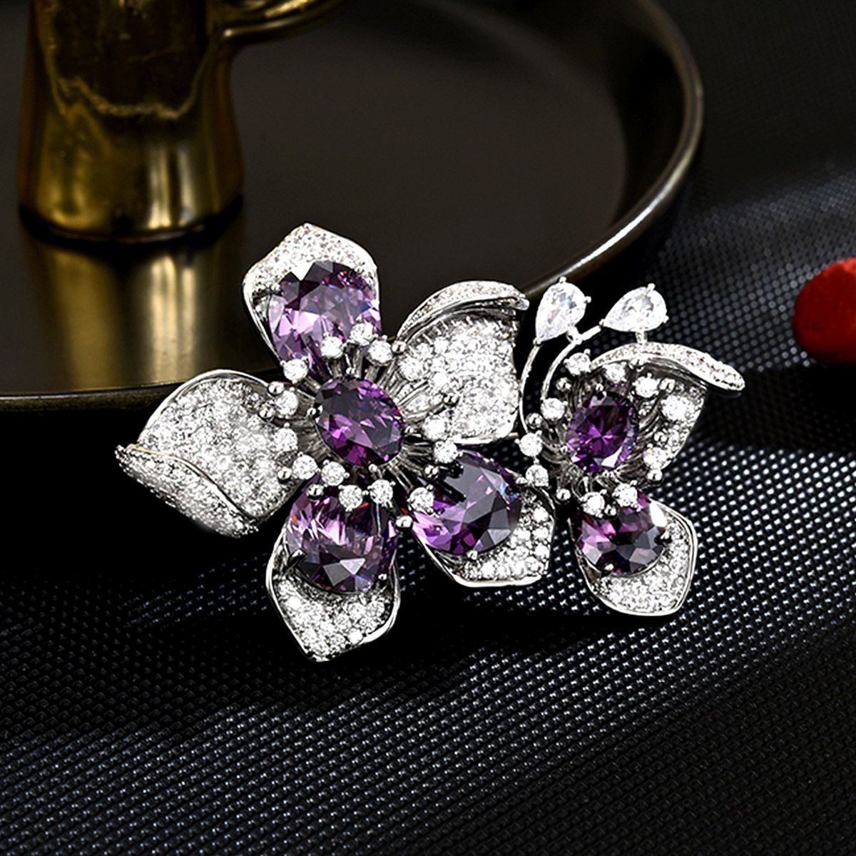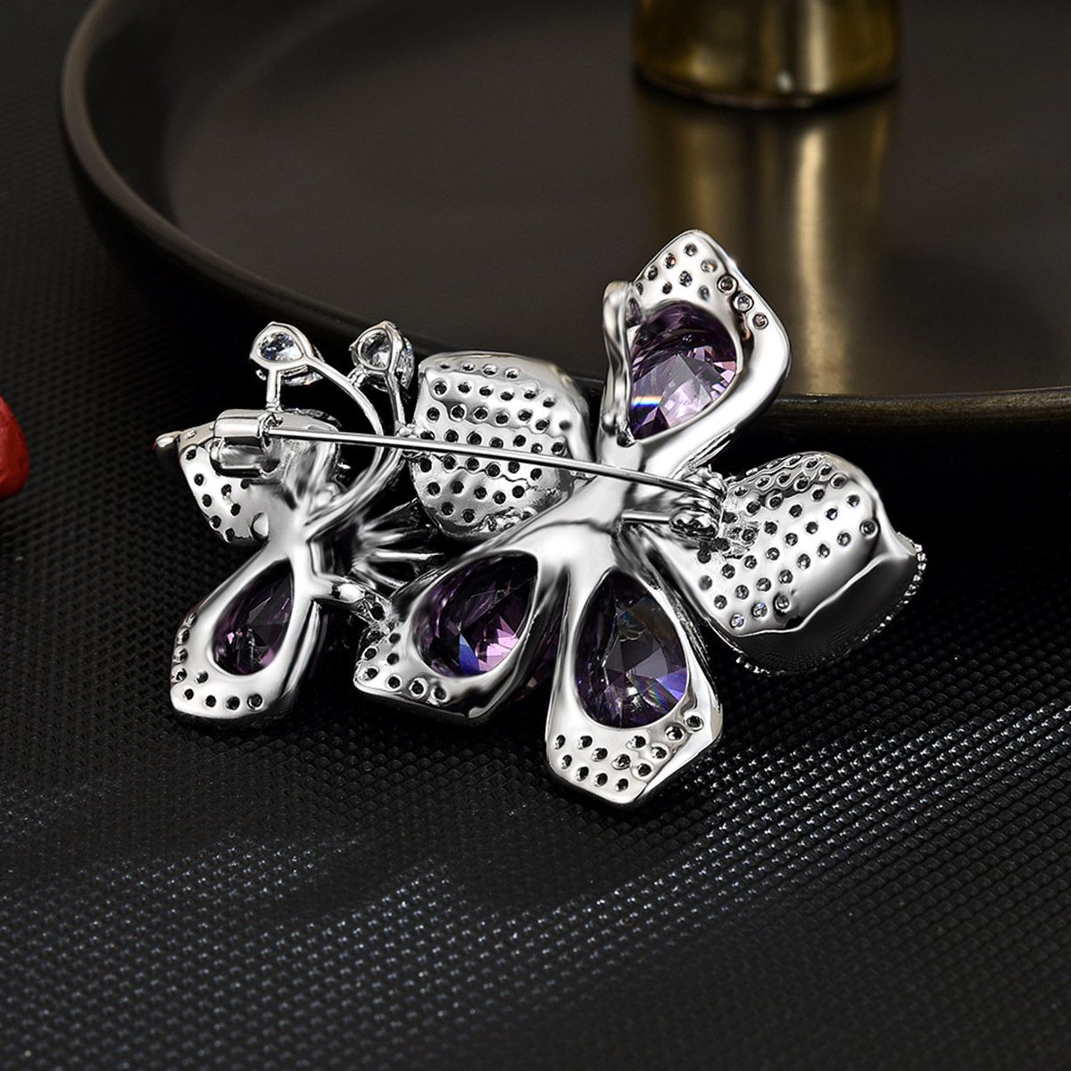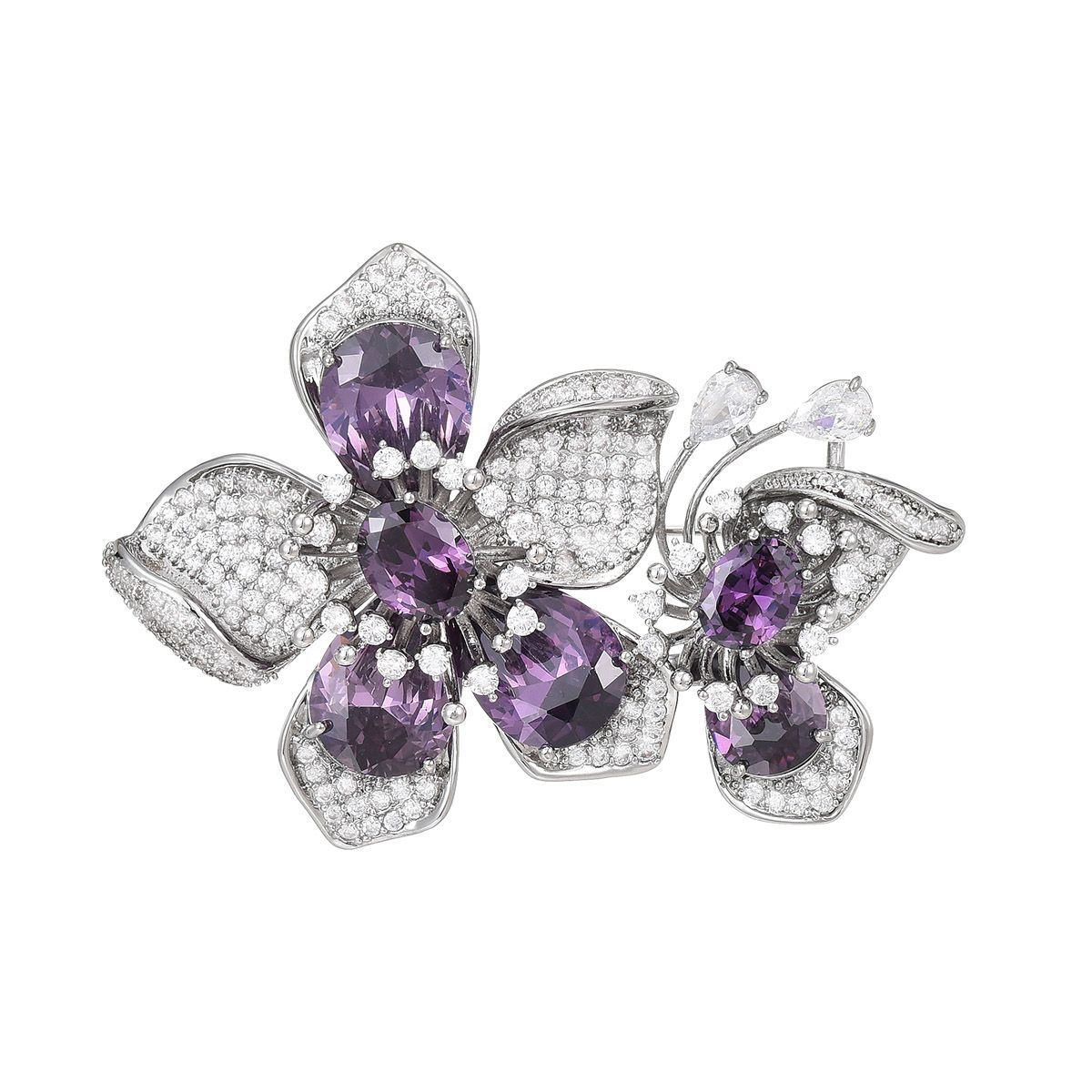 Mode broche smykker, Messing, forgyldt, Micro Pave cubic zirconia & for kvinde, sølv, 39x55mm, Solgt af PC