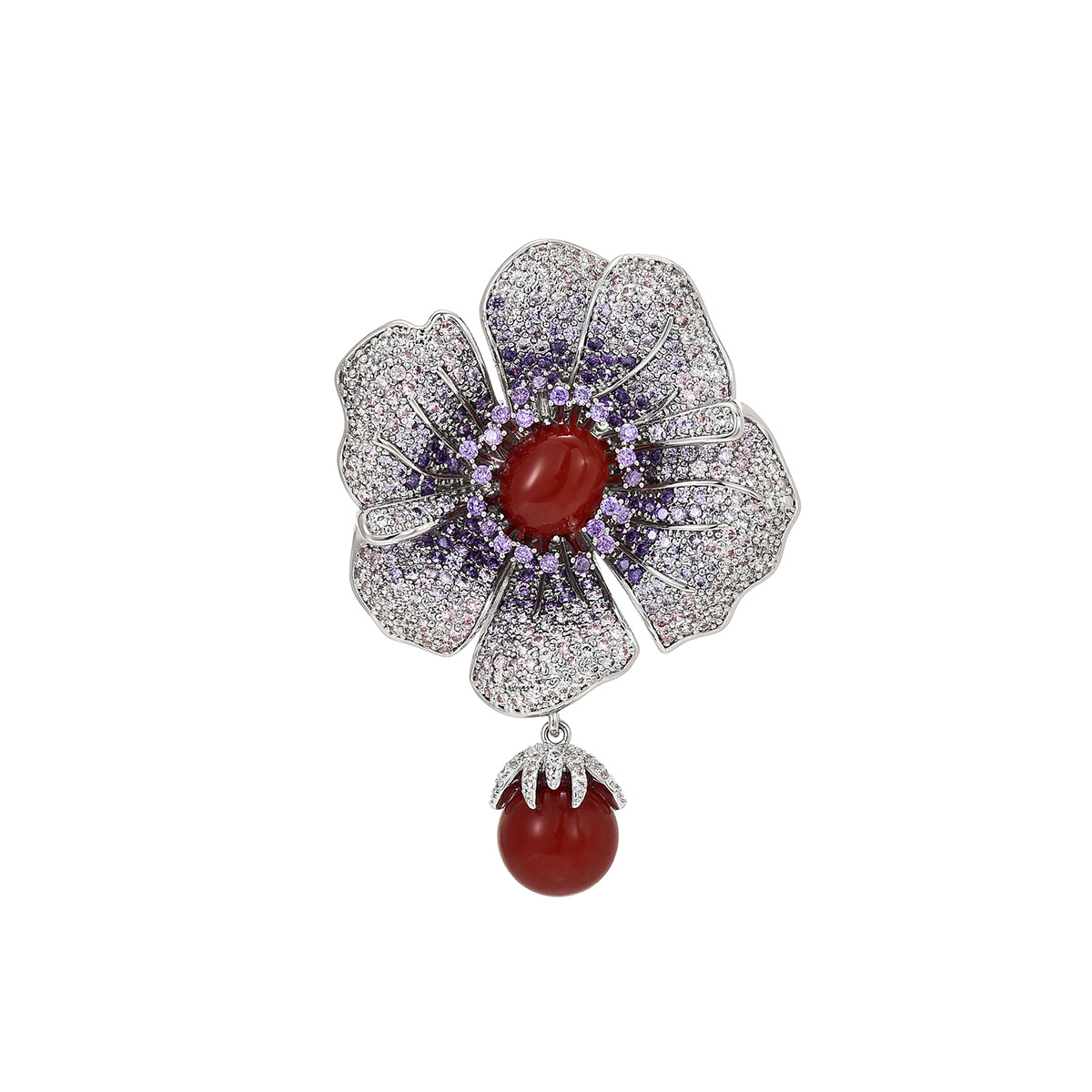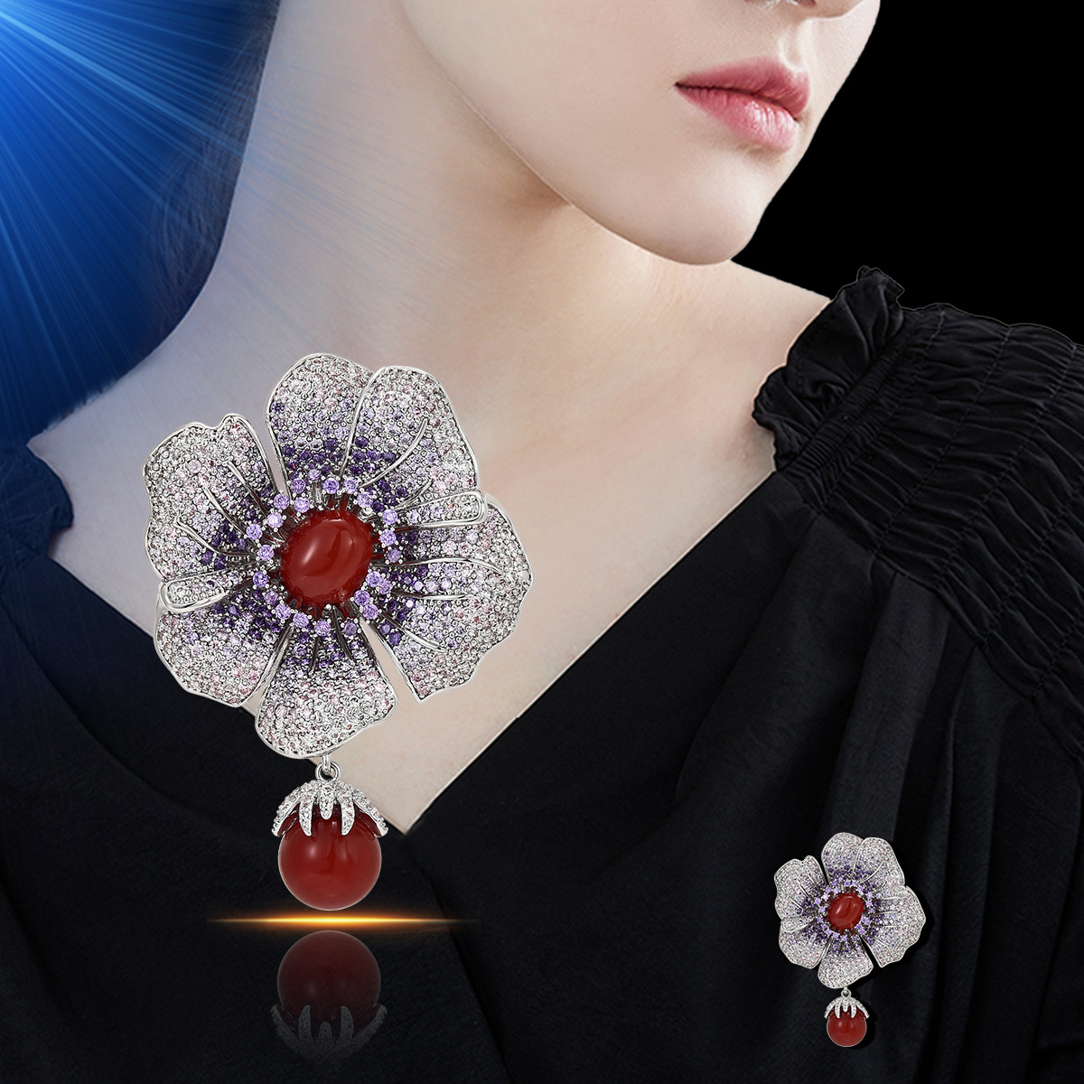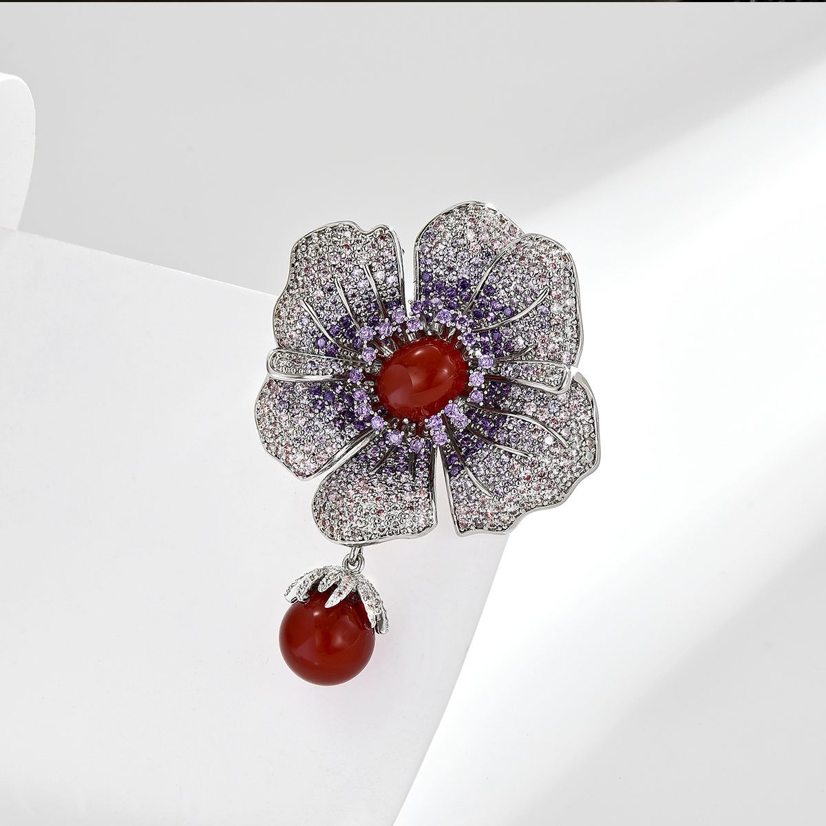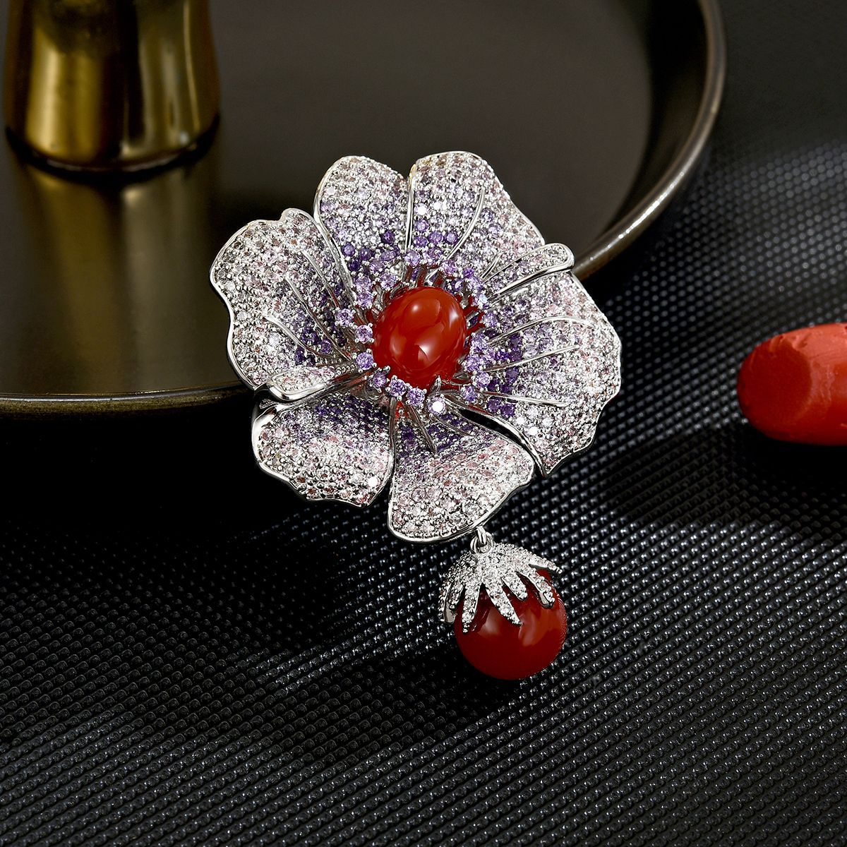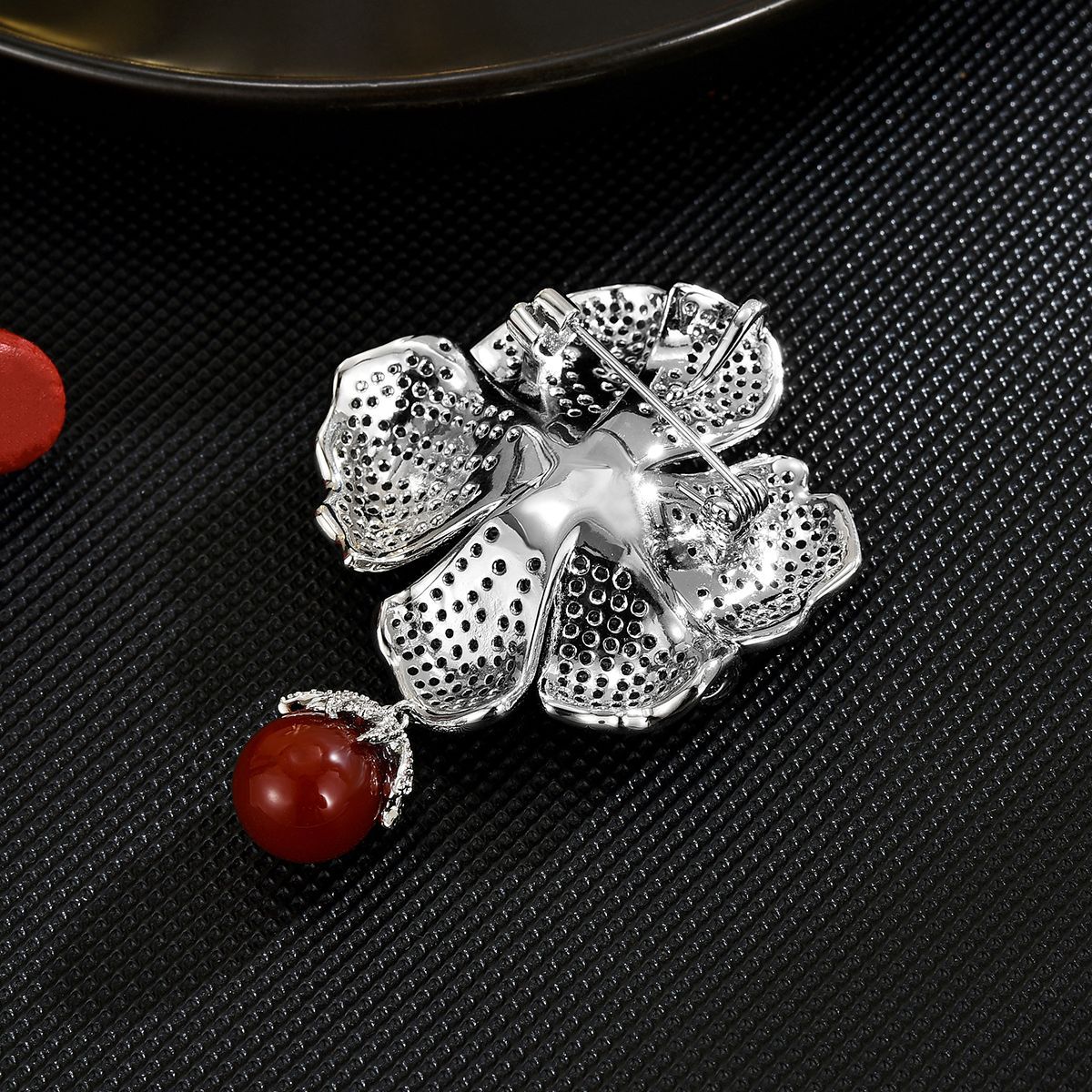 Mode broche smykker, Messing, med Carnelian, forgyldt, Micro Pave cubic zirconia & for kvinde, sølv, 55x38mm, Solgt af PC