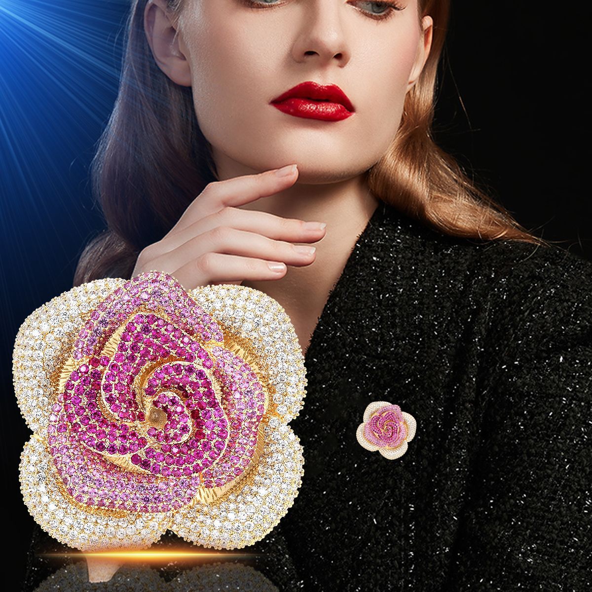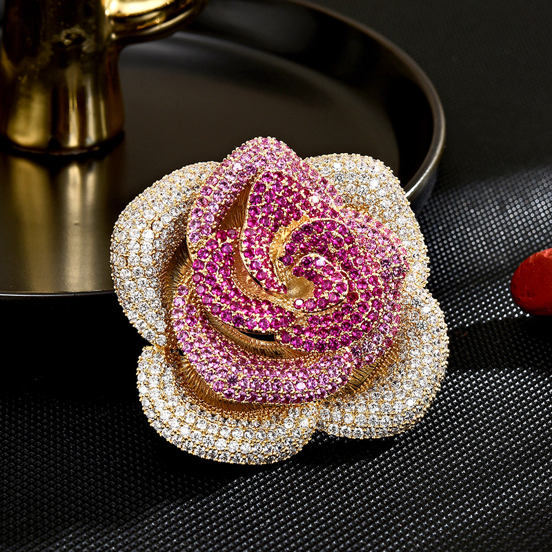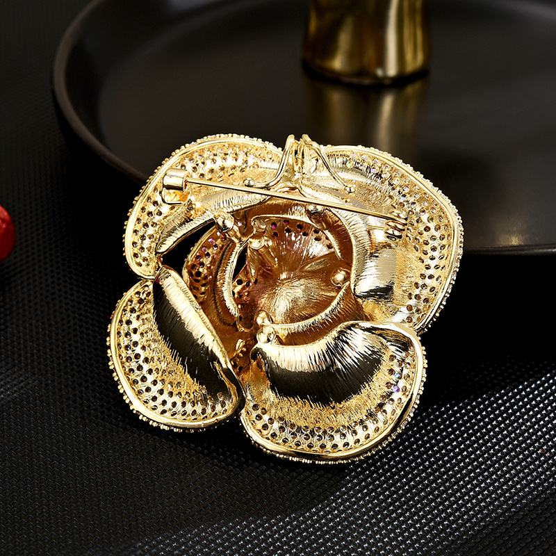 Mode broche smykker, Messing, forgyldt, Micro Pave cubic zirconia & for kvinde, gylden, 48x50mm, Solgt af PC