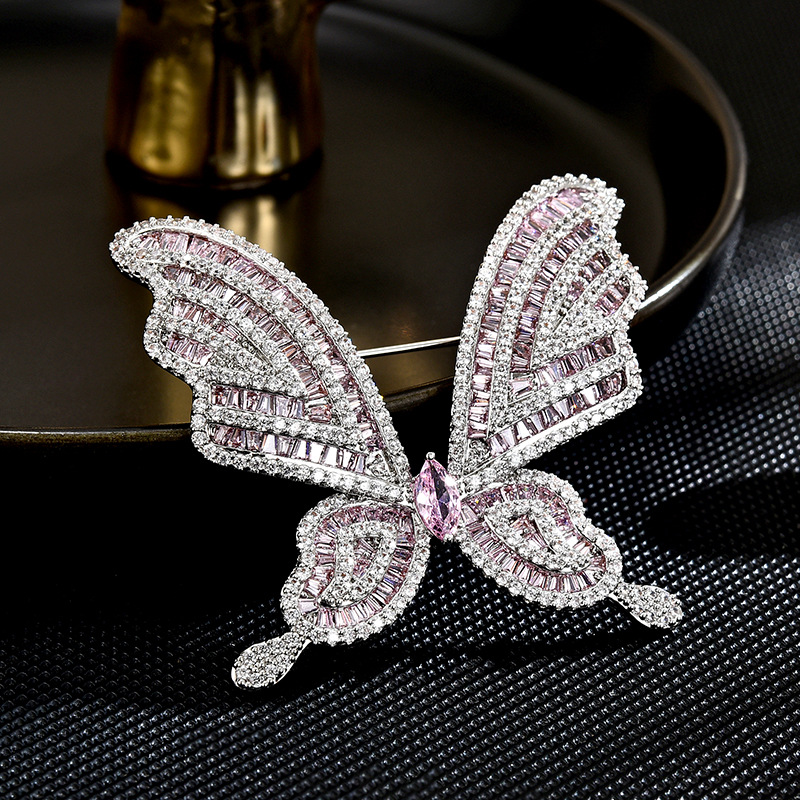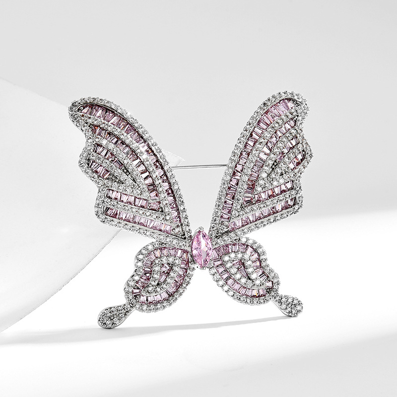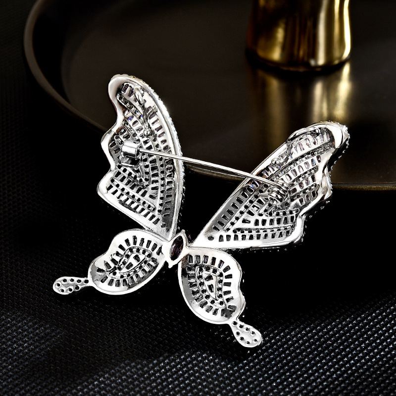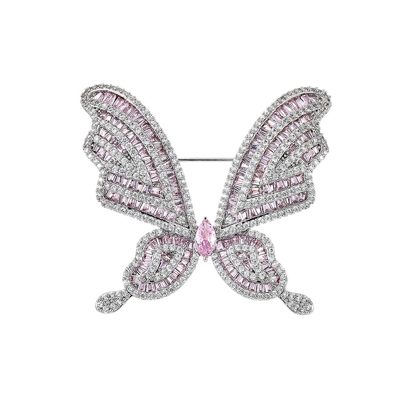 Mode broche smykker, Messing, forgyldt, Micro Pave cubic zirconia & for kvinde, sølv, 43x47mm, Solgt af PC