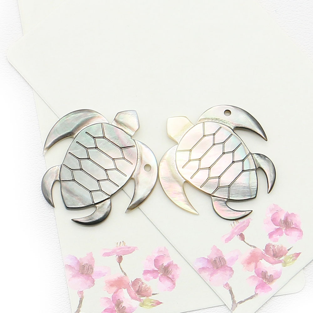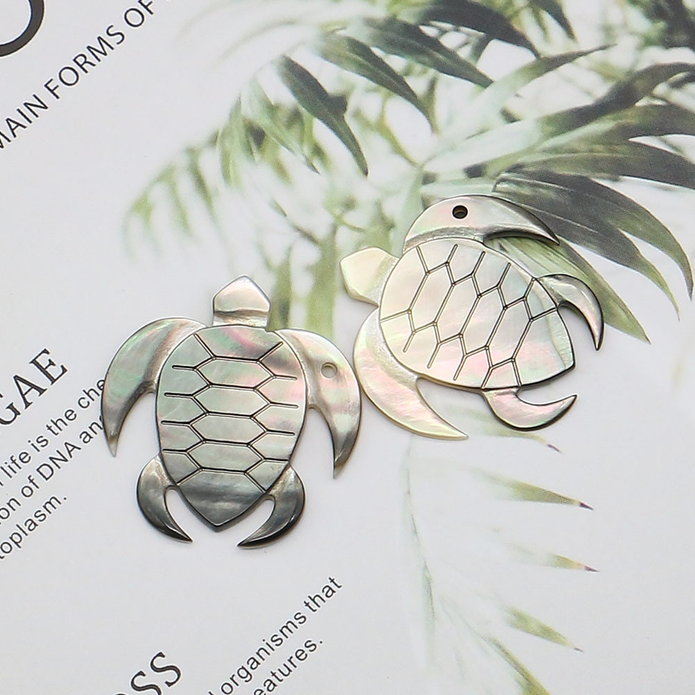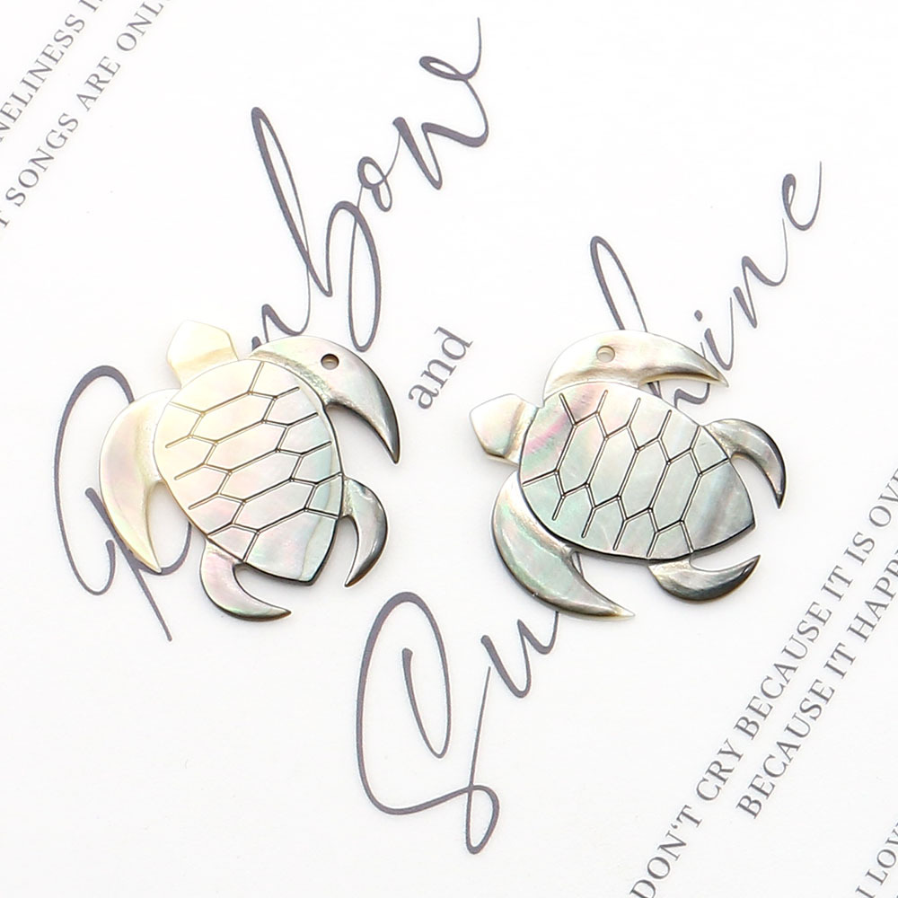 Natural Black Shell Pendler, Sort + læbe + skal, Turtle, du kan DIY, blandede farver, 29x31mm, Solgt af PC