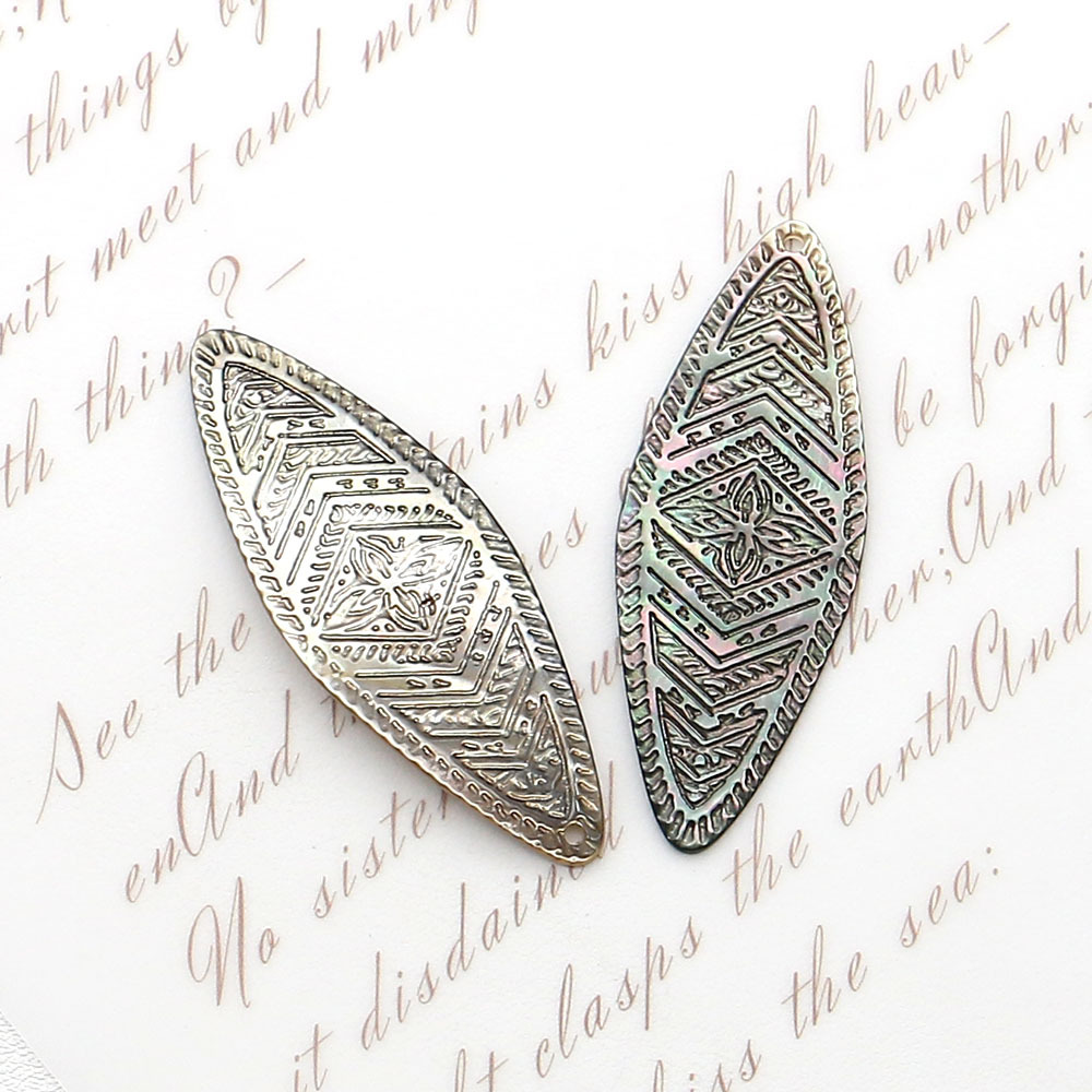 Natural Black Shell Pendler, Rhombus, du kan DIY, blandede farver, 20x54mm, Solgt af PC