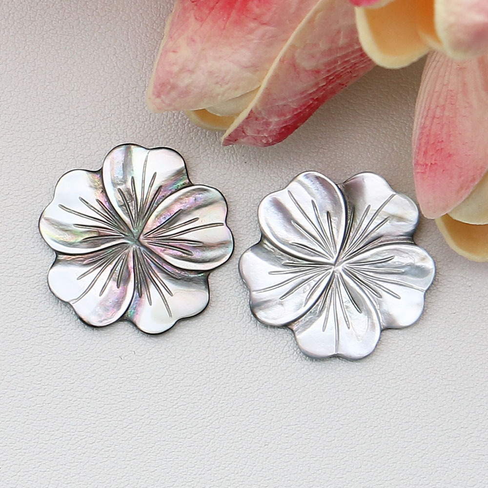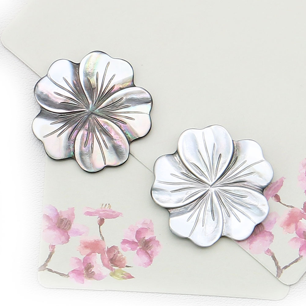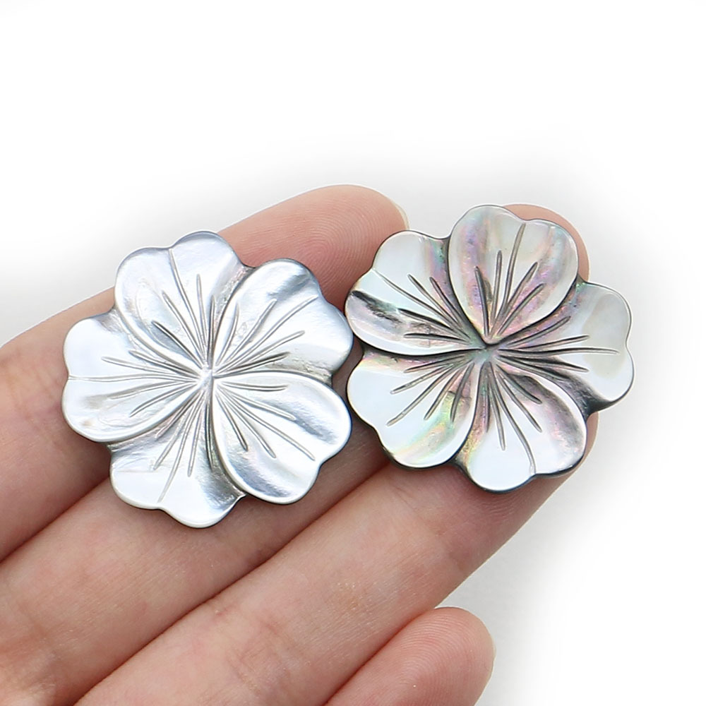 Natural Black Shell Pendler, Sort + læbe + skal, Flower, du kan DIY, blandede farver, 22x32mm, Solgt af PC
