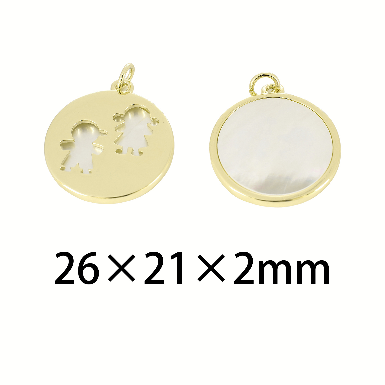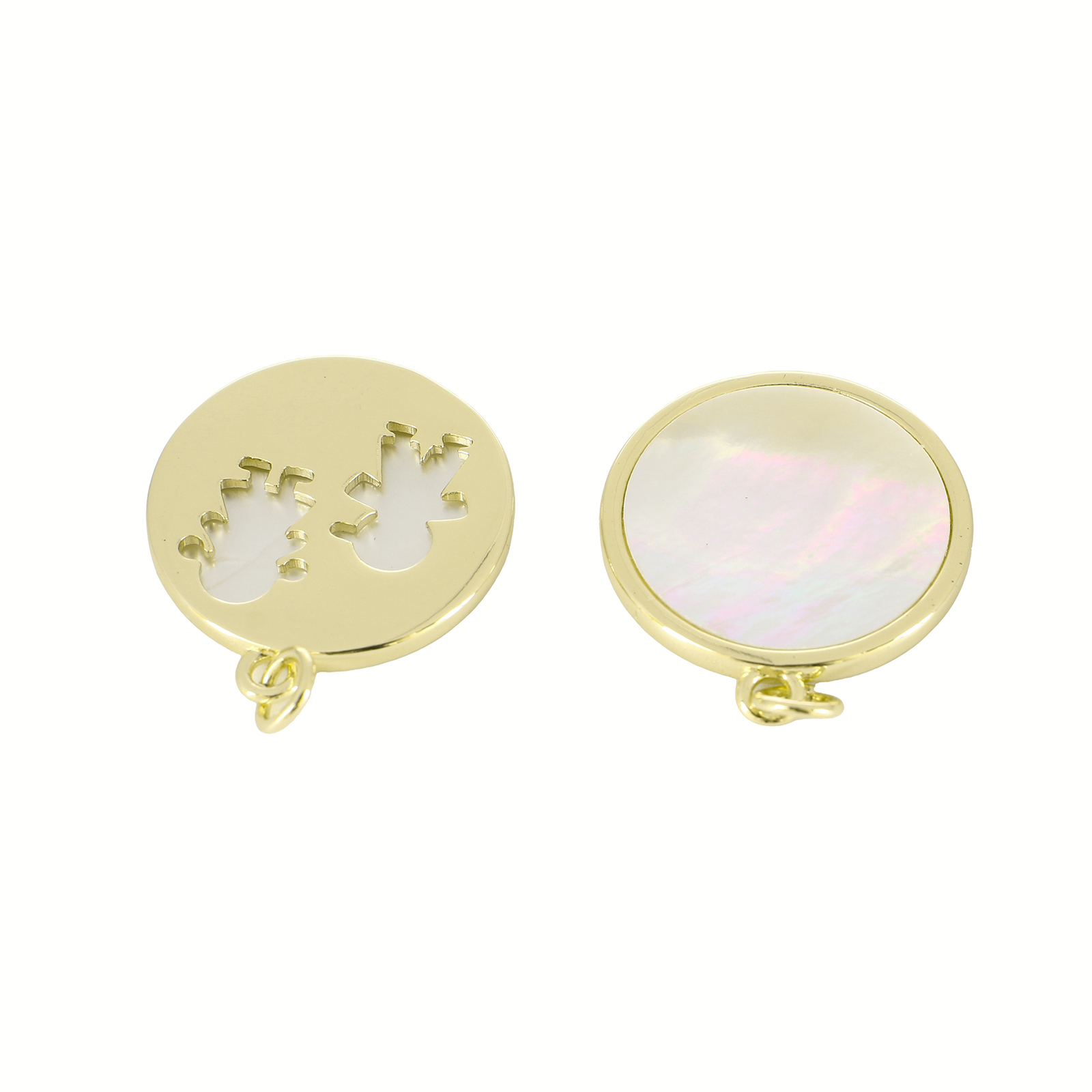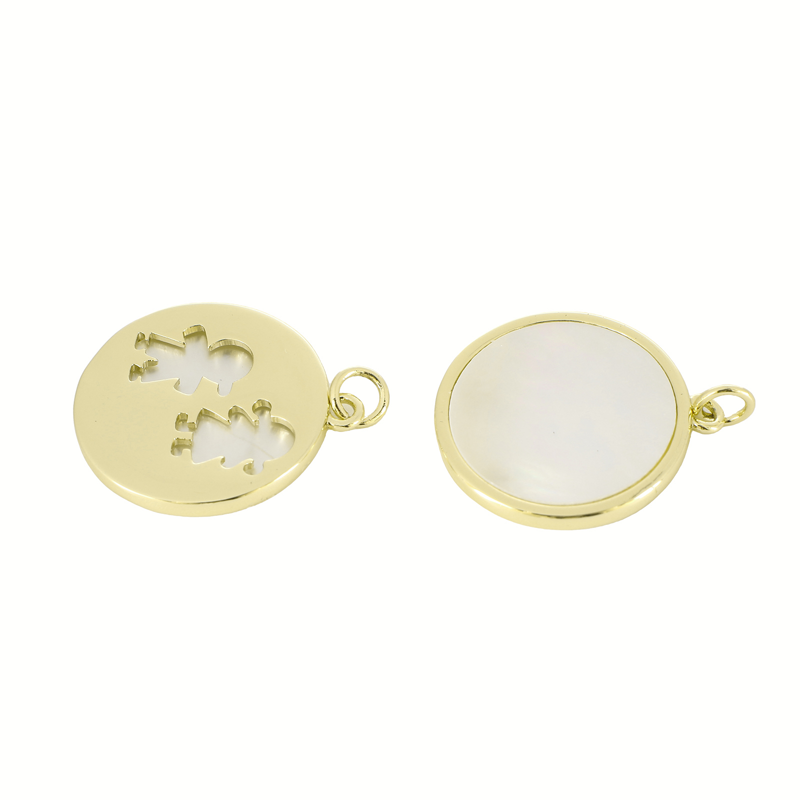 Natural White Shell Pendler, Messing, med White Shell, Flad Rund, guldfarve belagt, du kan DIY & hule, 26x21x2mm, Solgt af PC