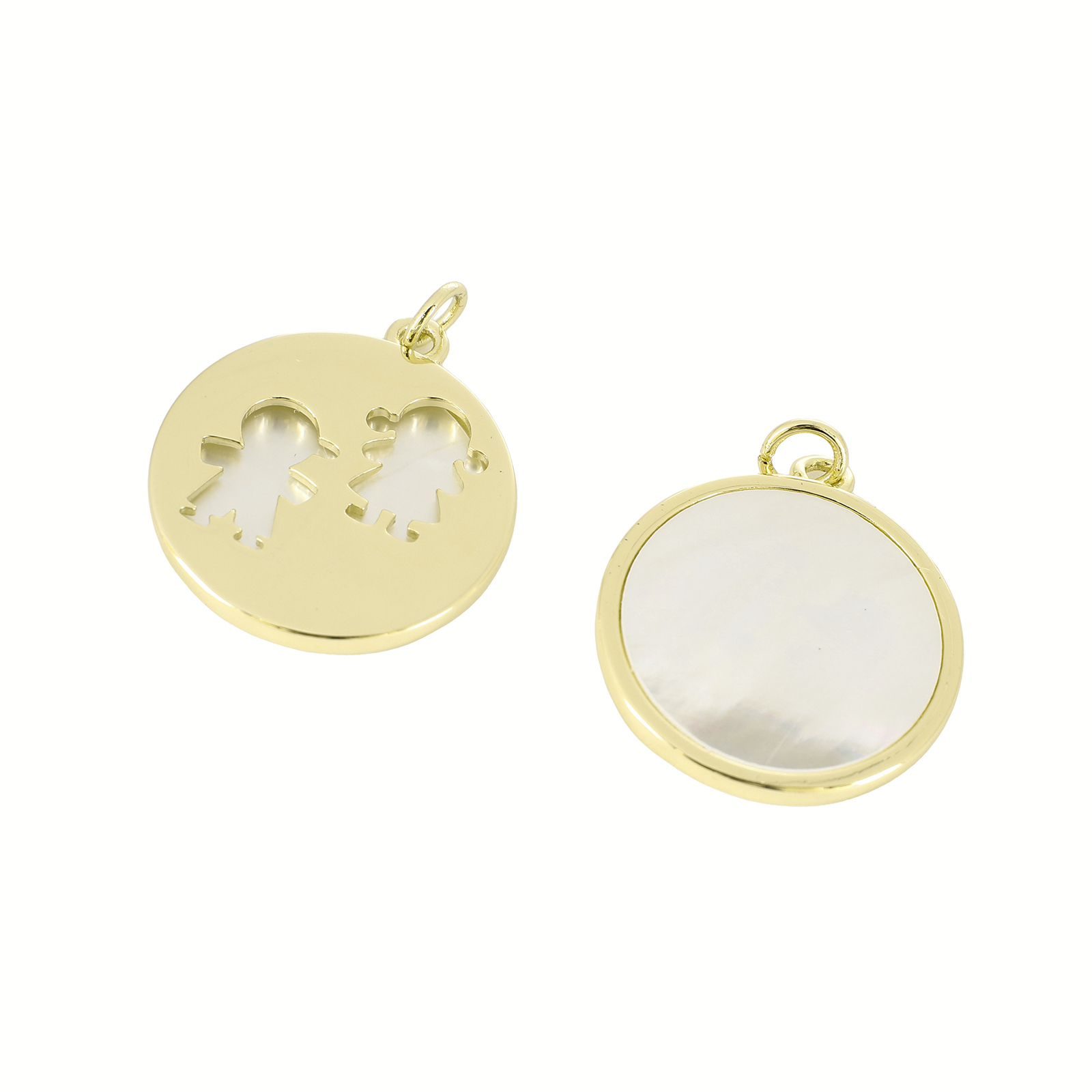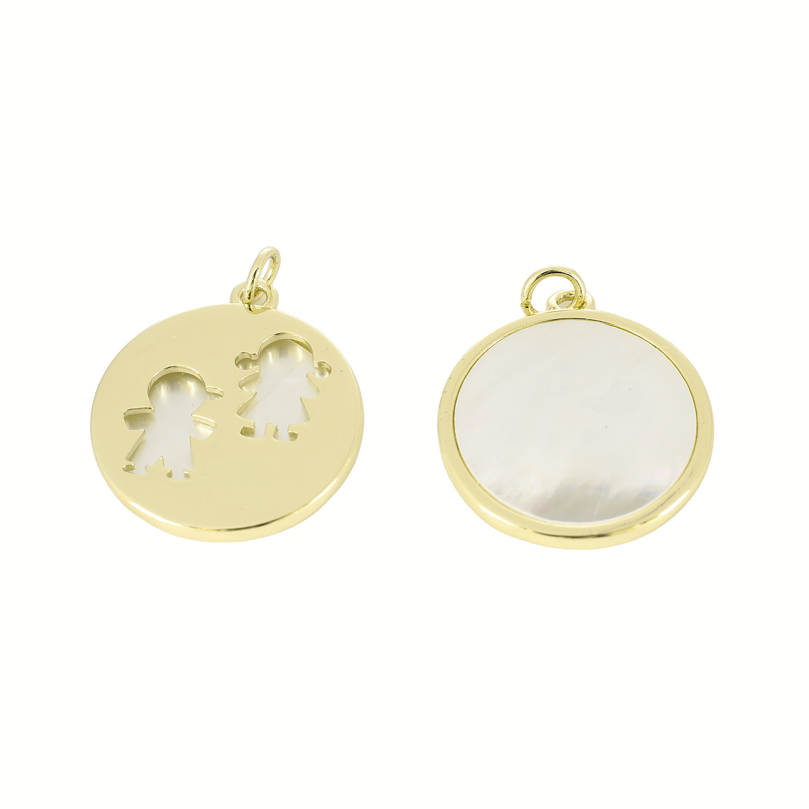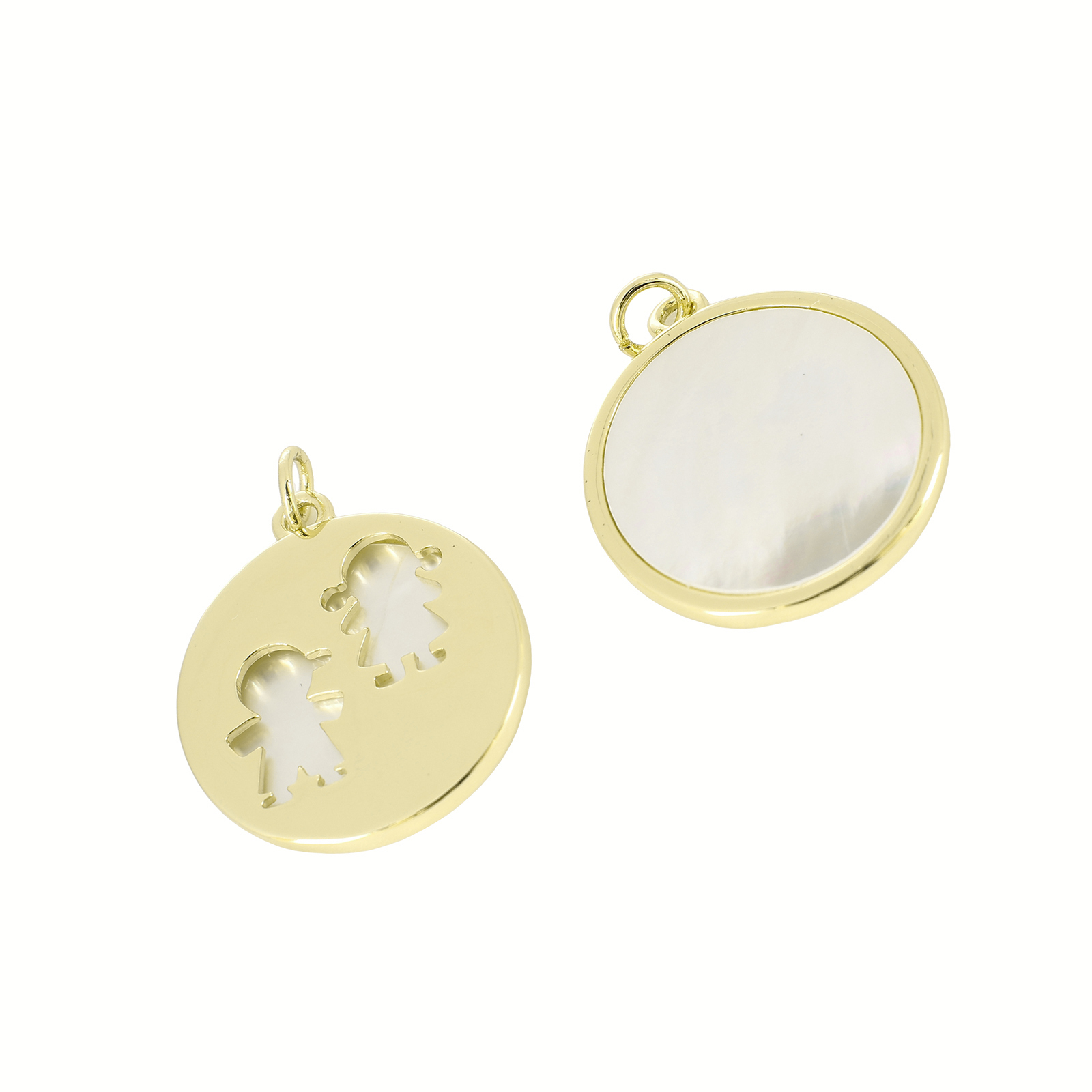 Natural White Shell Pendler, Messing, med White Shell, Flad Rund, guldfarve belagt, du kan DIY & hule, 26x21x2mm, Solgt af PC