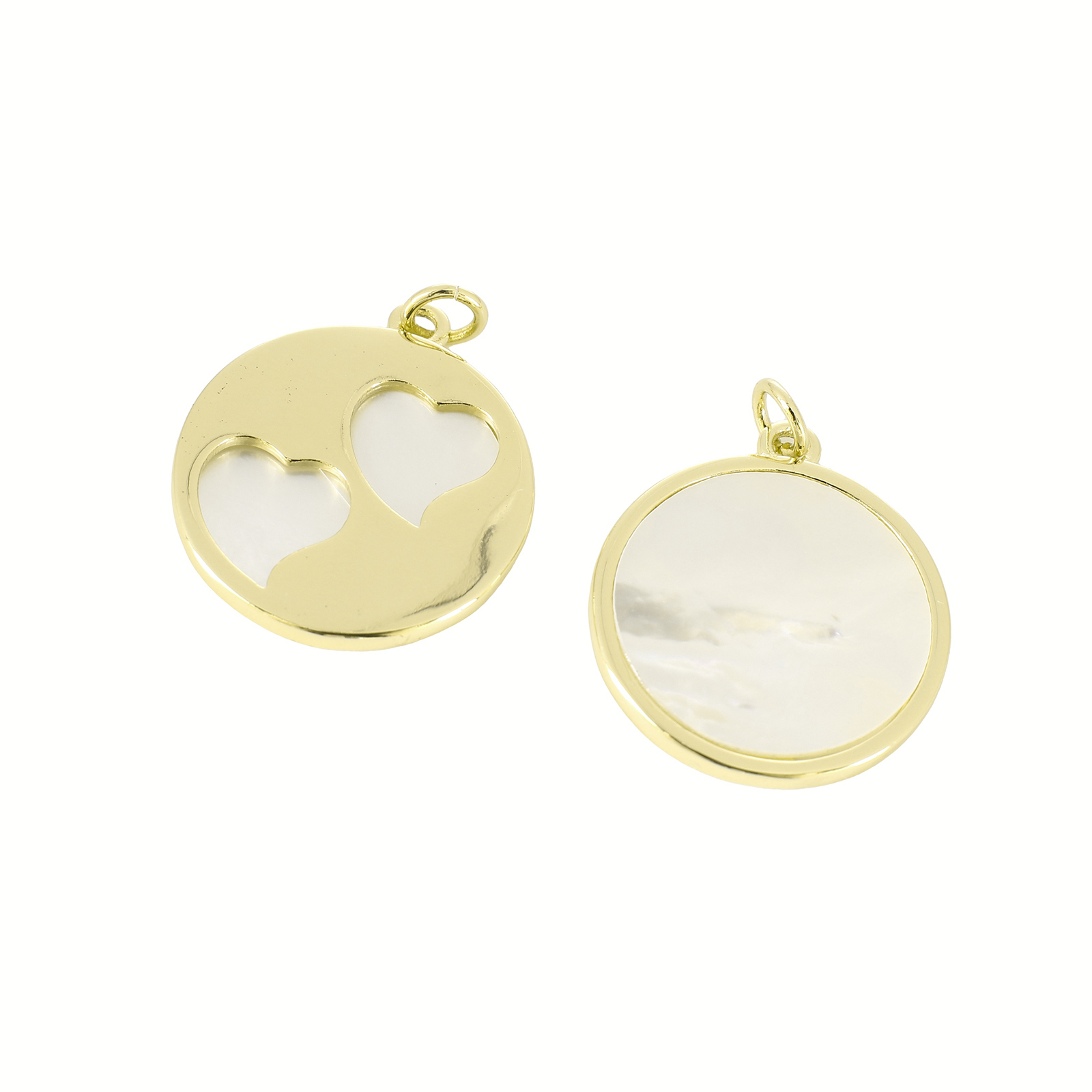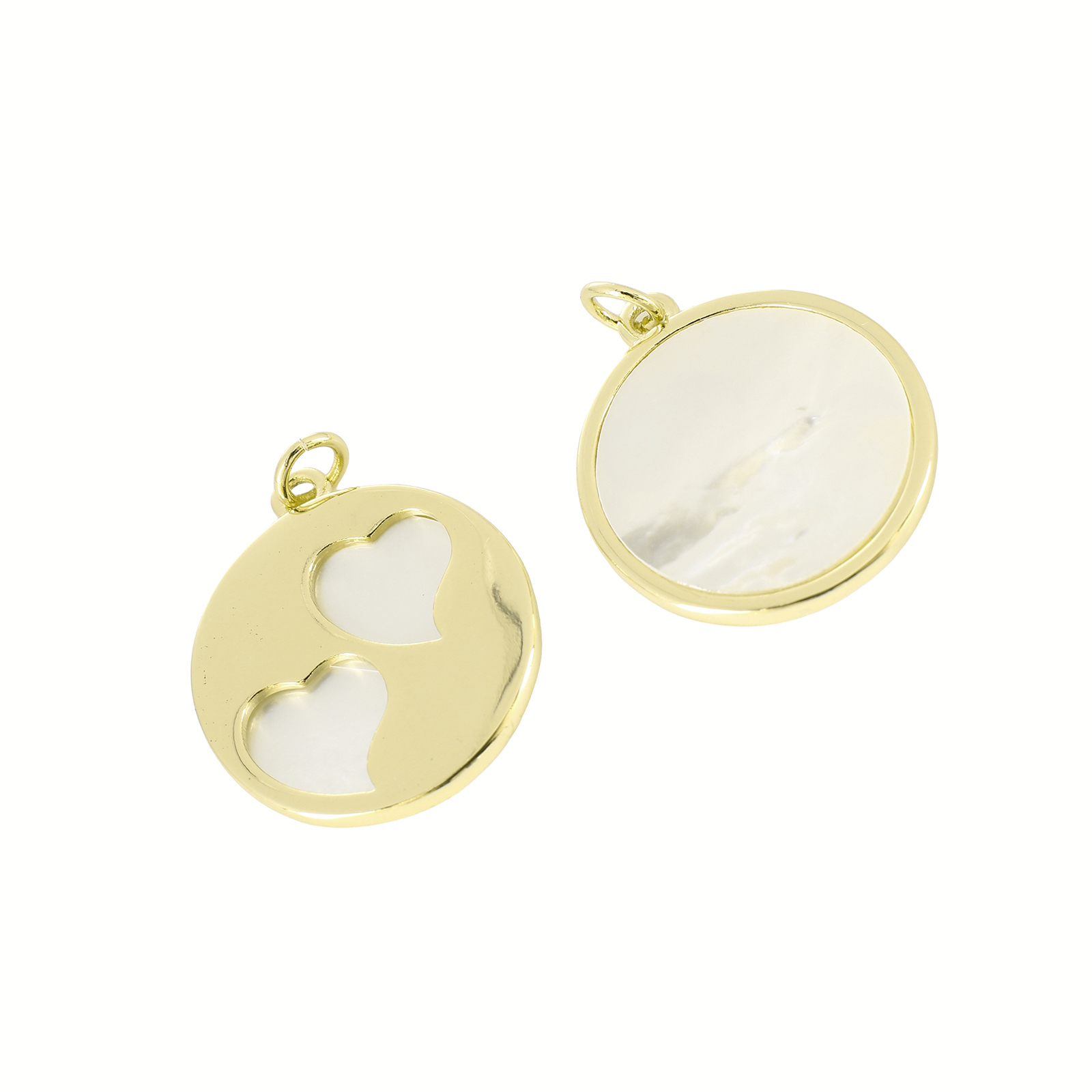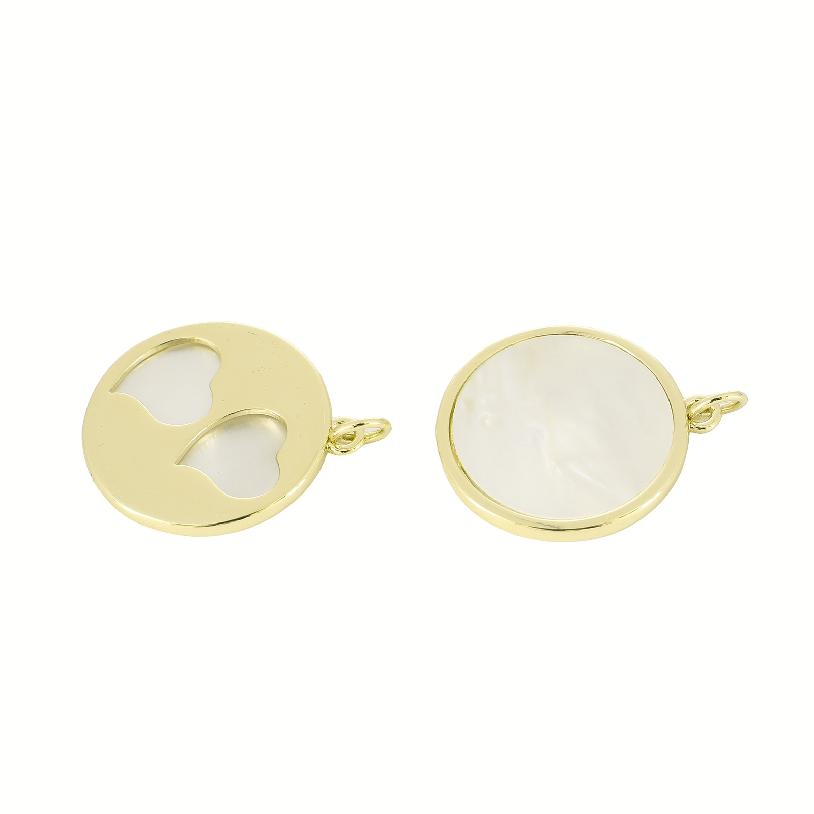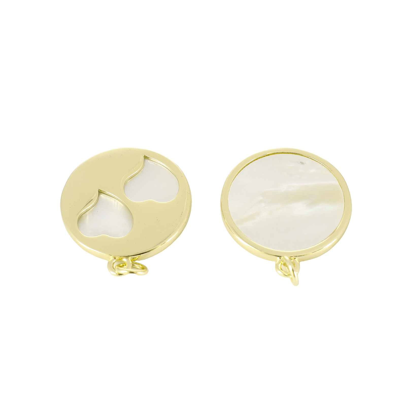Natural White Shell Pendler, Messing, med White Shell, Flad Rund, guldfarve belagt, du kan DIY & hule, 26x21x2mm, Solgt af PC