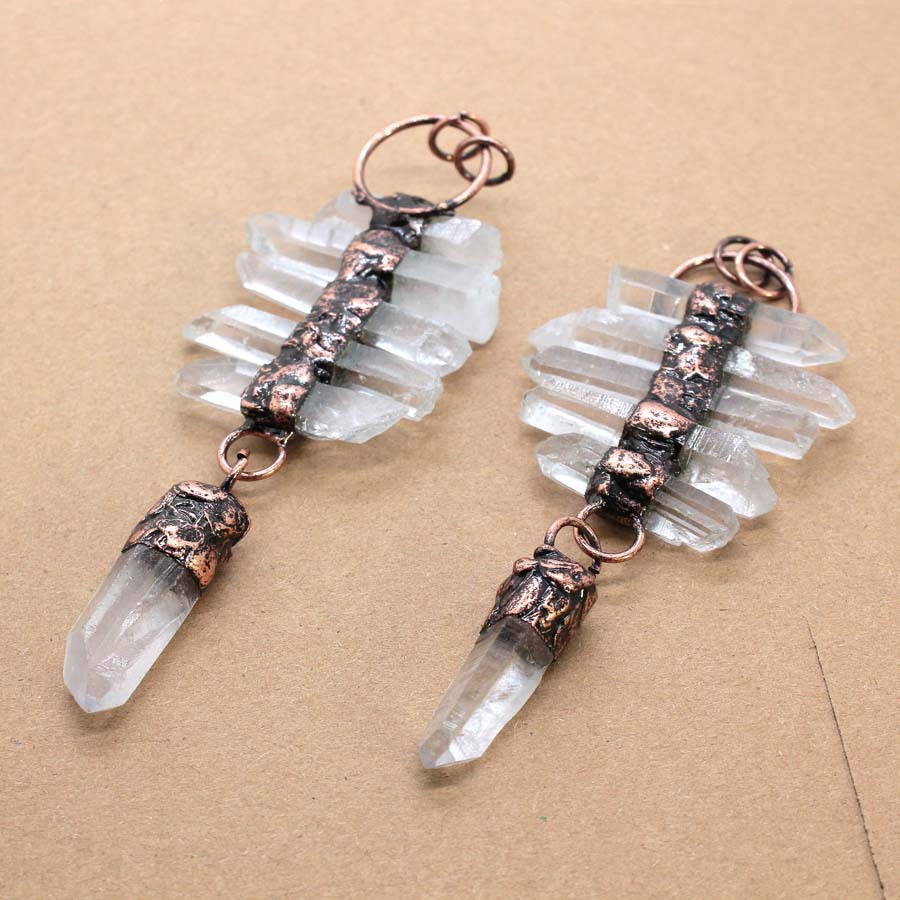 Naturlig Quartz Vedhæng, Clear Quartz, med Zinc Alloy, forgyldt, du kan DIY & hule, 100x45mm, Solgt af PC