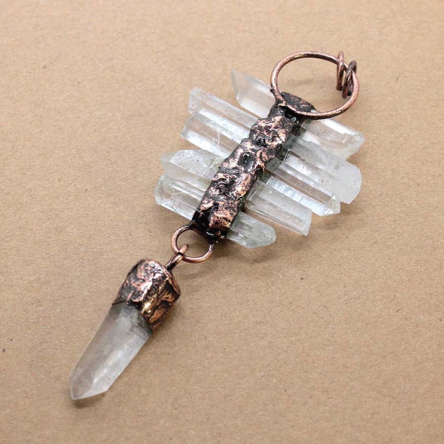 Naturlig Quartz Vedhæng, Clear Quartz, med PU & Rainbow Quartz, Uregelmæssig, du kan DIY, flerfarvede, Solgt af PC