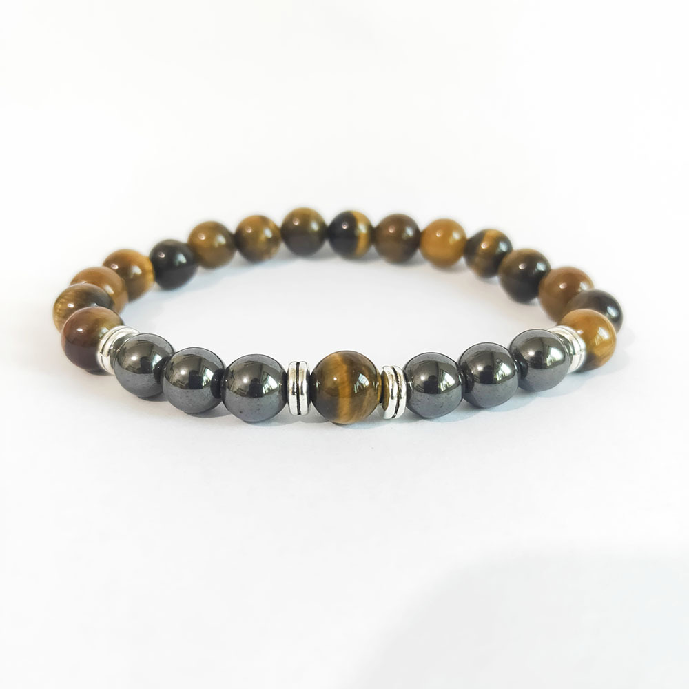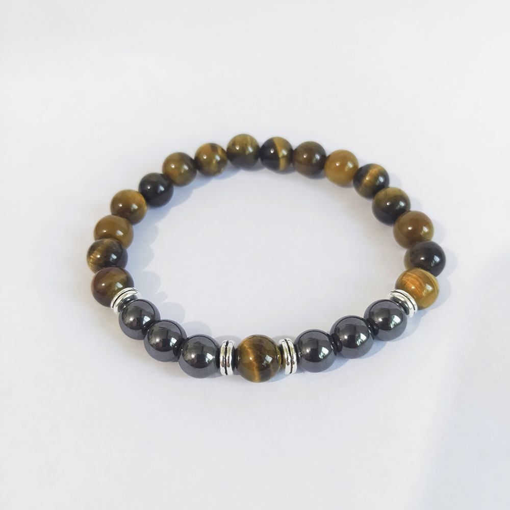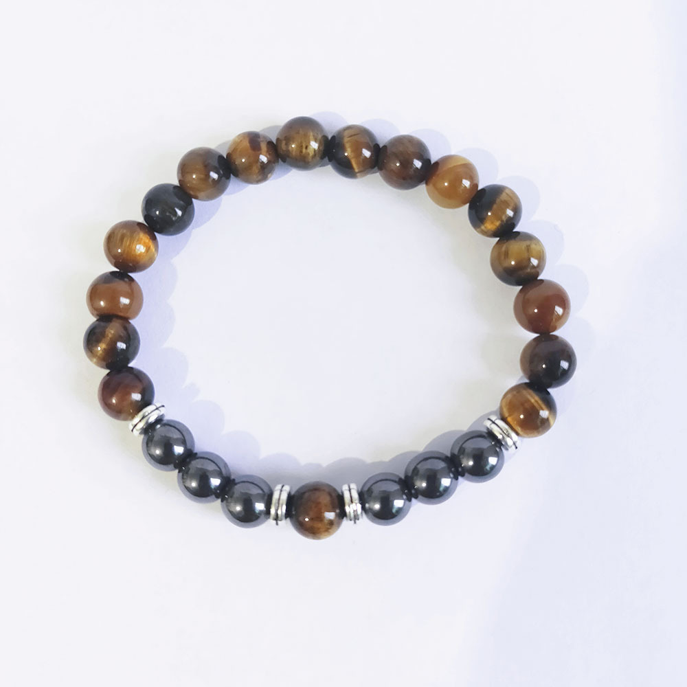 Naturlige Tiger Eye Armbånd, med Ikke-magnetisk hæmatit & Zinc Alloy, mode smykker, blandede farver, 8mm, Længde 18 cm, Solgt af PC
