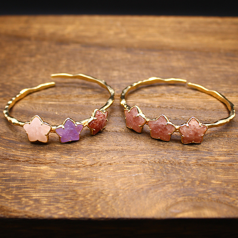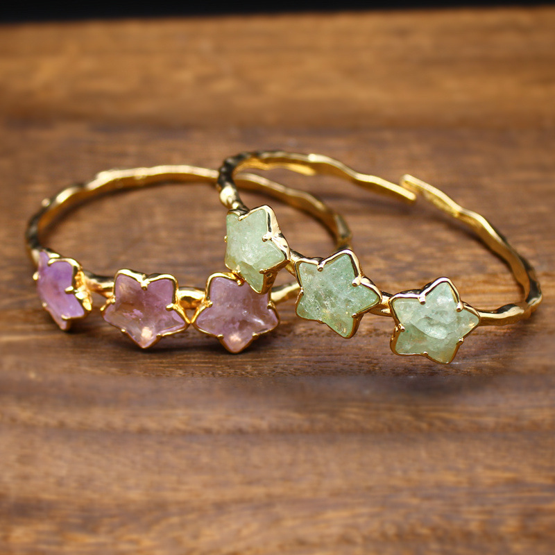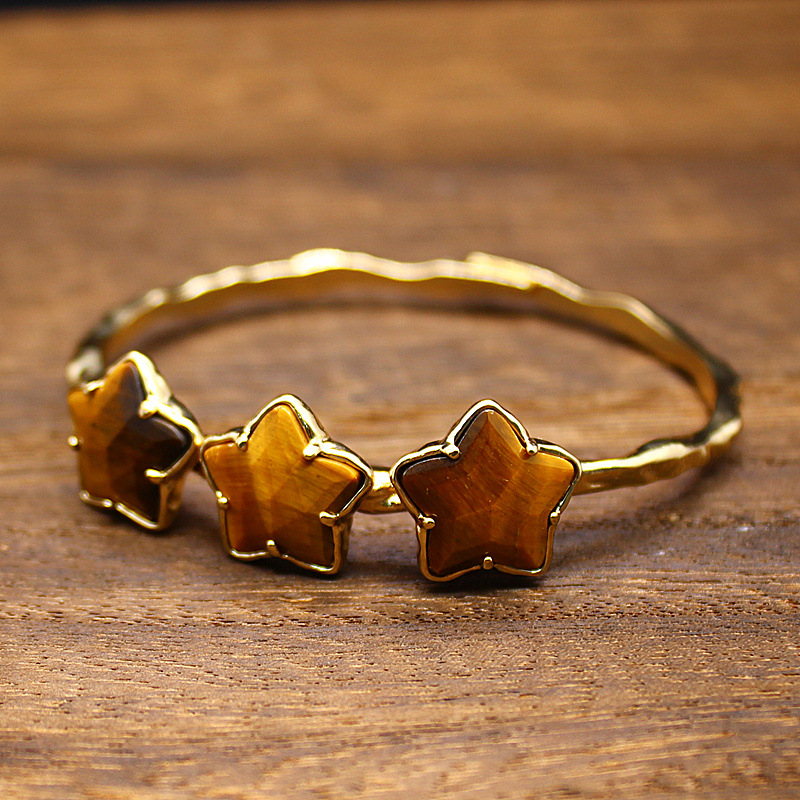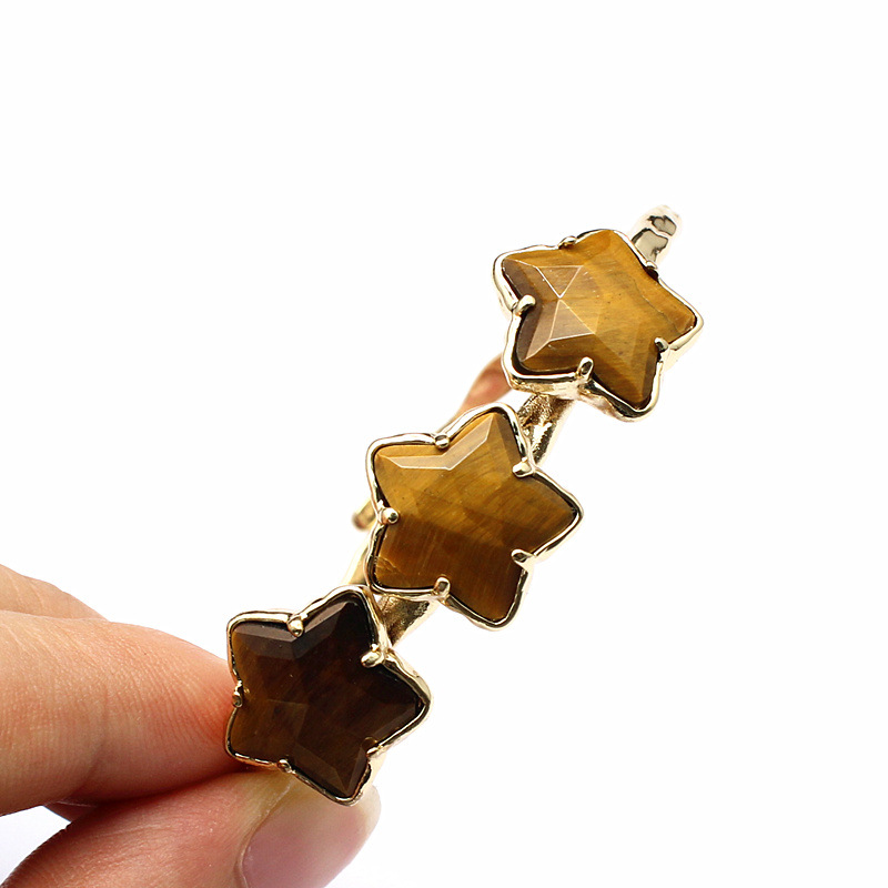 Natursten Cuff Bangle, med Zinc Alloy, Stjerne, guldfarve belagt, forskellige materialer til valg & for kvinde, flere farver til valg, 16x16mm, Længde 67 mm, Solgt af PC