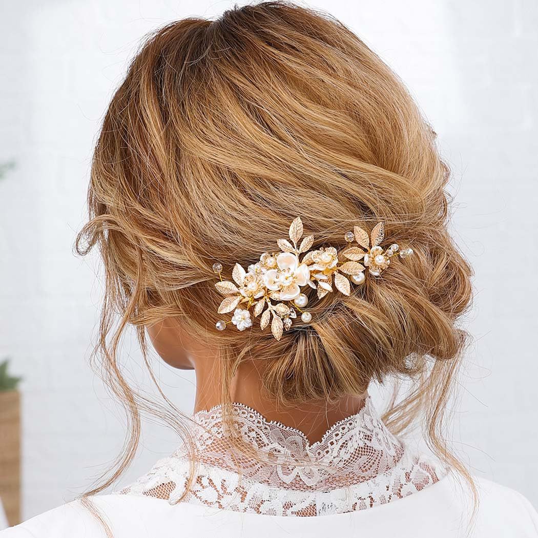 Næb klip, Zinc Alloy, med messingtråd & Polymer Clay & Plastic Pearl, håndlavet, mode smykker & for kvinde & med rhinestone, gylden, 110x50mm, Solgt af PC