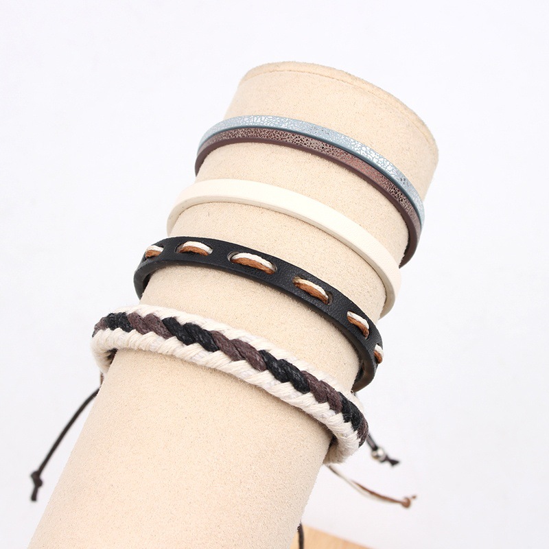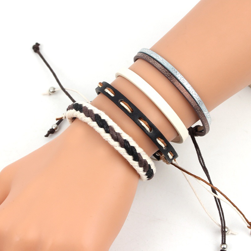 1:Woven Bracelet2:Black PU Bracelet3:Beige PU bracelet4:Double-layer PU bracelet5:4 Piece Set