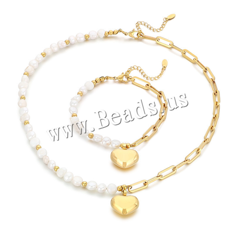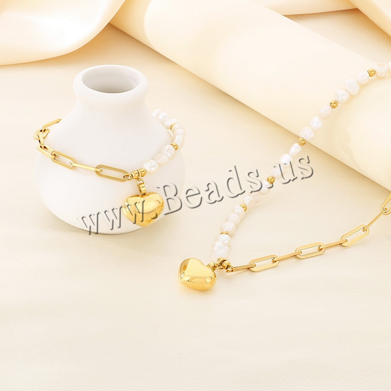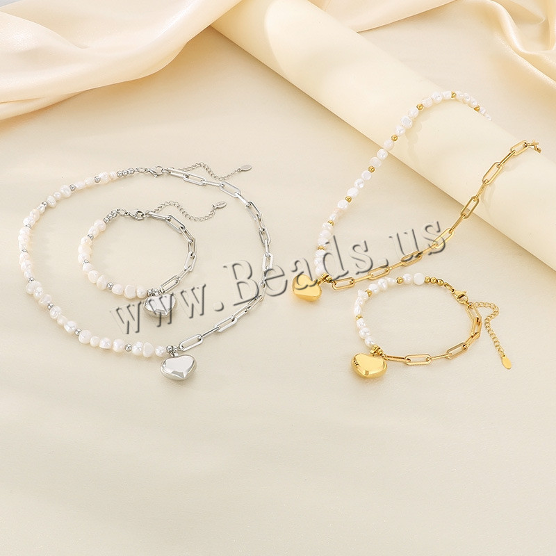 Rustfrit stål smykker sæt, 304 rustfrit stål, med Shell, forgyldt, mode smykker & forskellige stilarter for valg & forskellige design til valg, flere farver til valg, Solgt af PC