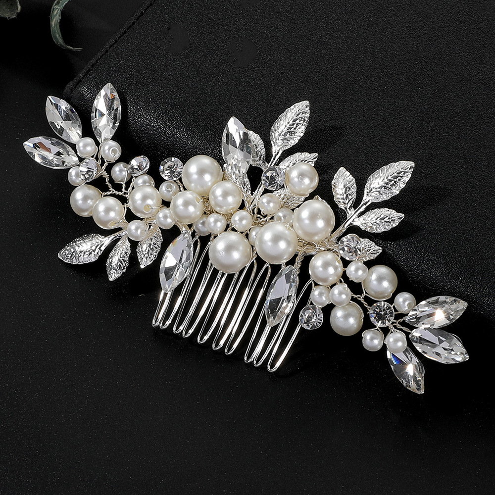 Dekorative Hårkamme, Zinc Alloy, med messingtråd & Krystal & Plastic Pearl, håndlavet, mode smykker & for kvinde, sølv, 120x70x5mm, Solgt af PC