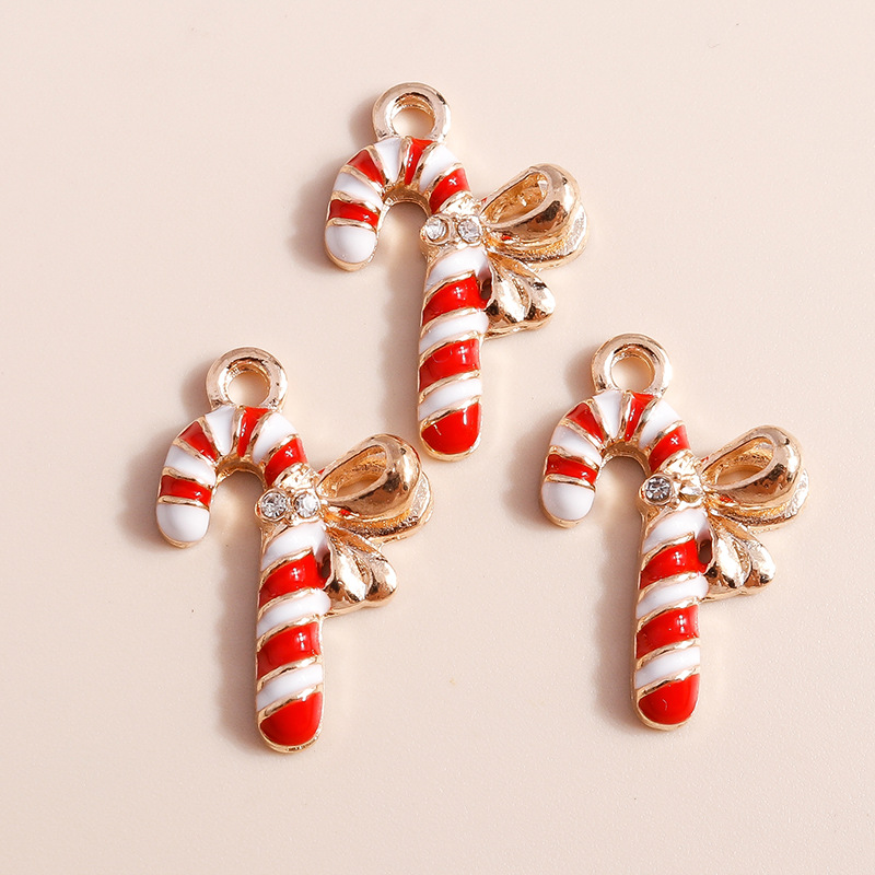 Zinc Alloy Jul Vedhæng, Christmas Candy Cane, forgyldt, Juledesign & du kan DIY & emalje, 10pc'er/Bag, Solgt af Bag